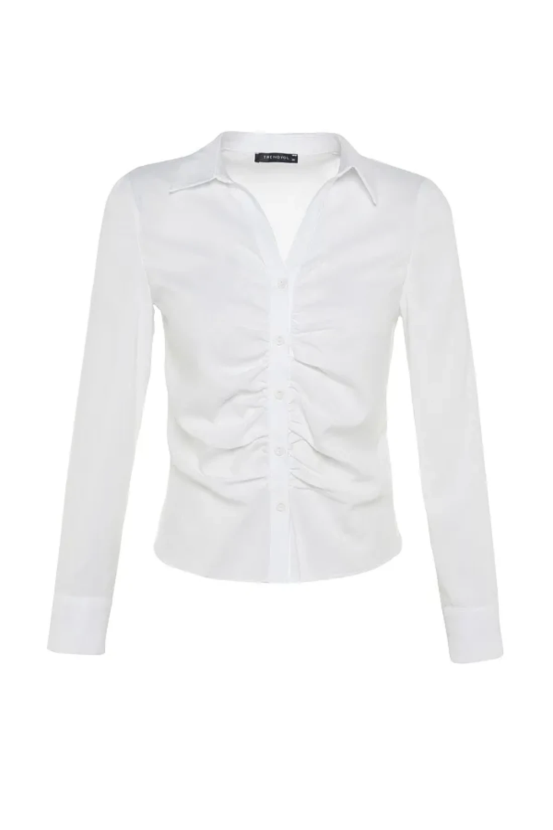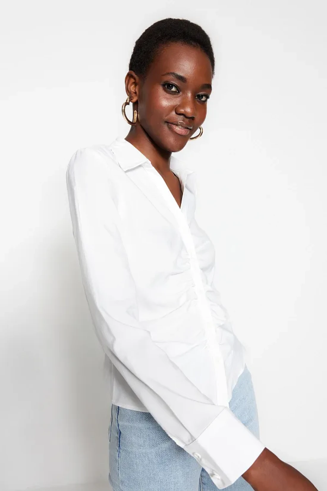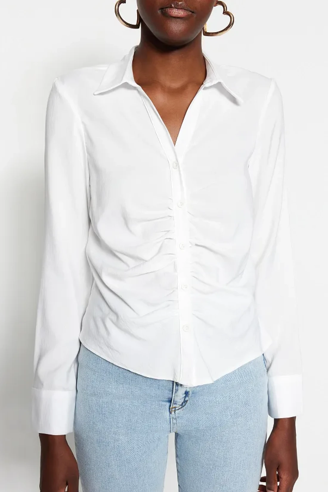 Collection Ecru Gathered Fitted/Slim Fit Woven Shirt TWOSS23GO00177