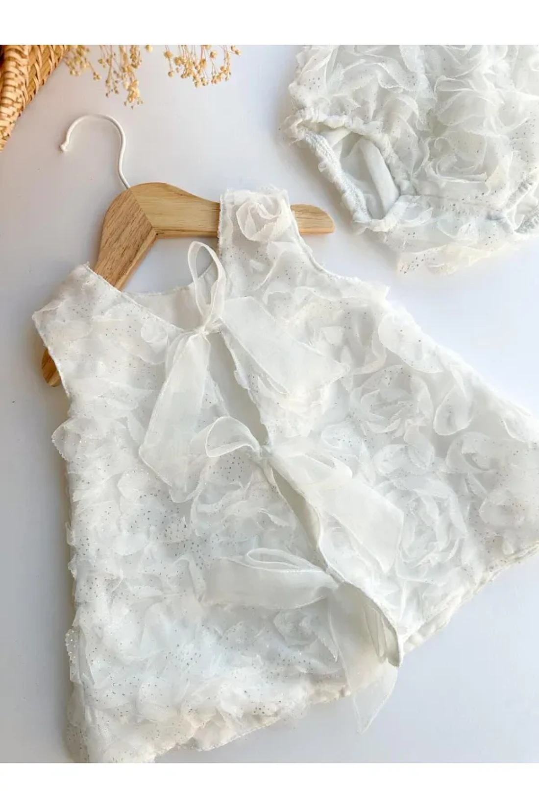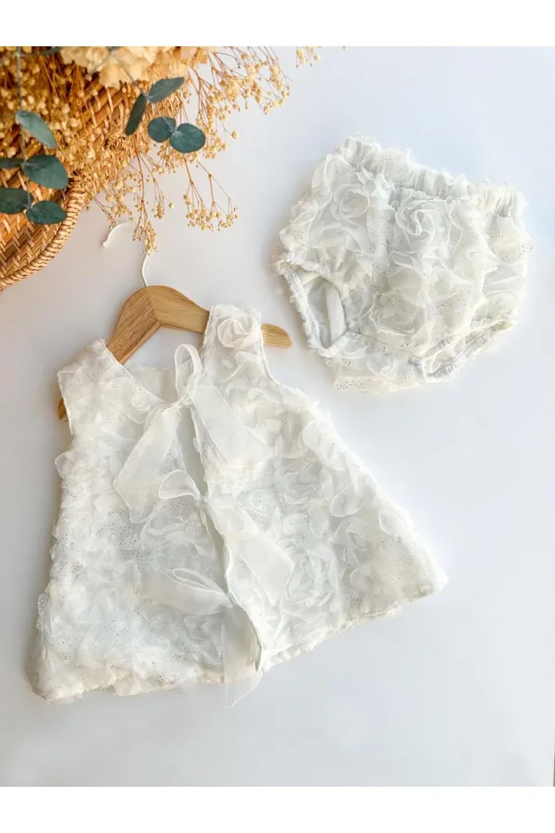 PİTABABY 2-Piece Glittery White Rose Motif Girl's Dress