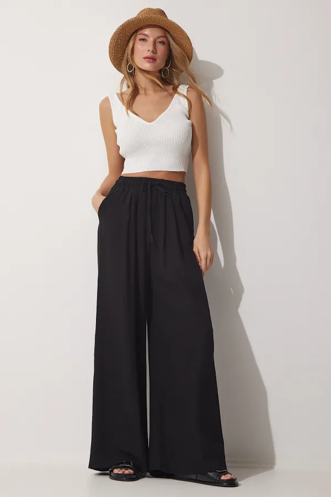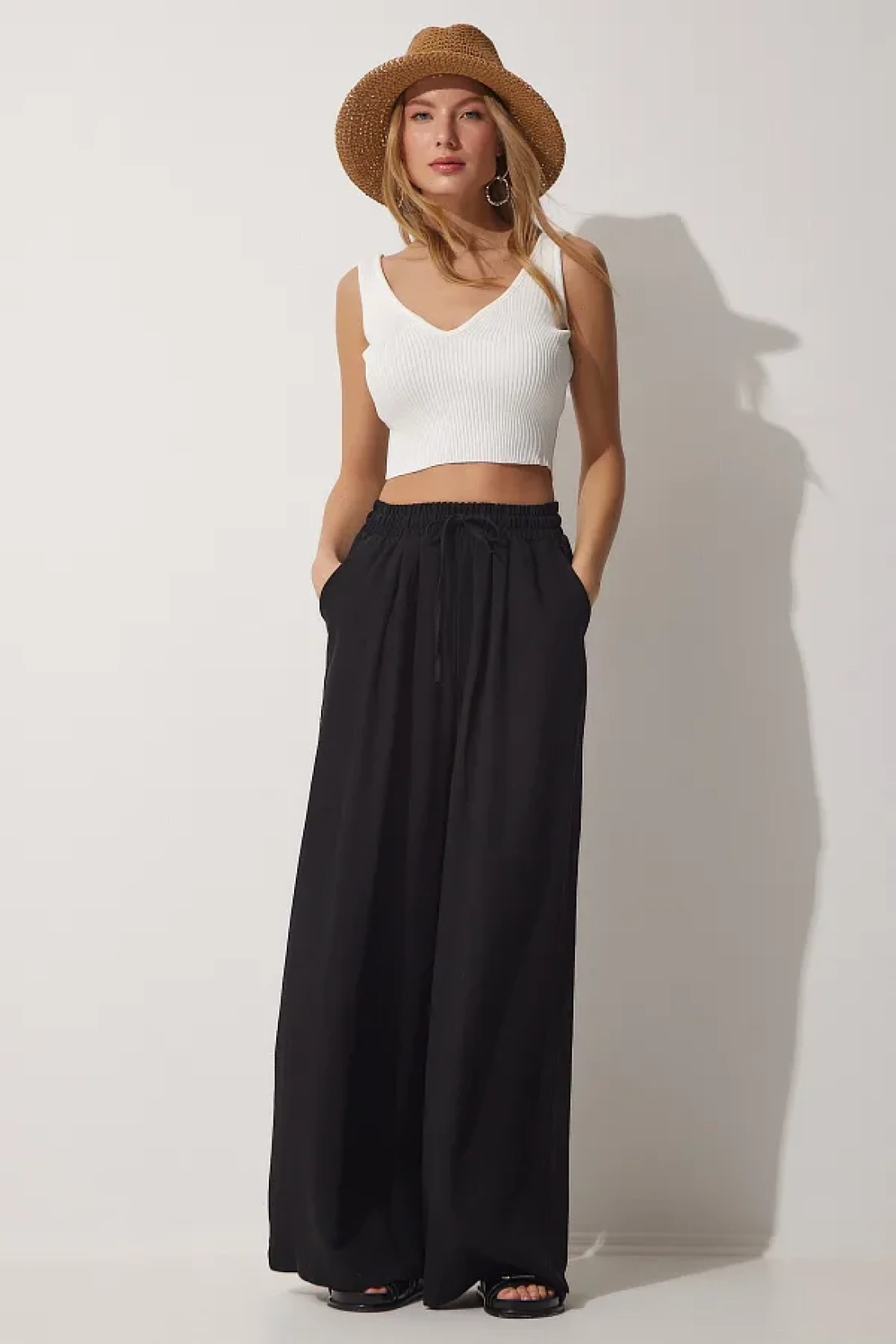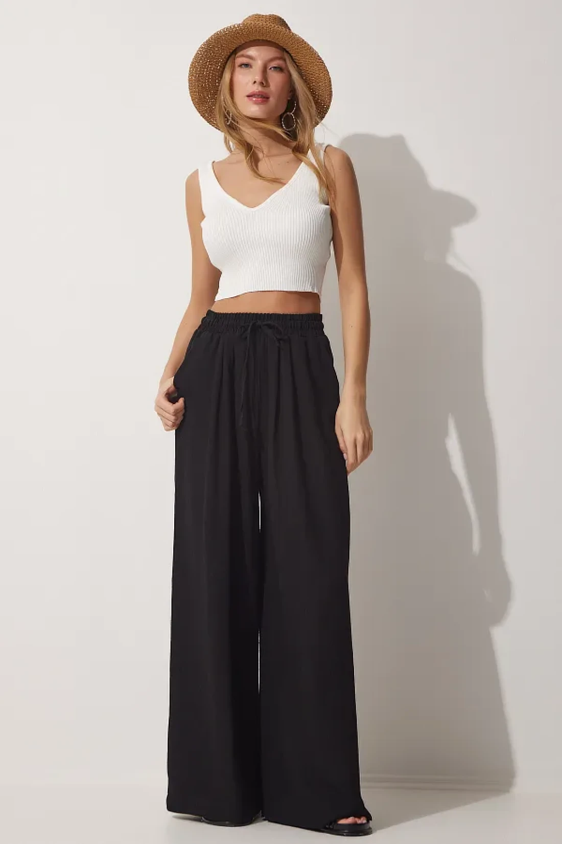 It provides freedom of movement comfortably thanks to its loose fit and wide leg design offers a modern look. It promises long-lasting use when cared for in accordance with washing instructions. Its medium-thickness fabric creates an ideal choice during seasonal transitions, while its plain pattern creates a timeless style. It is designed in a style that can be easily preferred even in stylish environments. With its normal waist cut, you will not compromise your elegance without compromising your comfort during the day. Wide Leg silhouette gives a modern and trendy look