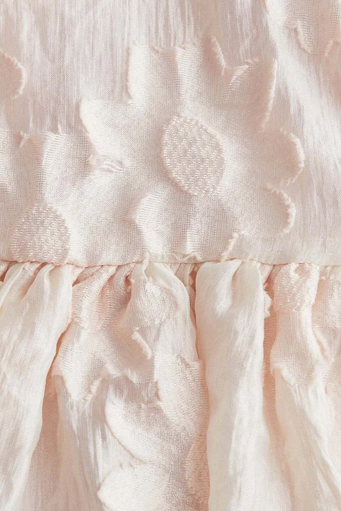 Round neckline, buttons at the back and a flared hem lined with two layers of tulle for added volume.