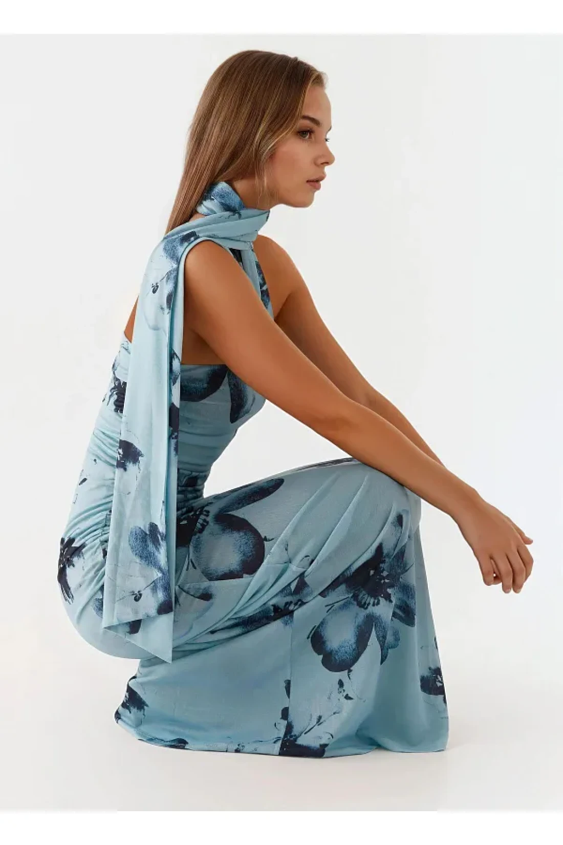 Hiccup Strapless Patterned Bodycon Maxi Tulle Dress