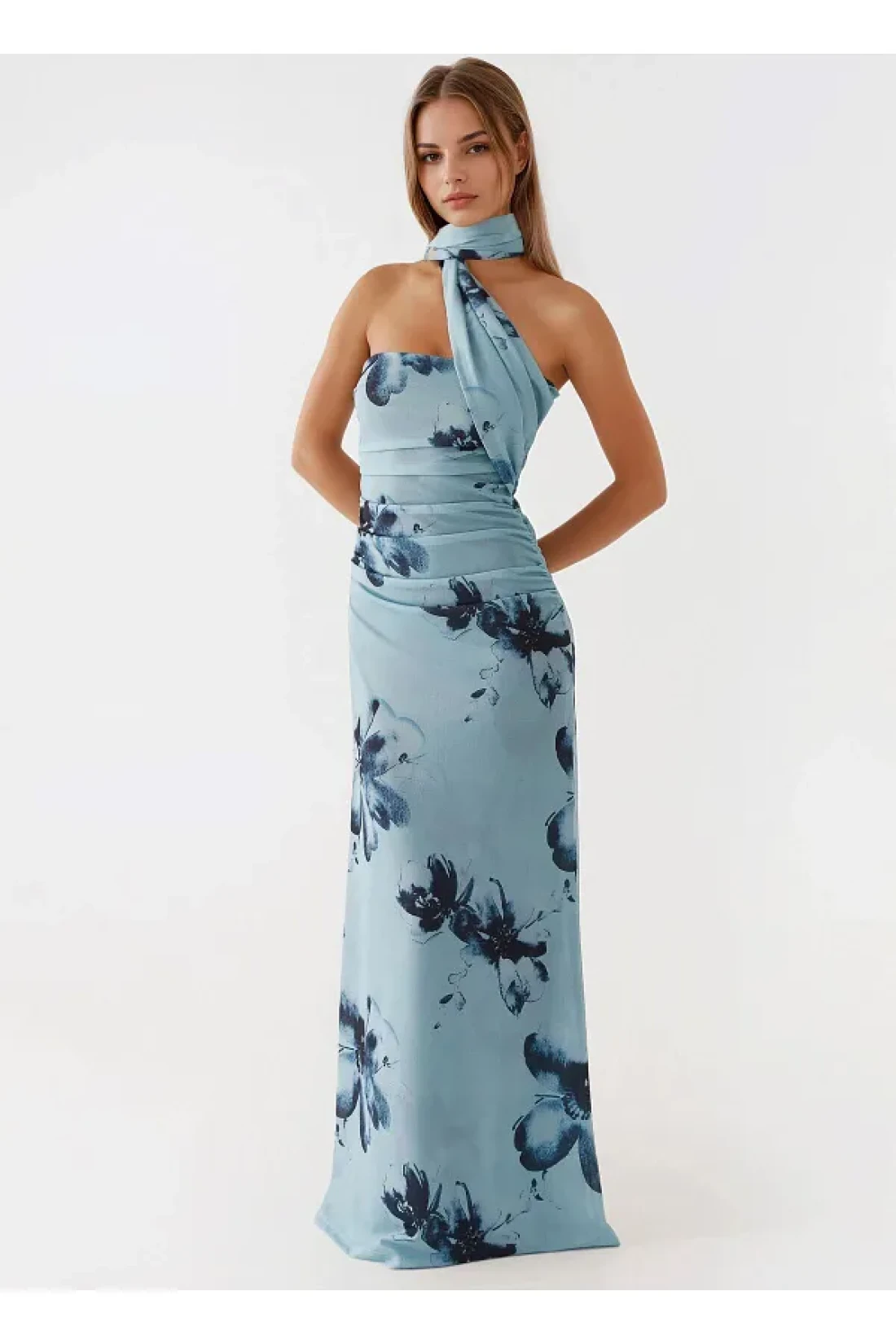 Product name: strapless patterned bodycon maxi tulle dress