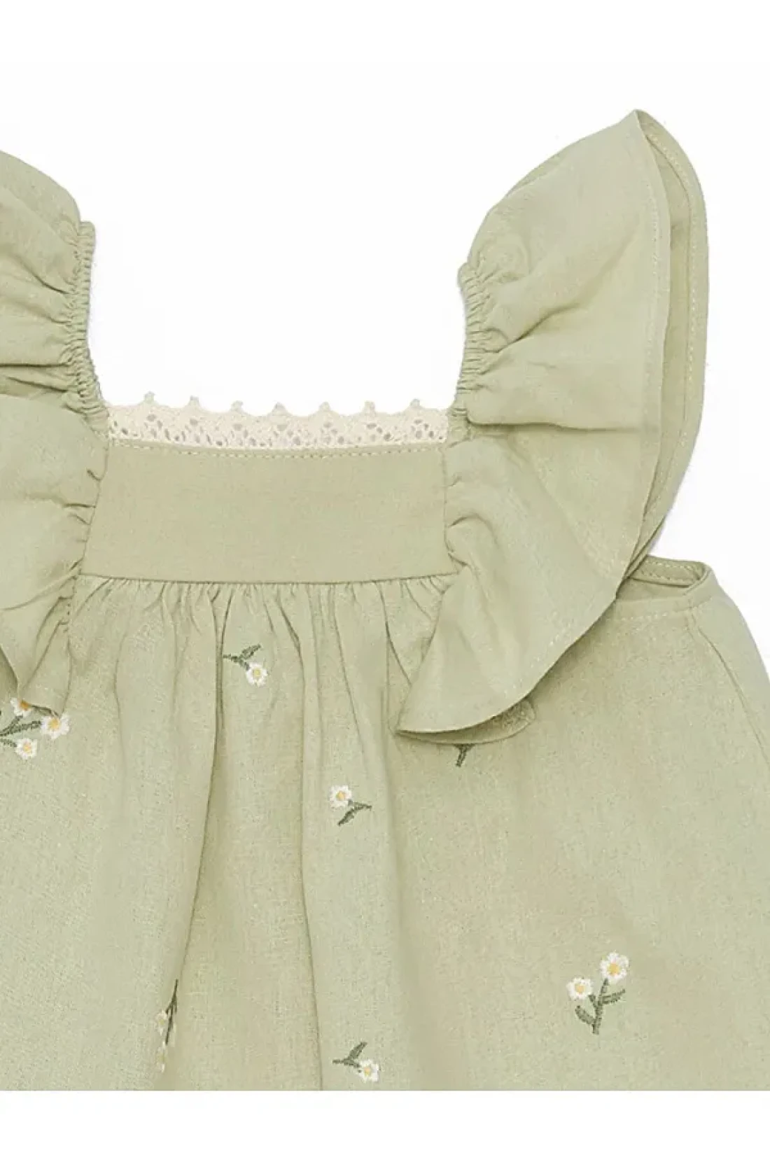 Product descriptionsquare neck and sleeveless floral print baby girl dress, made of durable and lightweight gabardine fabric. It highlights your baby's cuteness with its elegant flower patterns, while also providing freedom of movement with its comfortable cut.