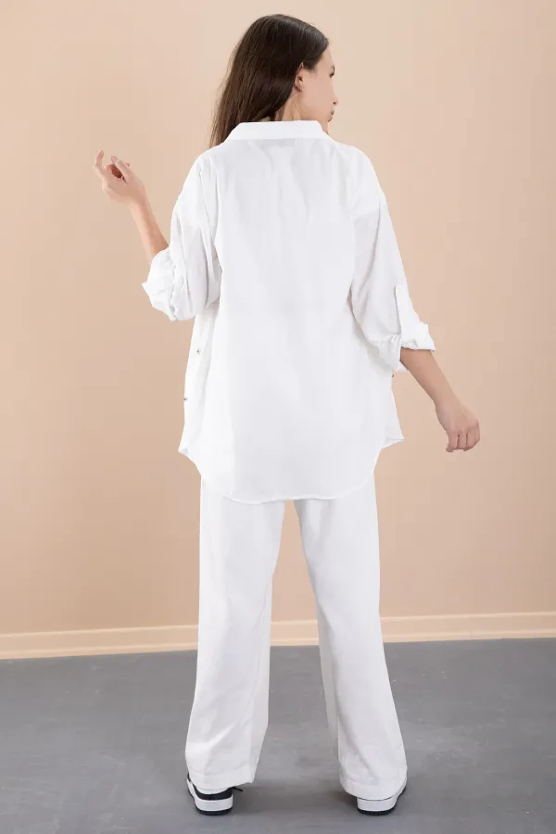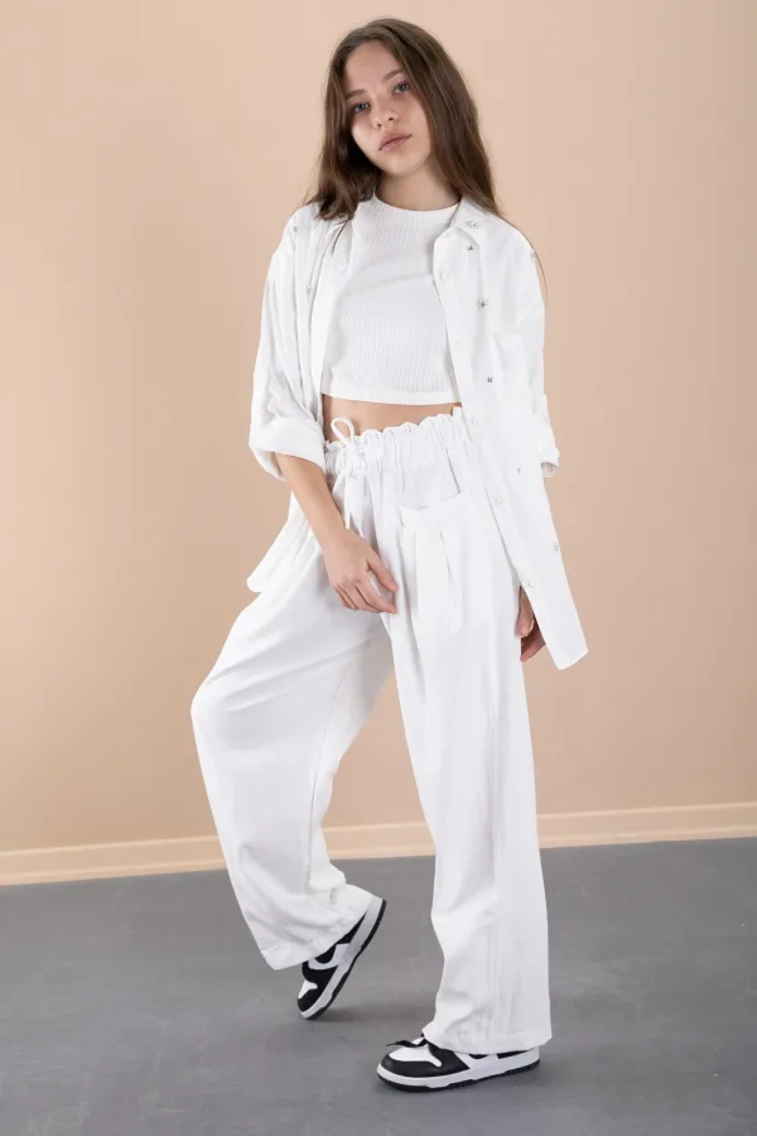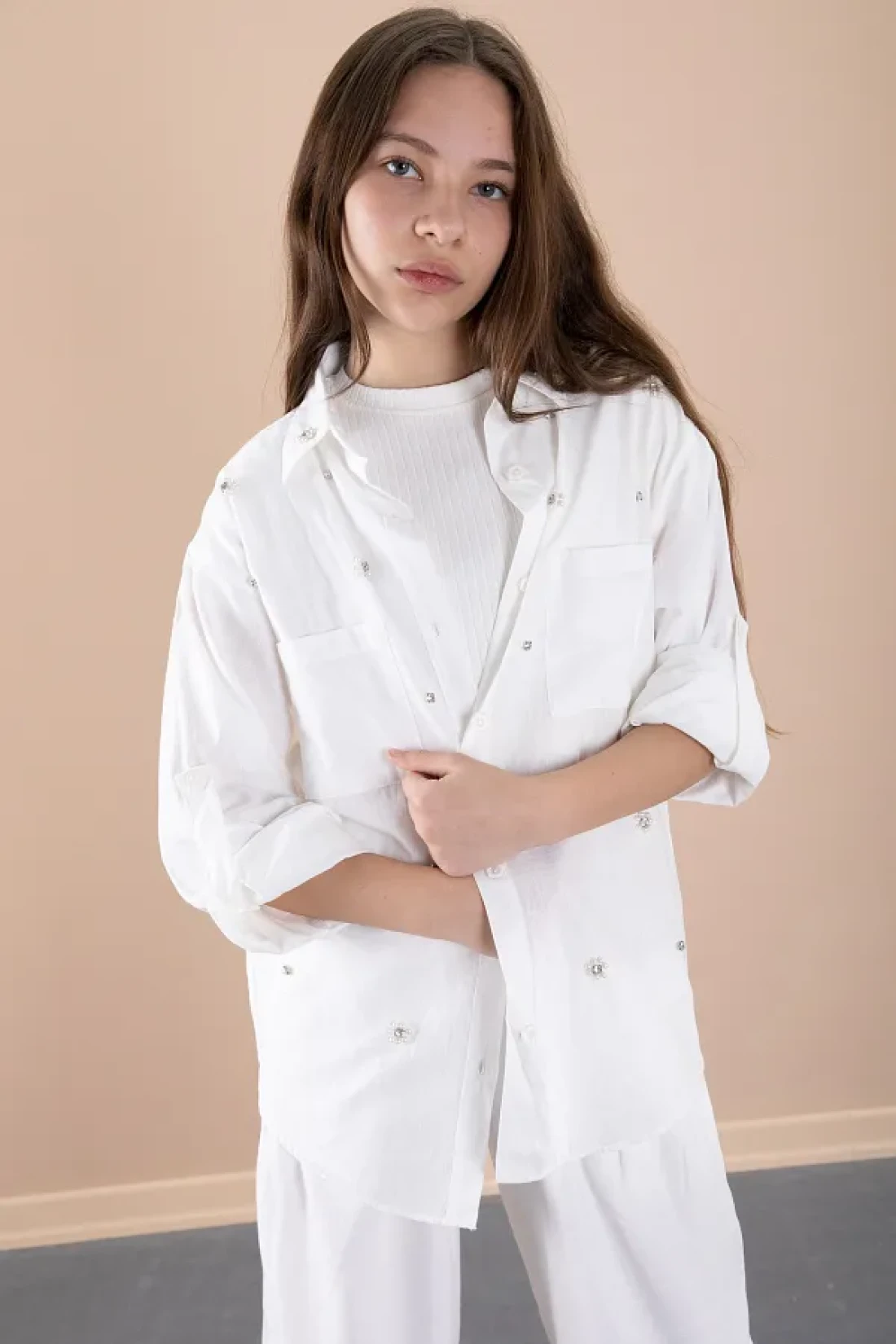 Cansın Mini White Girl's Croplu Stone Shirt and Pants 3 Piece Set 20468