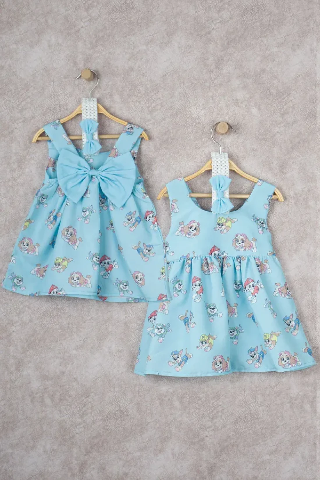 BUUFUU Baby Girl Cartoon Heroes Printed Dress with Bow and Bandana 6-24 Months