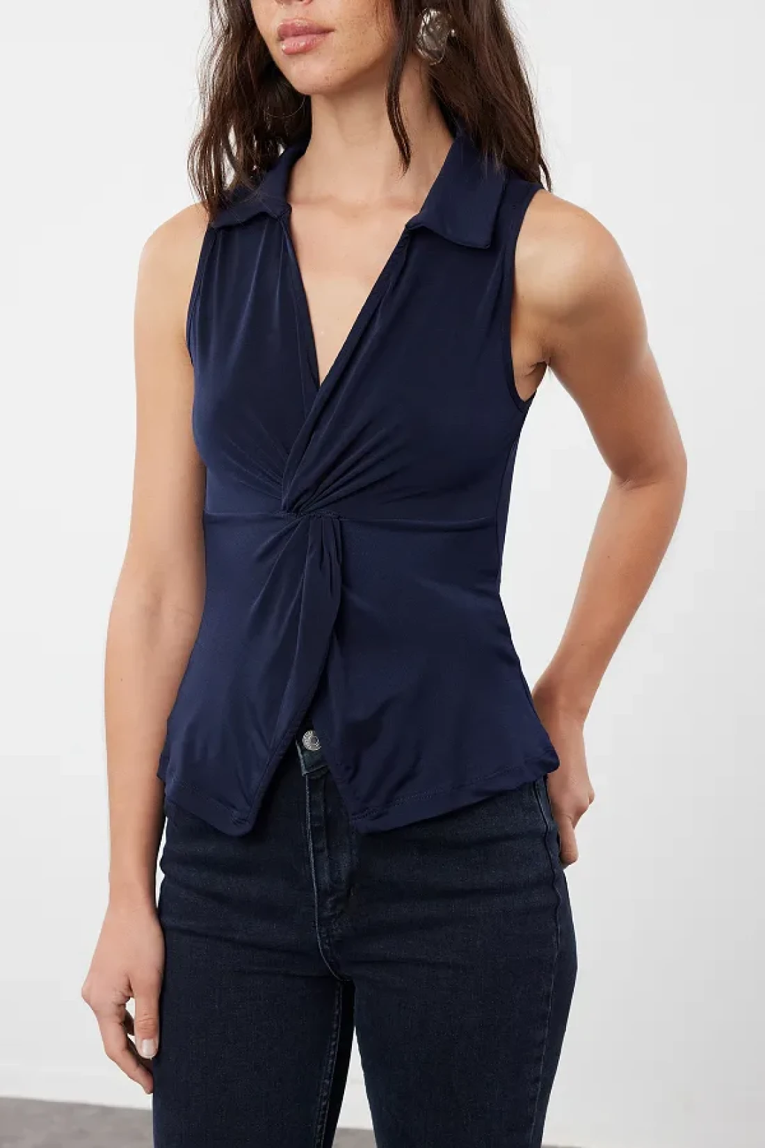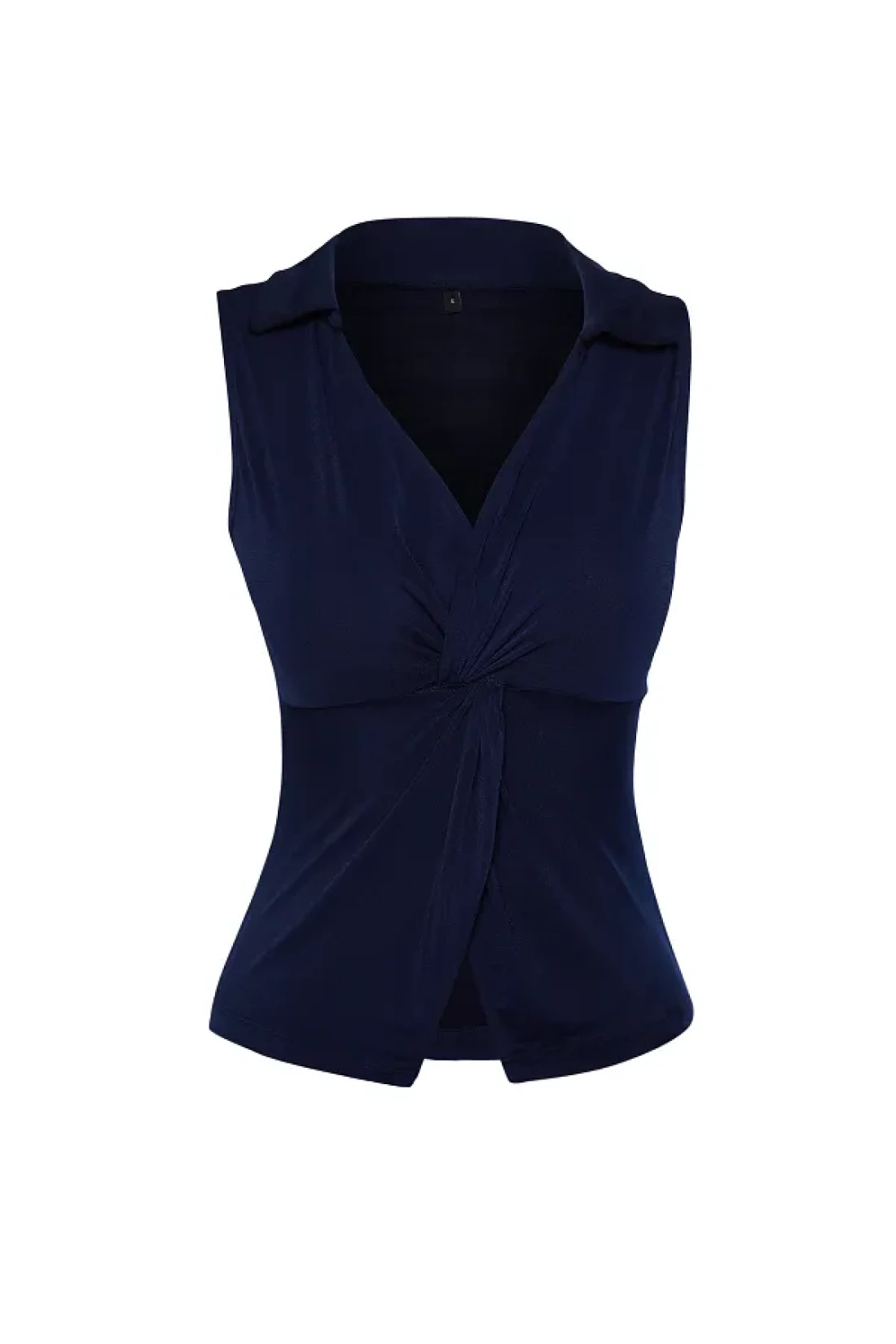 Collection Navy Blue Fitted/Fitted Polo Neck Stretchy Knitted Blouse Twoss24Bz00085