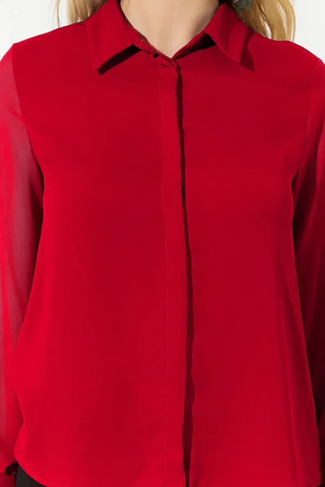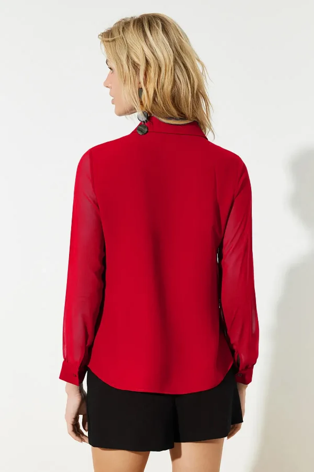 Collection Red Woven Shirt with Transparent Sleeves - TWOAW20GO0116