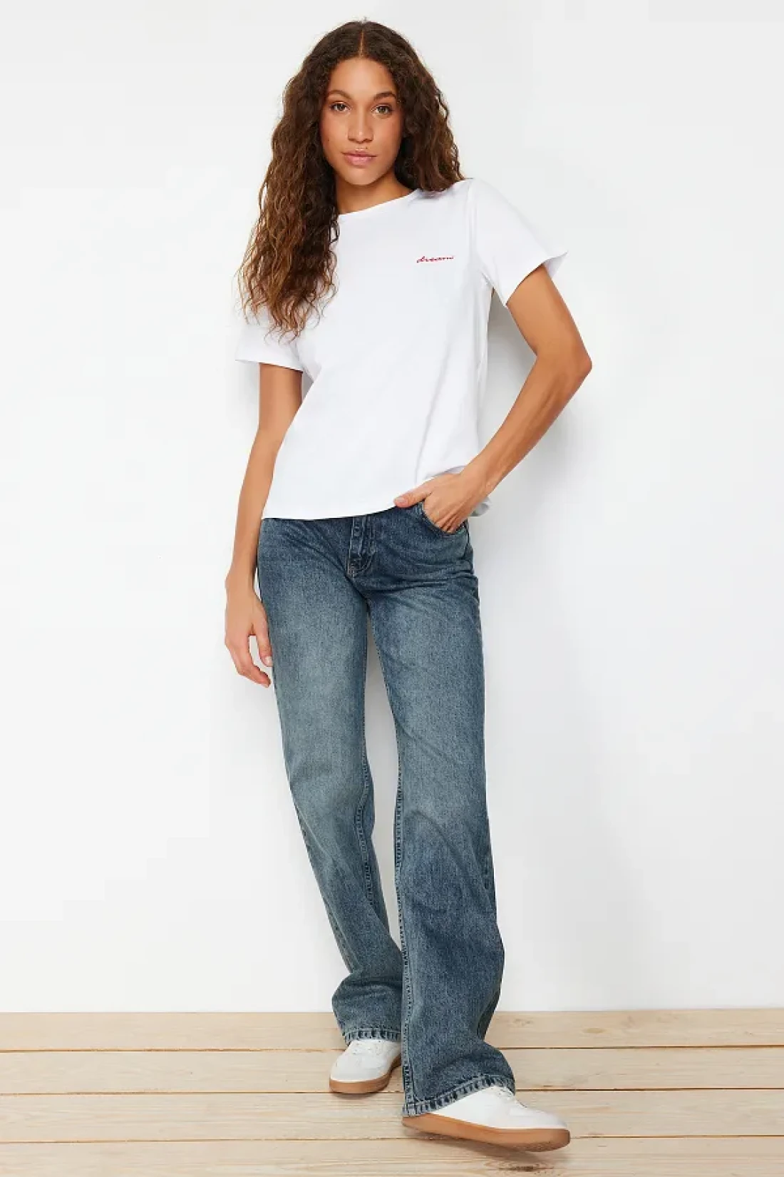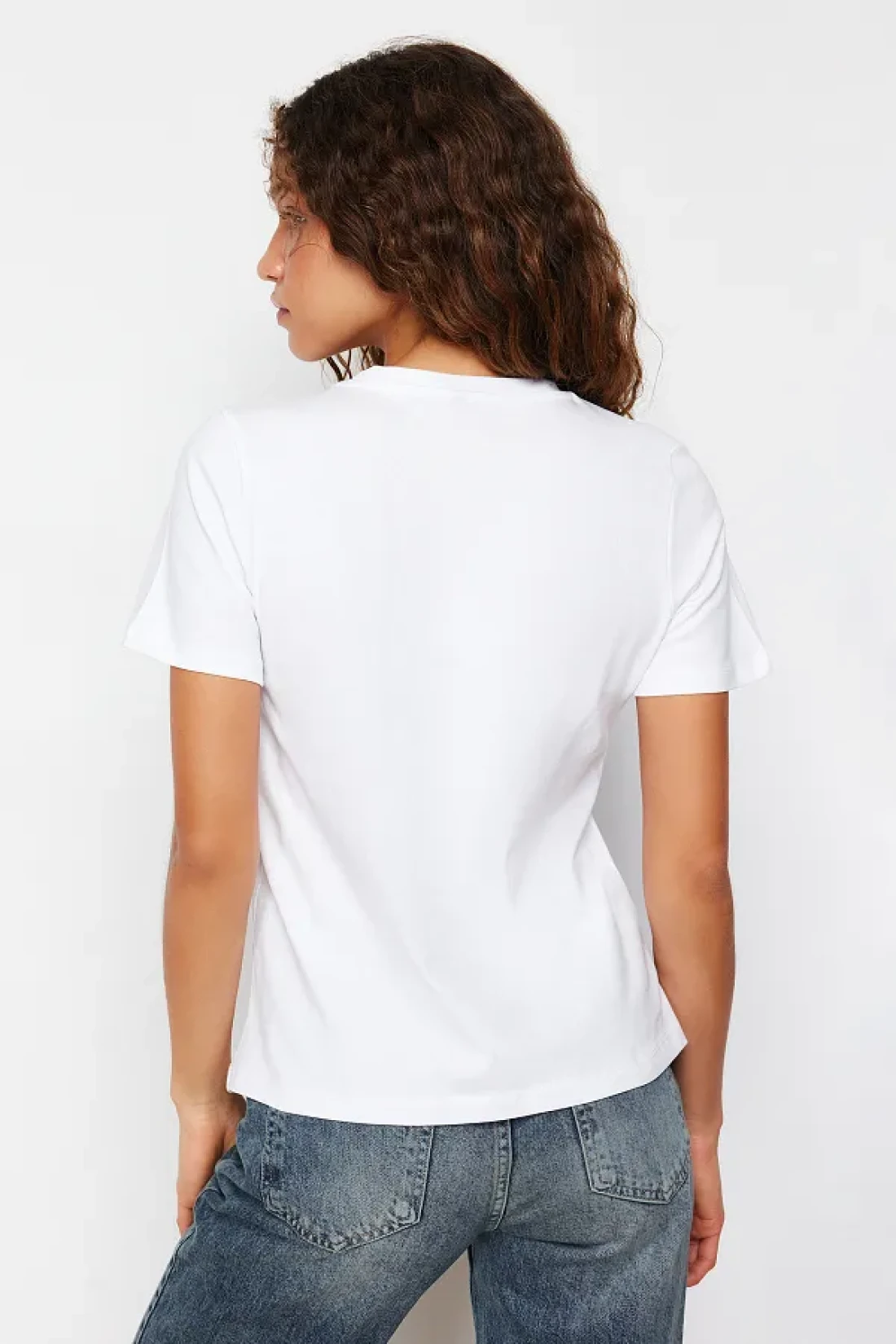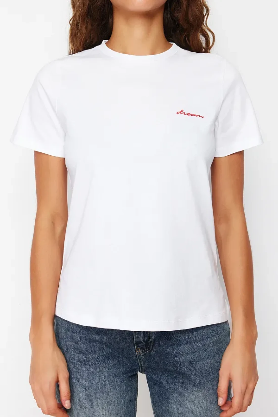 Collection White 100% Cotton Slogan Embroidered Regular Fit Knitted T-Shirt TWOSS24TS00097