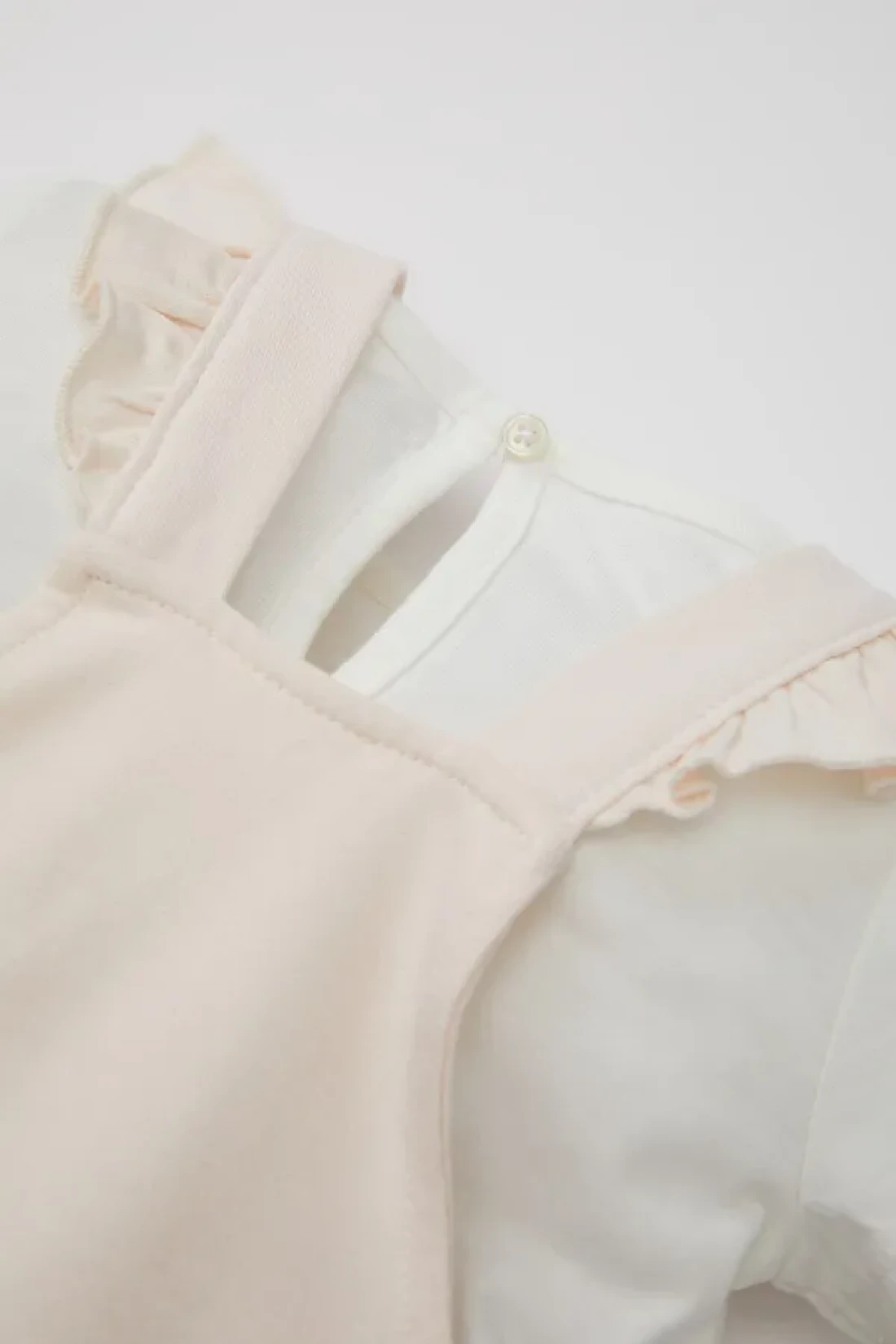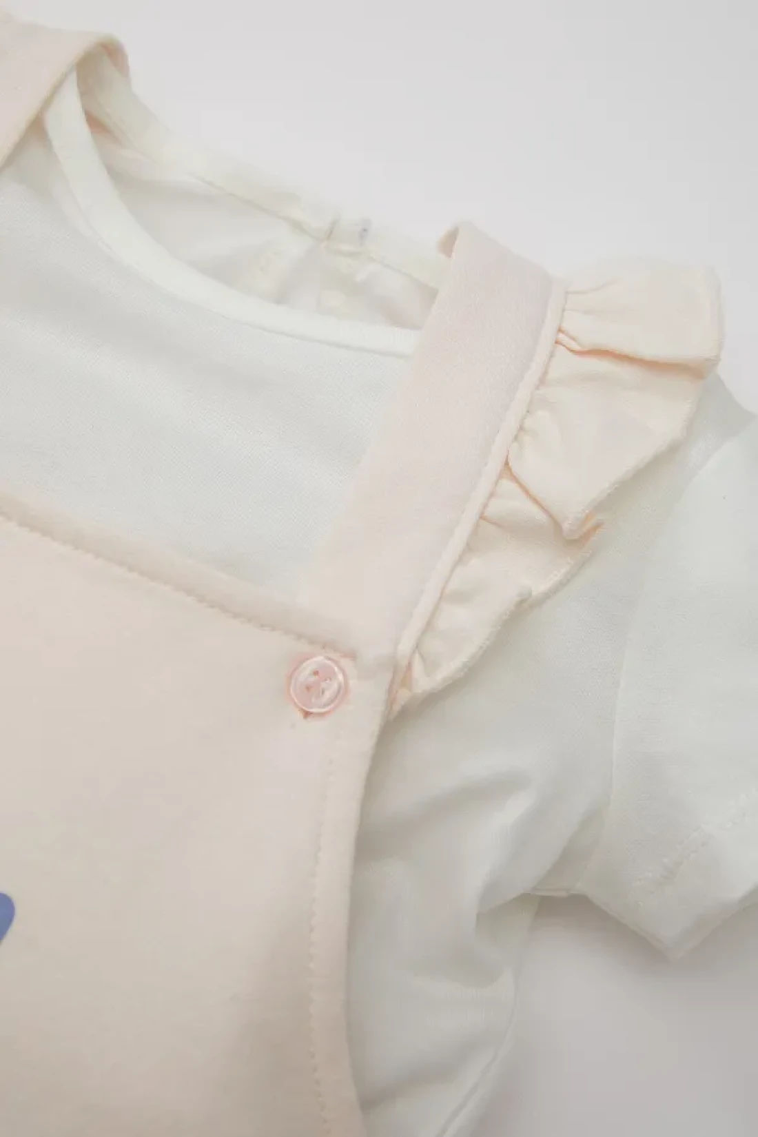 Defacto Disney Mickey Minnie Short Sleeve Baby Girl T-Shirt and Sleeveless Overalls Set - D0796A524Hs
