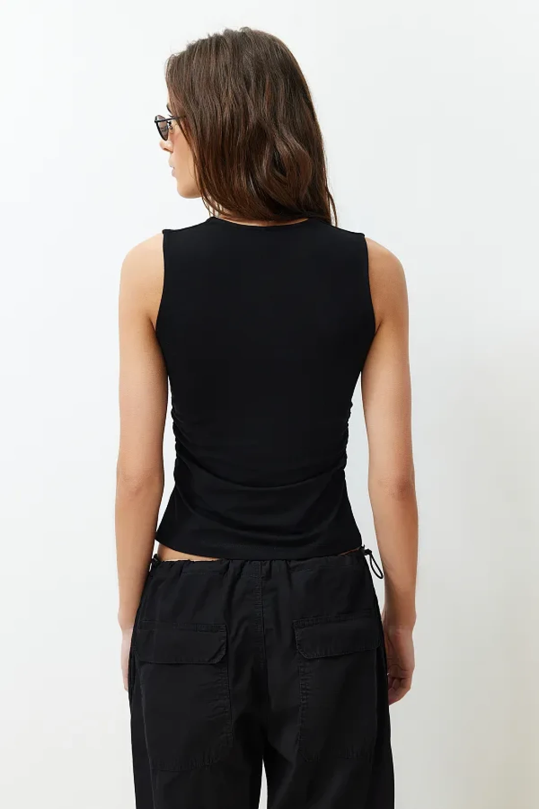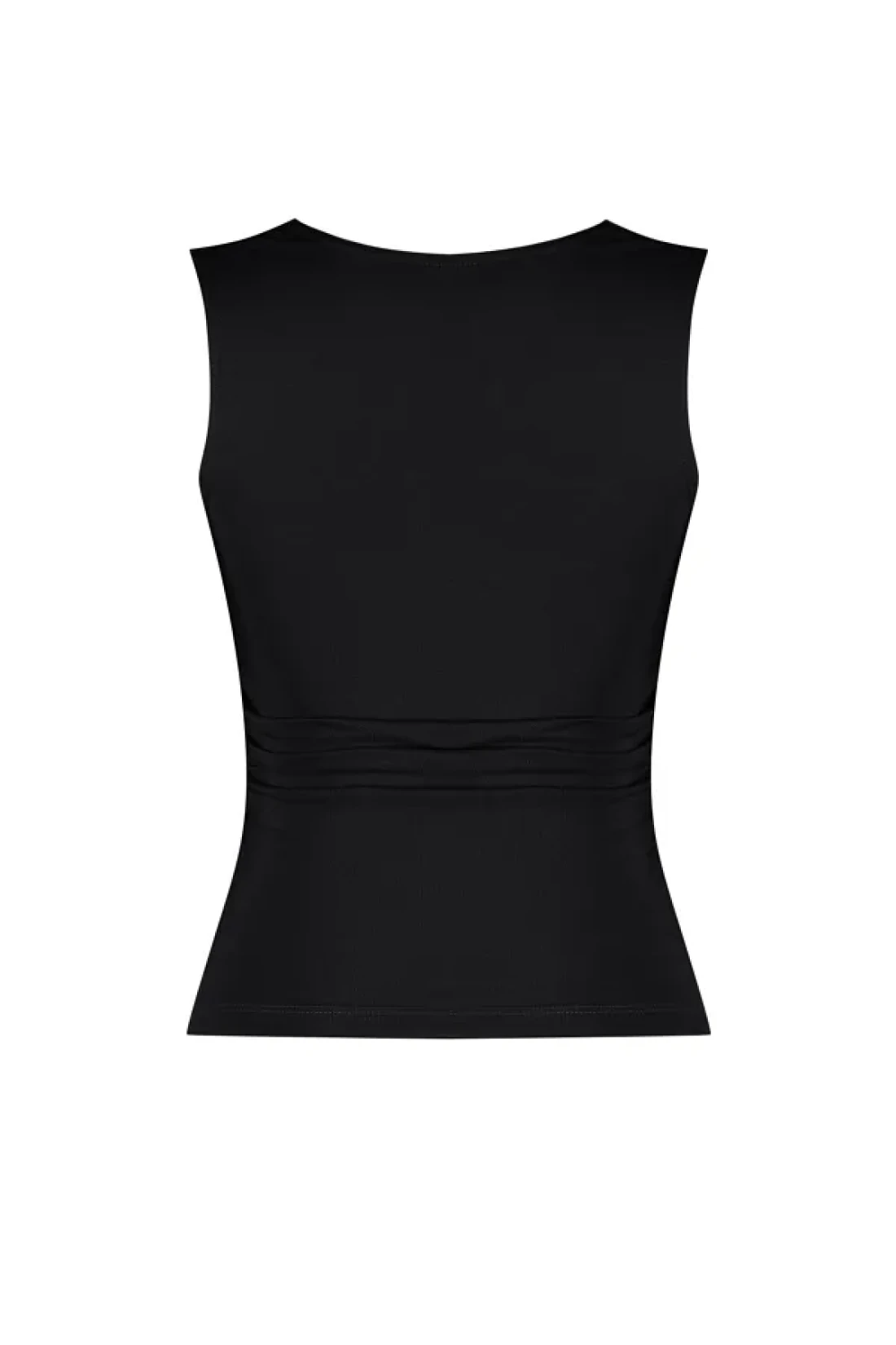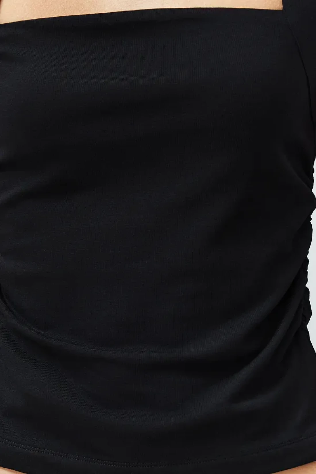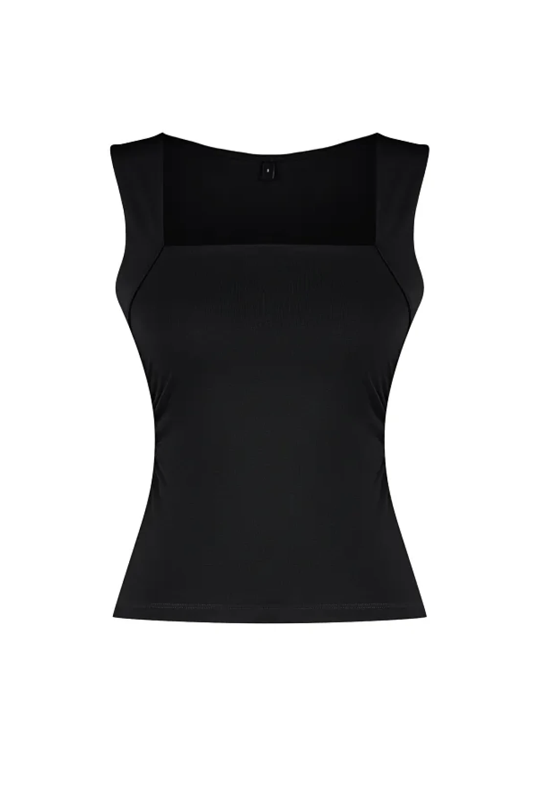 Collection Black Solid Square Neck Straps Shirred Fitted/Fitted Stretchy Knitted Blouse Twoss24Bz00400