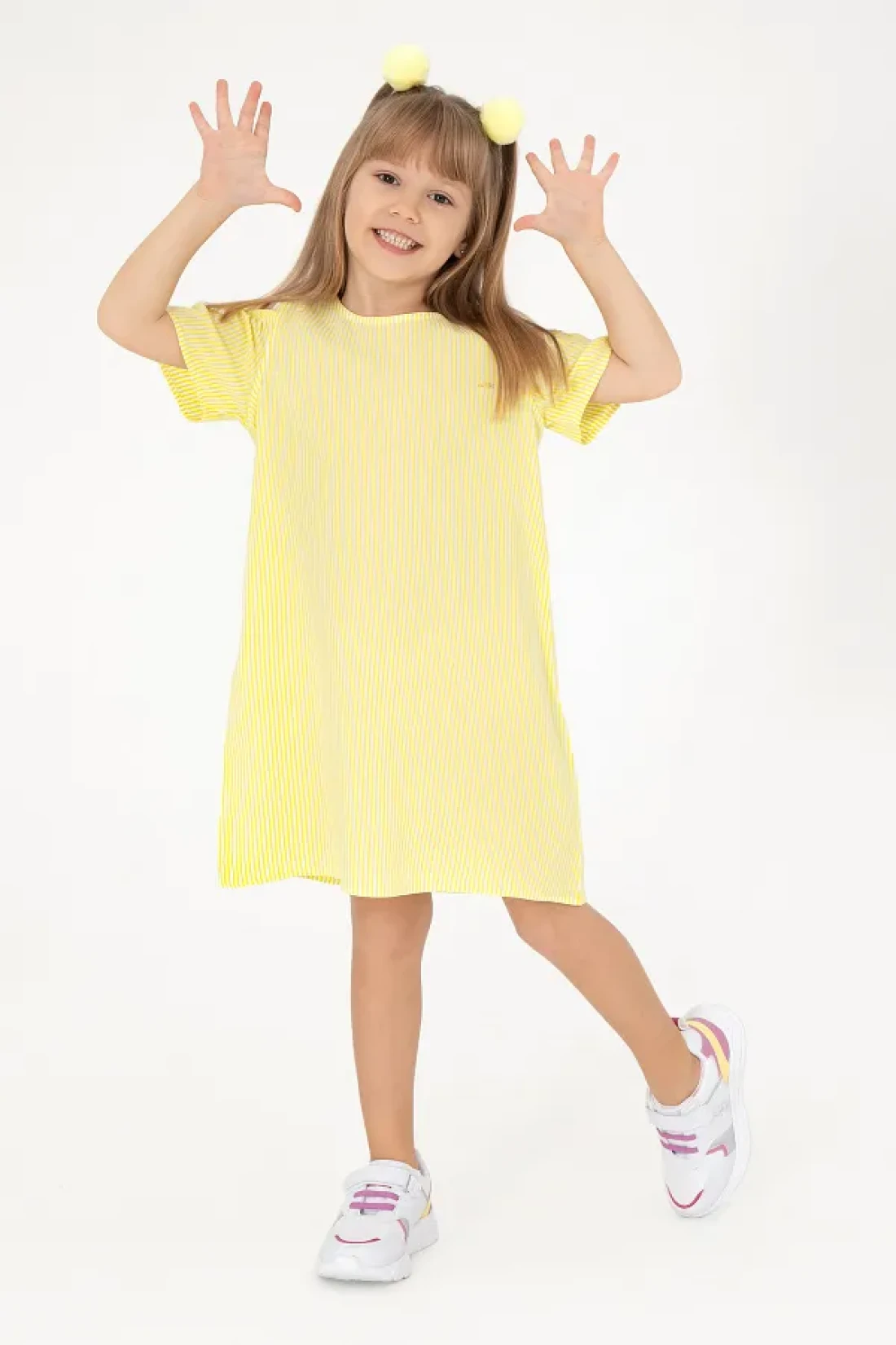- neon yellow sleeveless woven dress specially designed for children, offering a casual and stylish look