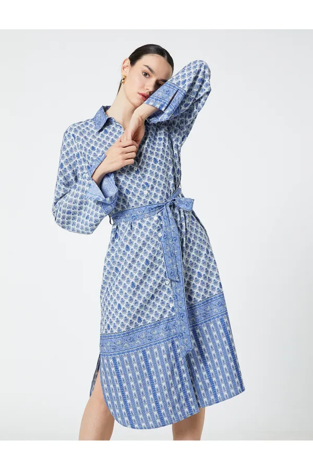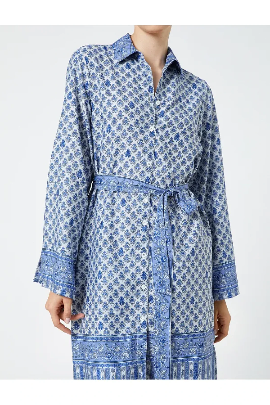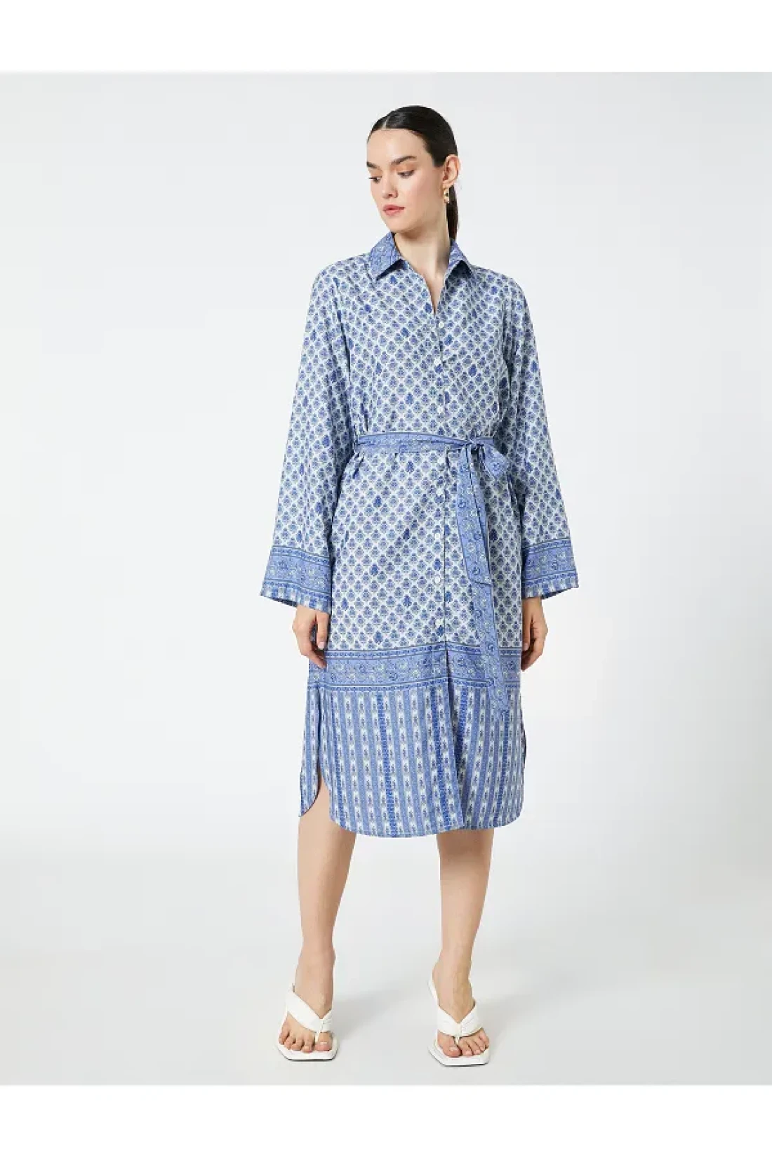 Koton Traditional Motif Shirt Dress Belted Midi Length