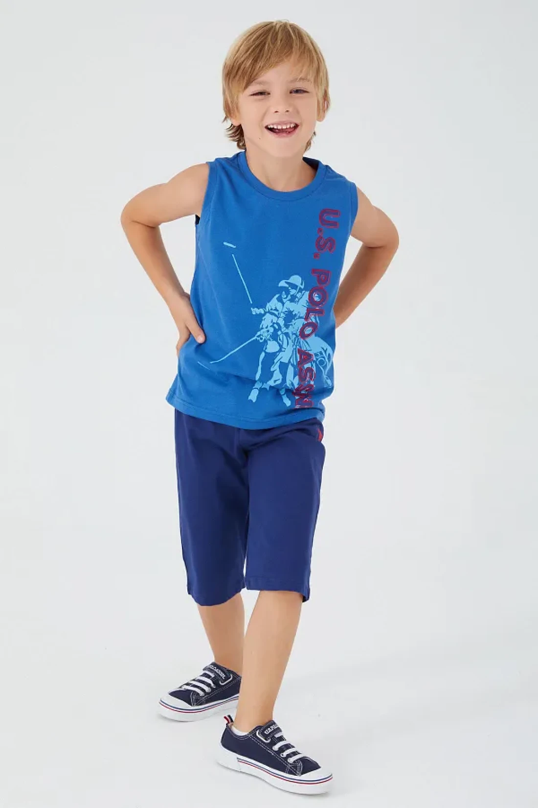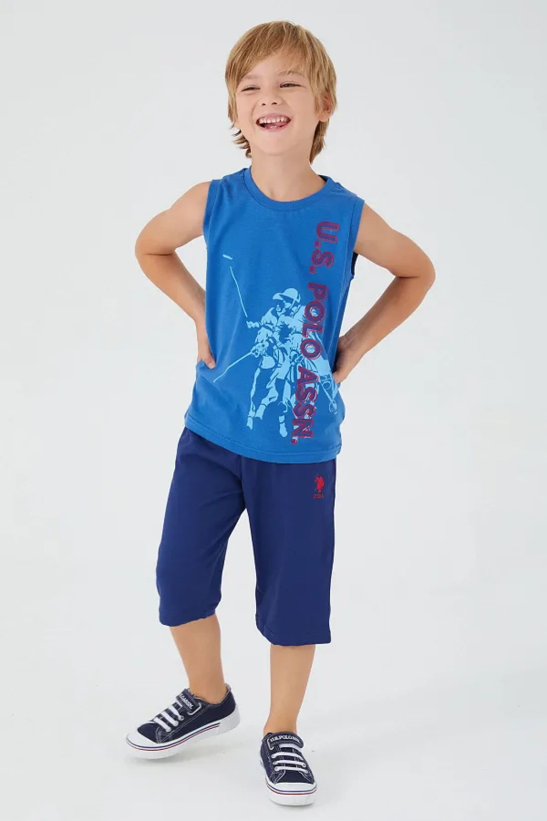 U.s. polo assn. Picture details boys' bermuda set one of the most ideal pieces for boys is the sets. The u.s. polo assn picture details boys' bermuda set is a great product for this need. The set consists of two pieces. It consists of a sleeveless t-shirt with uspa written and human pattern, and a simple, sporty capri. It will take its place in your wardrobes as one of the favorite sets of spring and summer months. The u.s. polo assn picture details boys' bermuda set is an original and licensed product. With it, you don't have to doubt the convenience and quality at all. You will know its quality at the first glance. Due to the structure of its fabric, it does not sweat, its colors do not fade. It is suitable for easy use. Thanks to its various features, it is a set that you can choose with peace of mind. Fabric detail: top: 100% cotton (single jersey) bottom: 100% cotton (double thread)