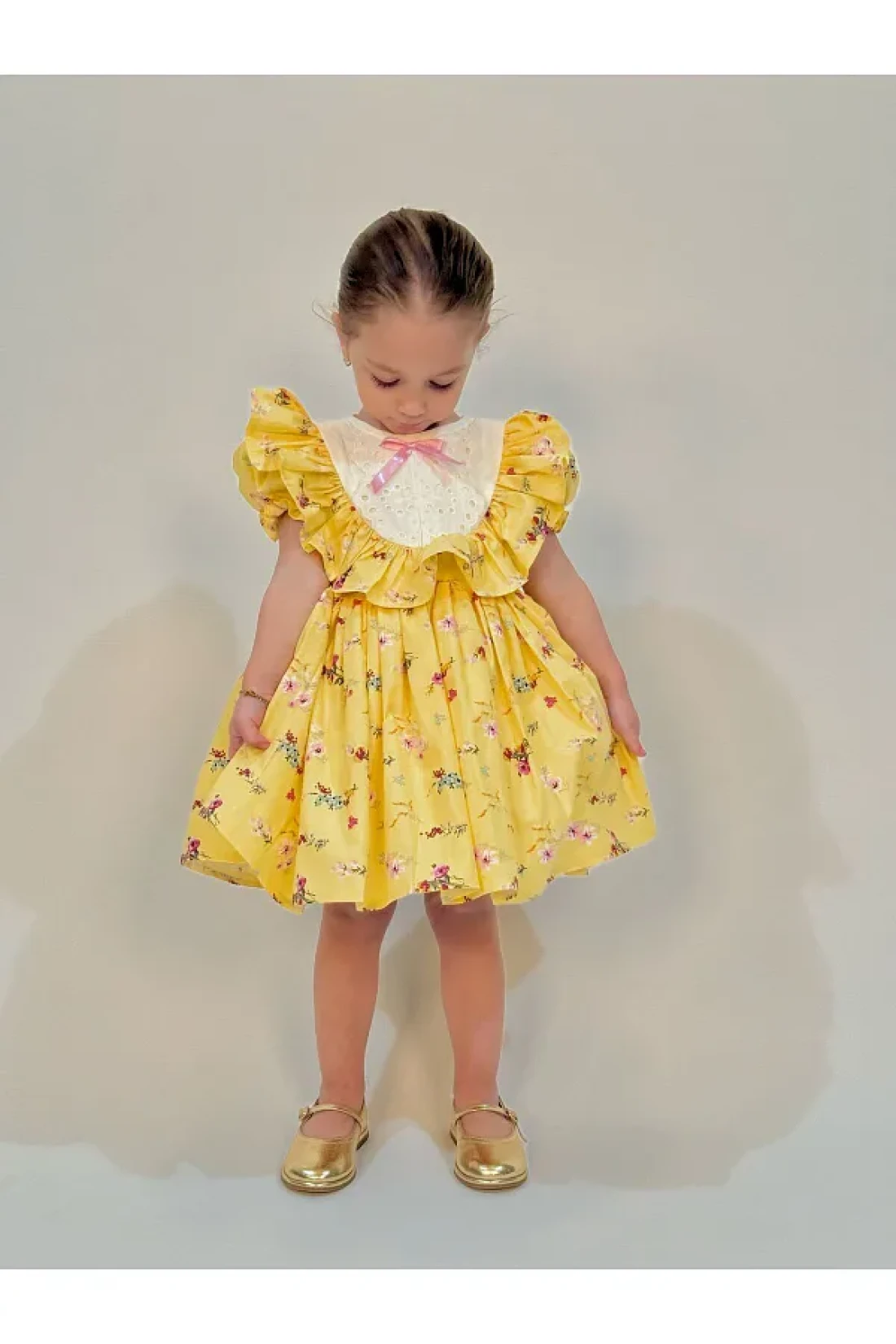 Linarookids Laurel Yellow Vintage Baby Girl Dress, Birthday Dress, Photo Shoot Dress, Suitable for 0-7 Years Old