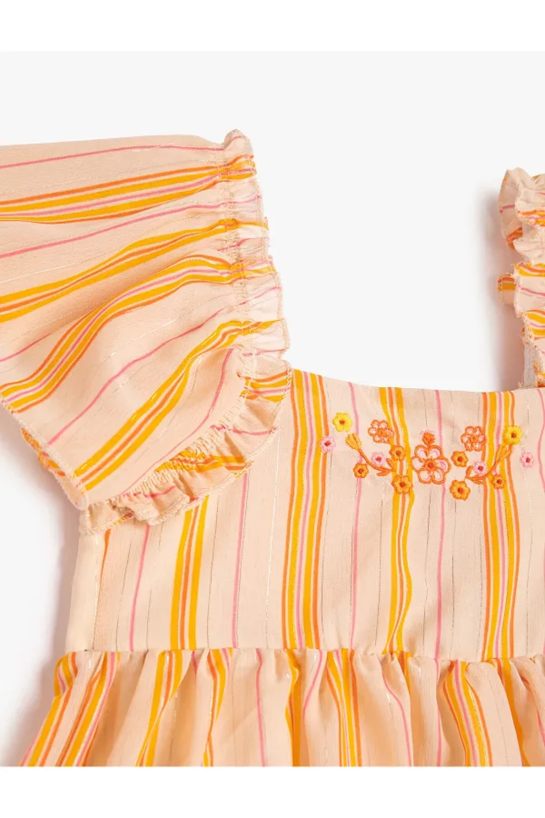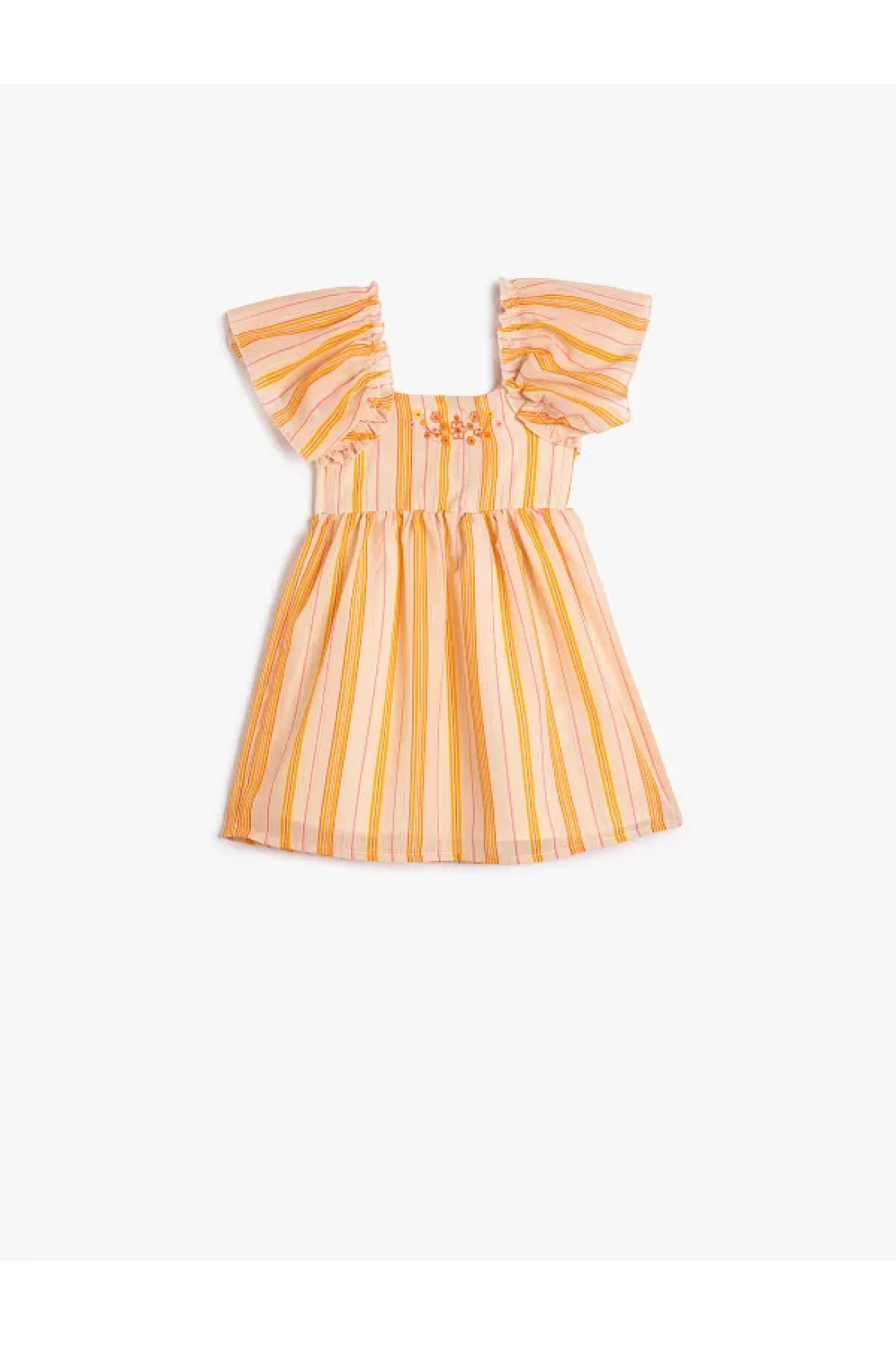 ruffle detail, short bell sleeves, cotton, lining, floral embroidery detail, striped dress will please both you and your baby. Your baby is safe with this outfit! Our products are produced in accordance with all safety rules, tested against chemicals. Our products do not contain harmful substances such as paints and heavy metals, small and sharp parts that can be dangerously swallowed, cords and laces.