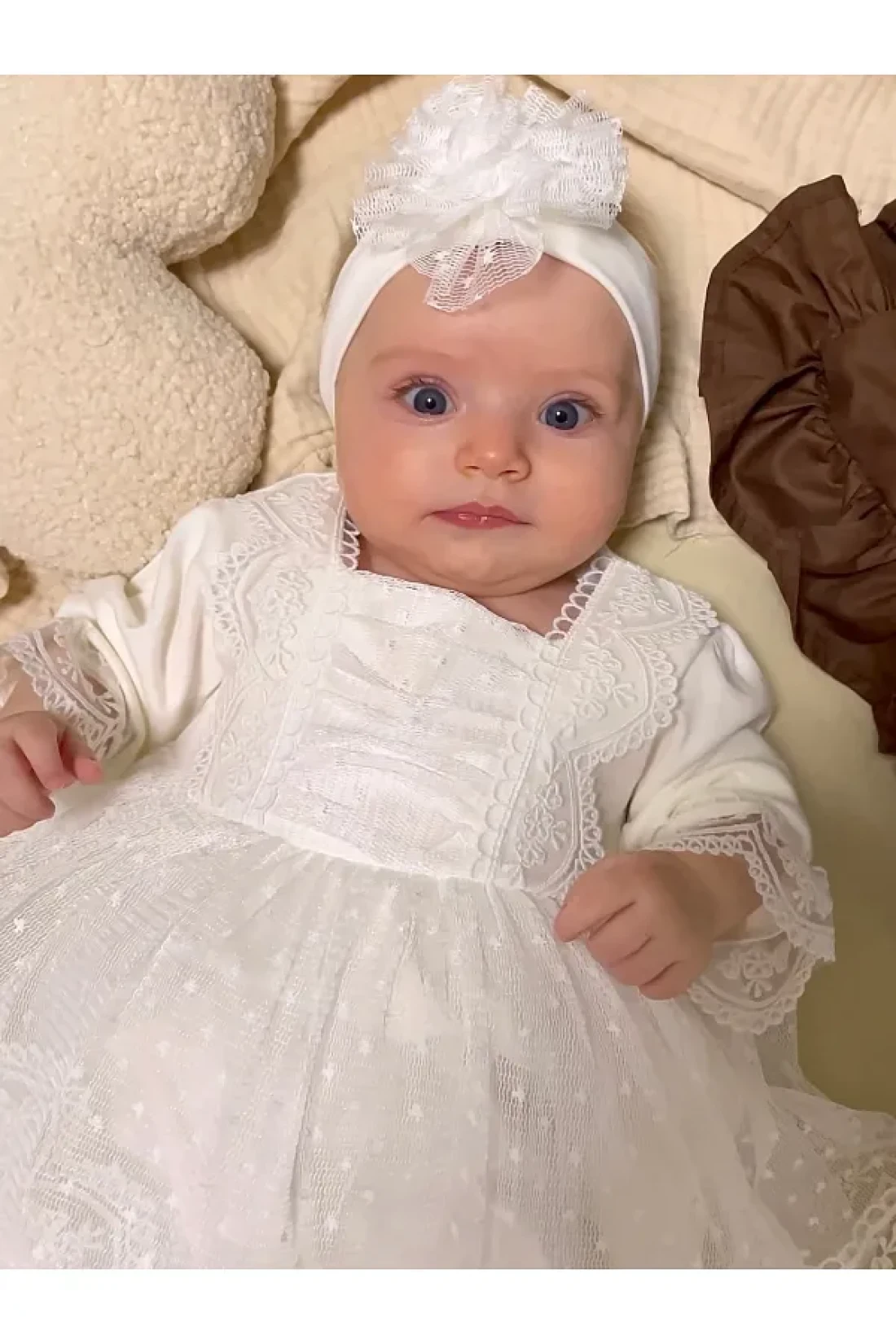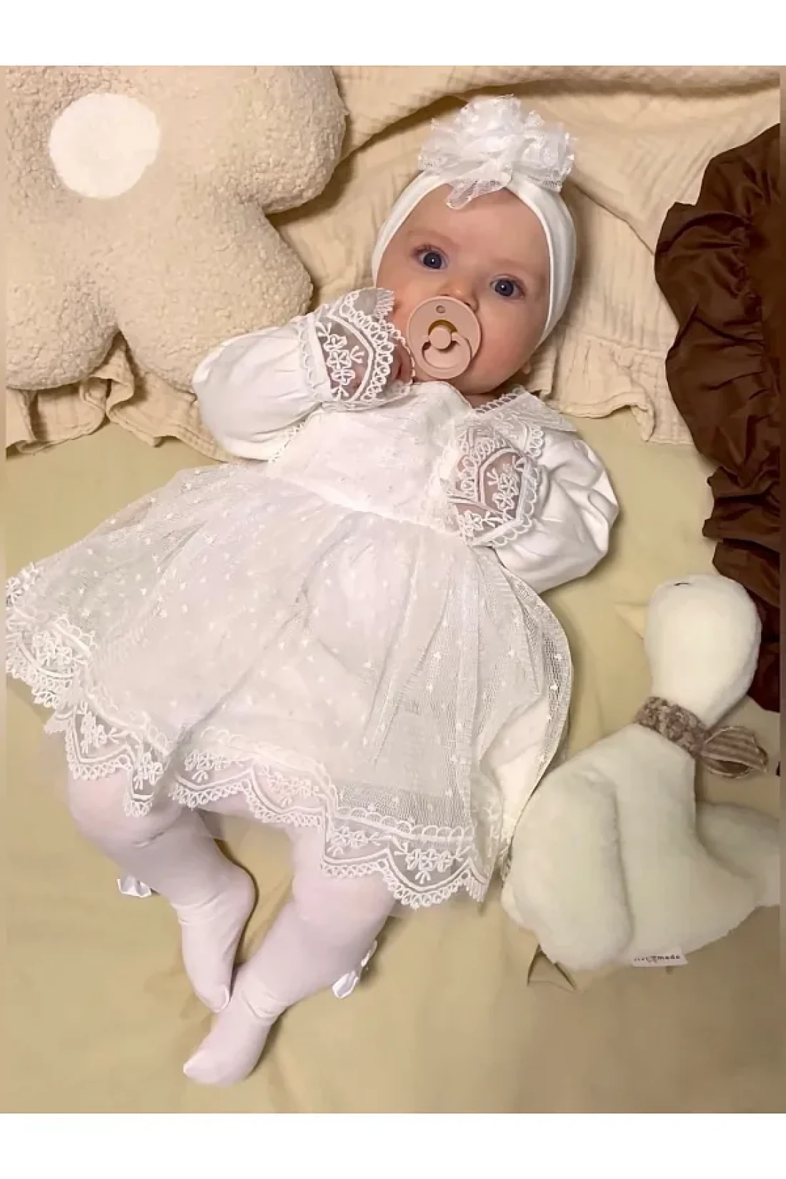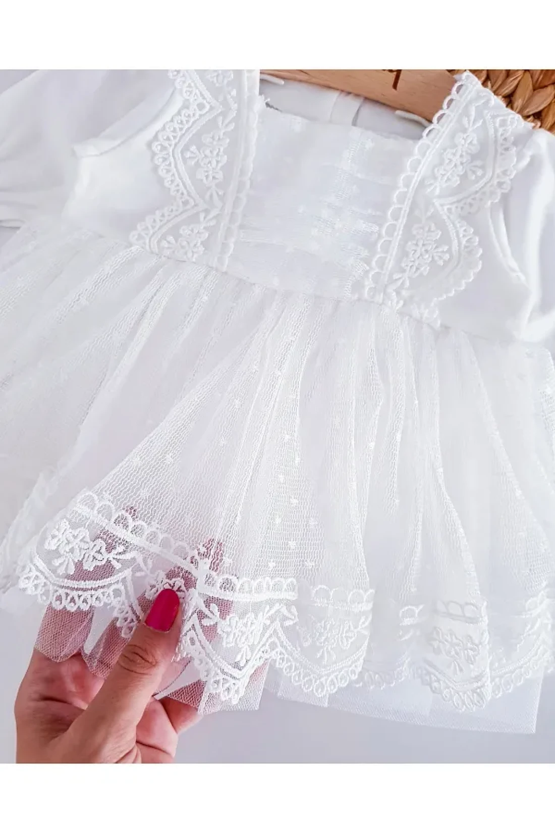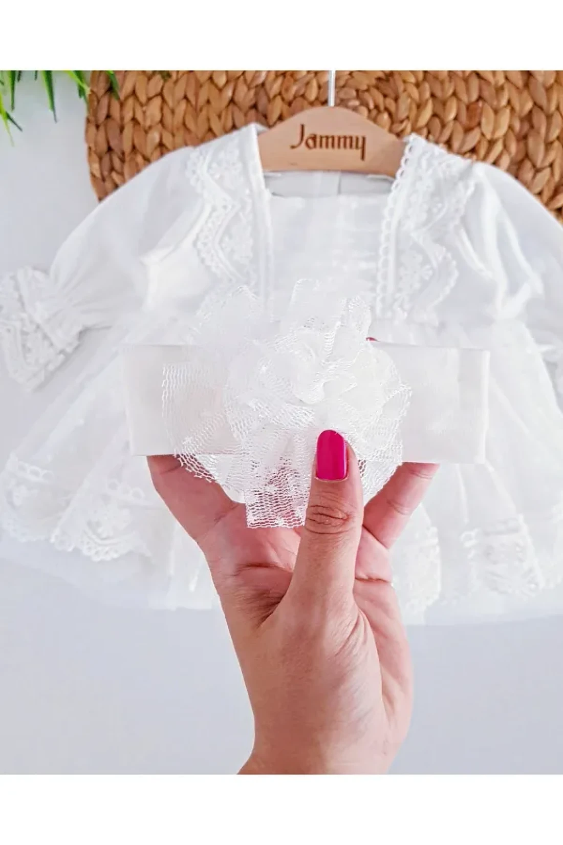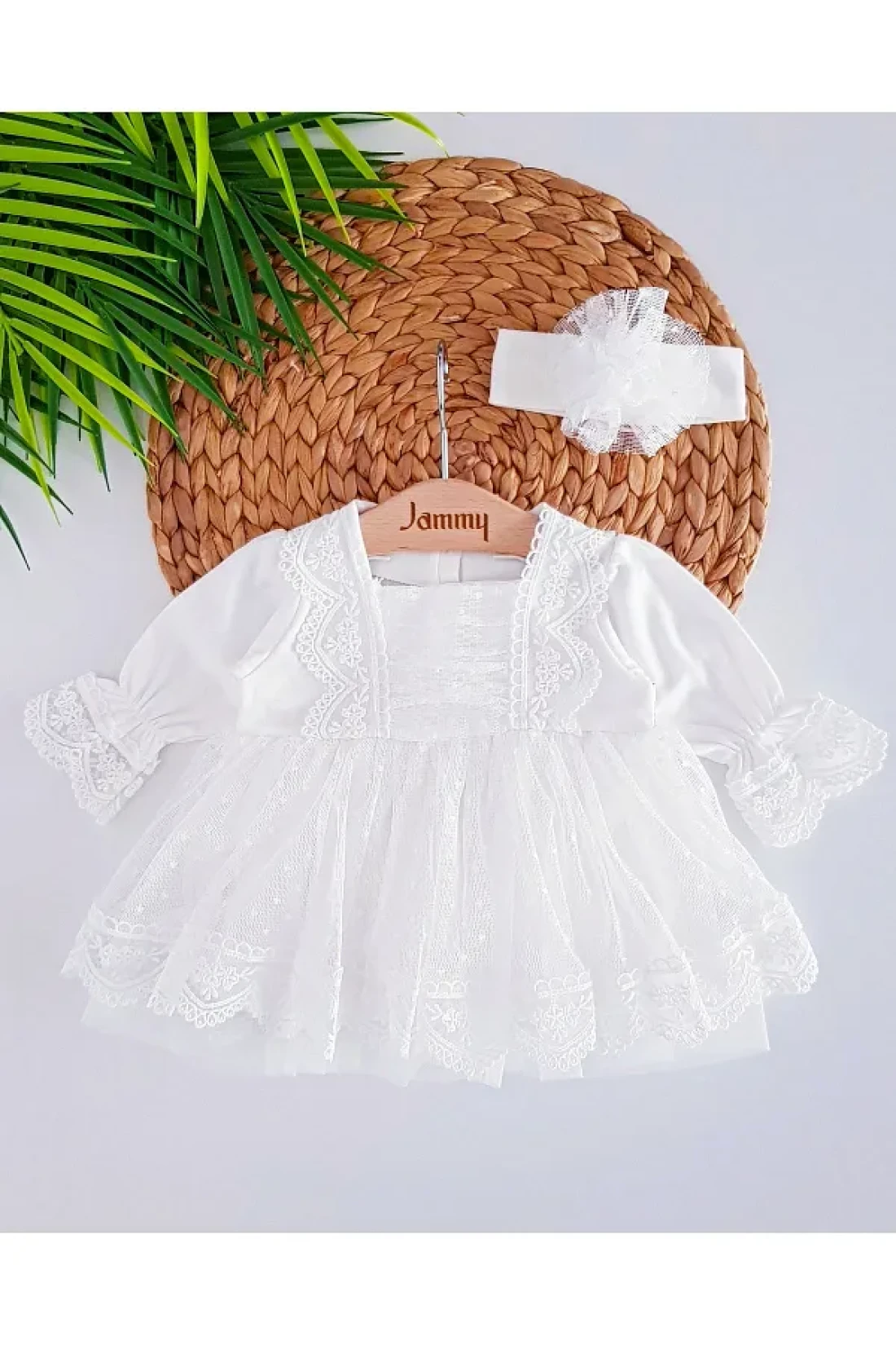 Jammybaby Newborn Tulle Lace Baby Girl Mevlüt Dress and Bandana Set - 100% Cotton Combed