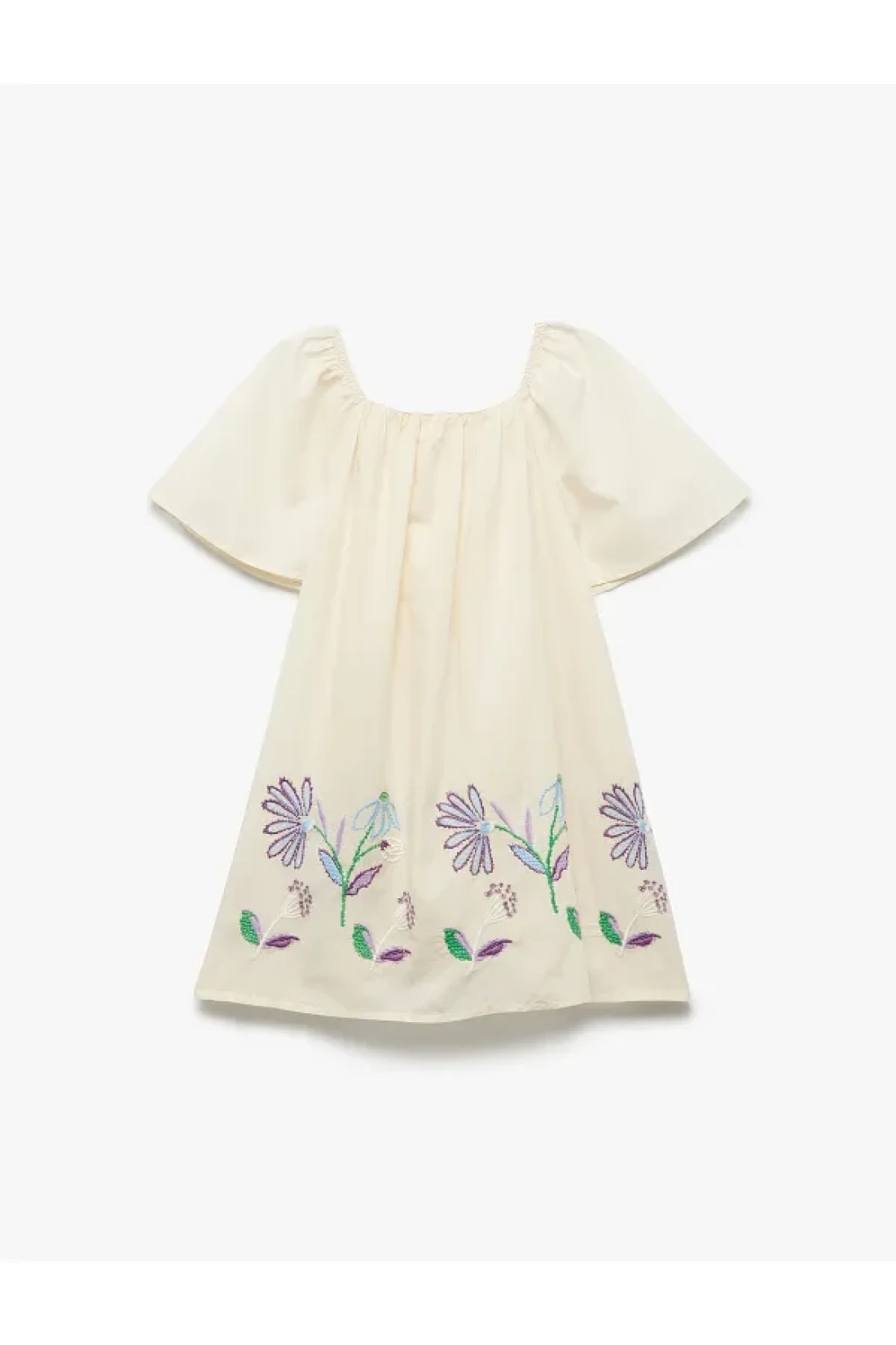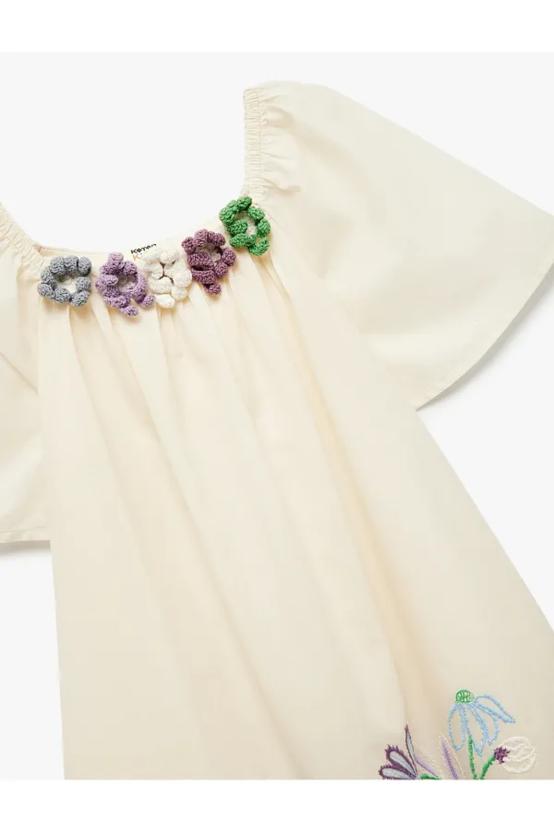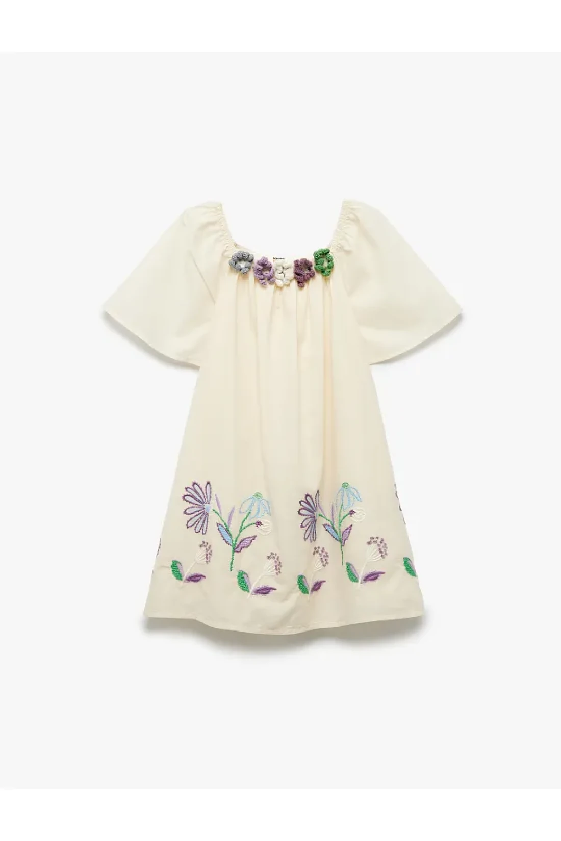 Koton Cotton Dress with Embroidered Floral Applique Detail