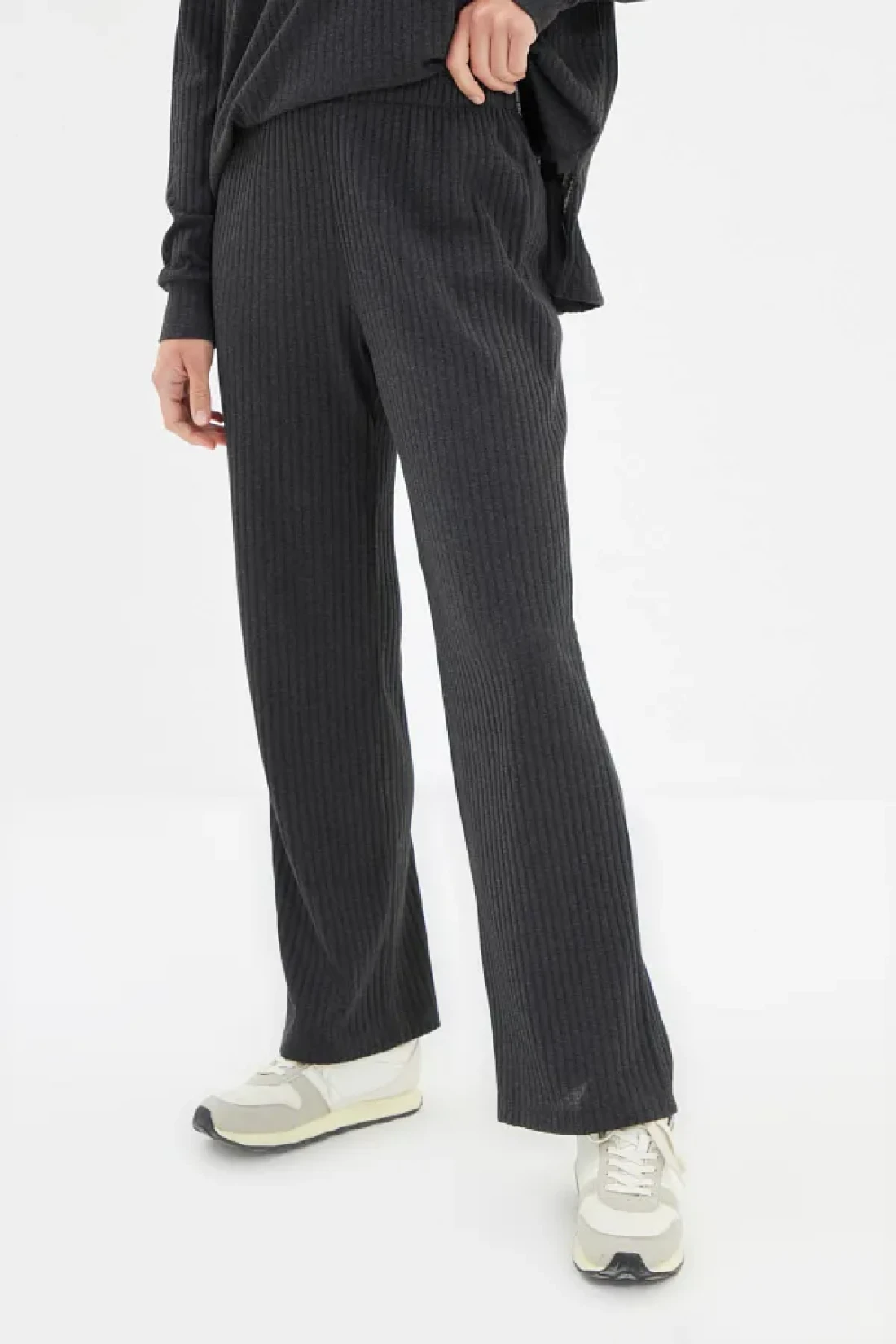 Collection Anthracite Hooded Ribbed Knitted Pajamas Set Thmaw22Au0334