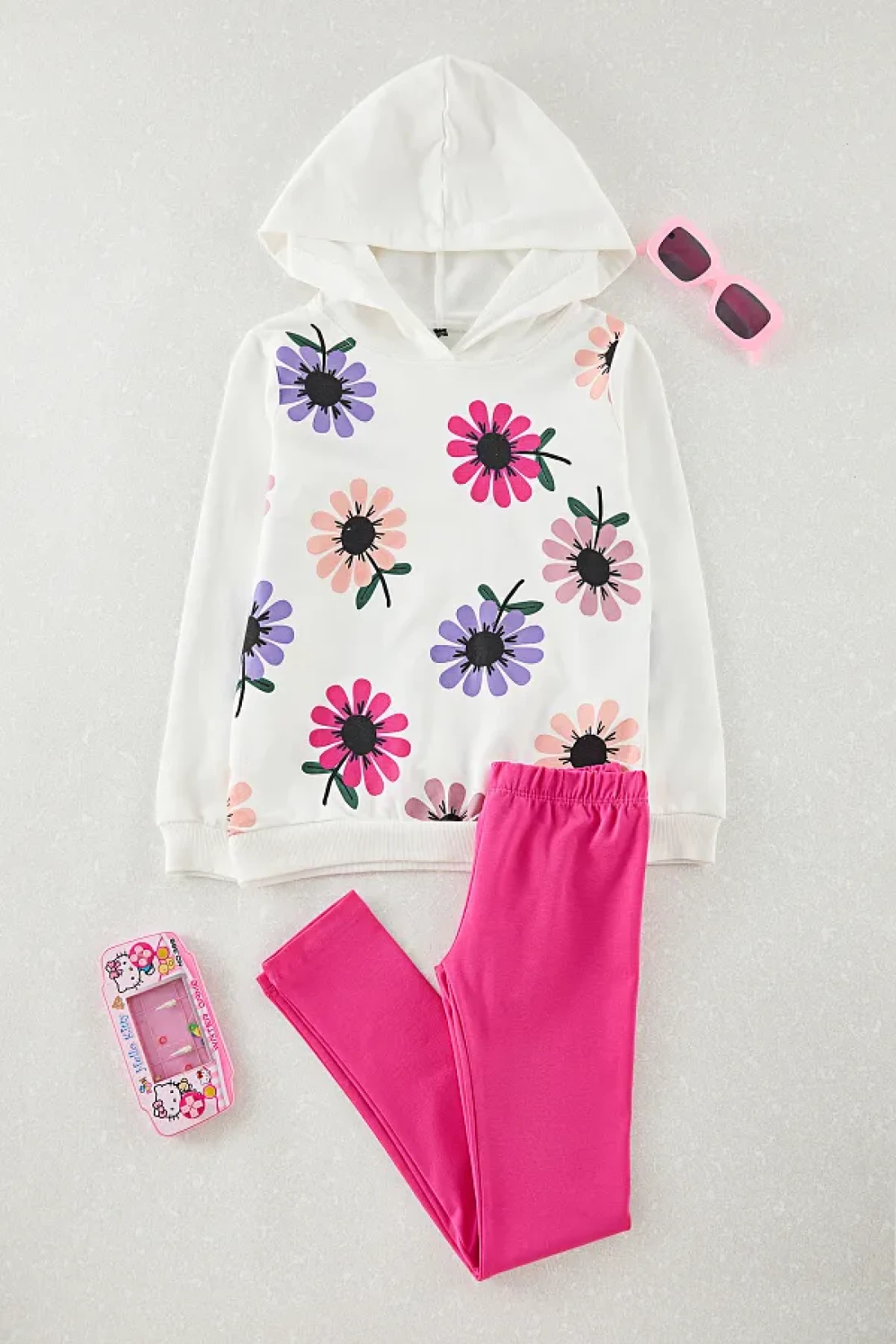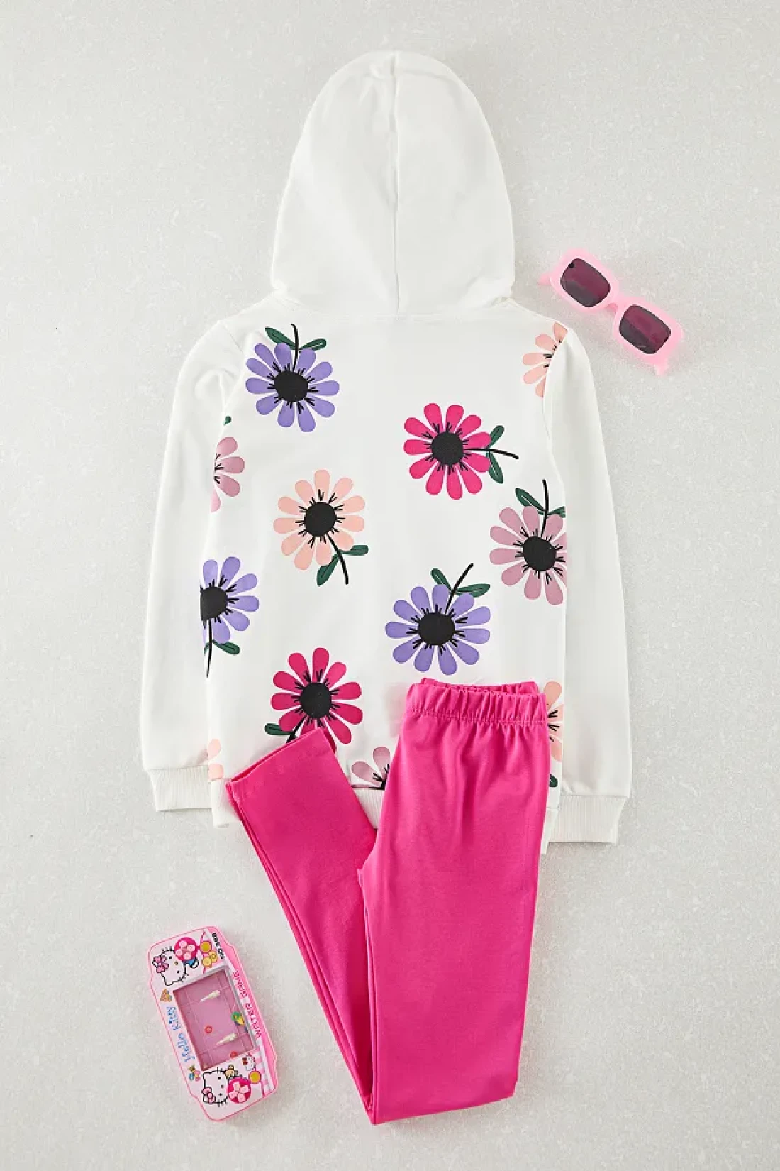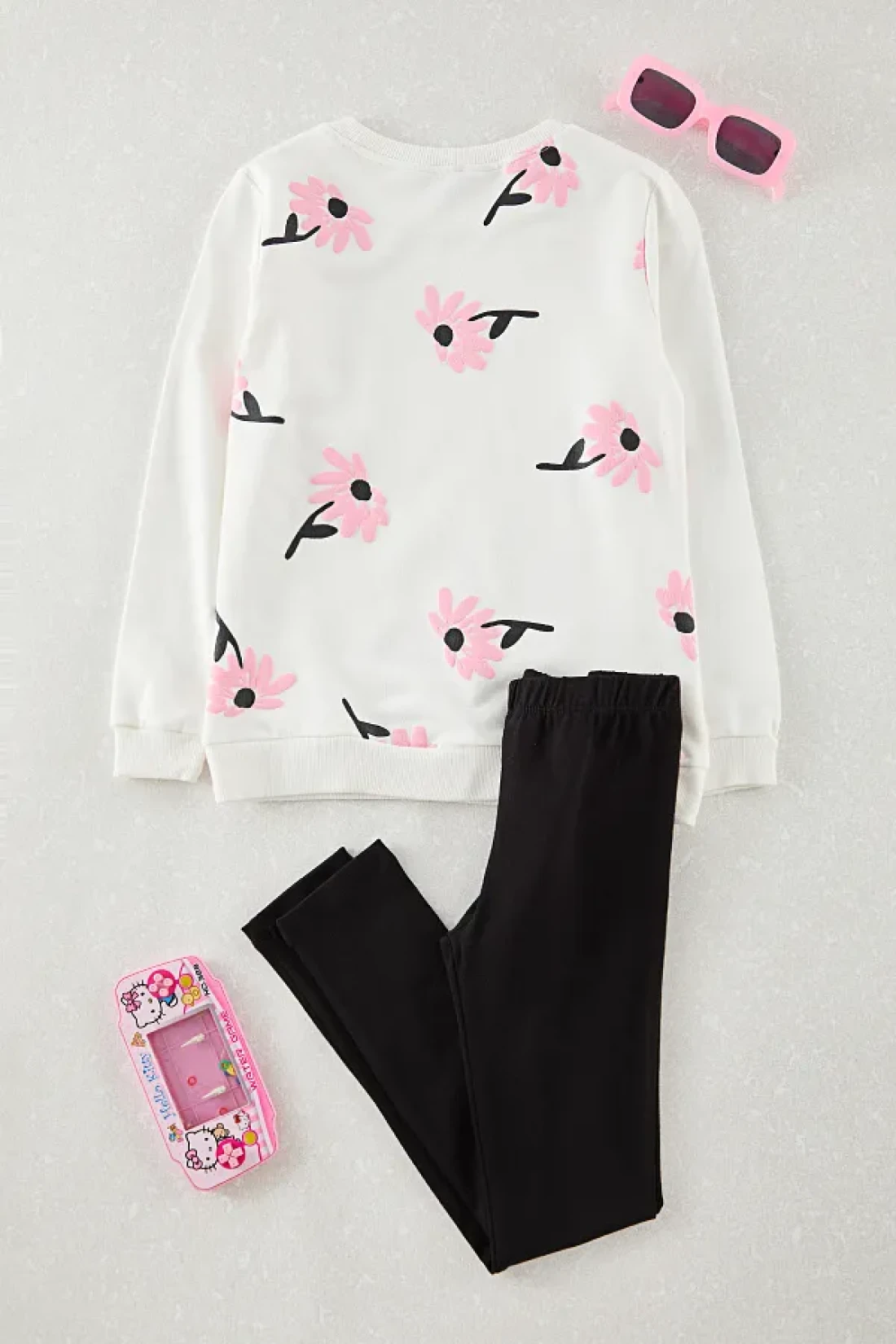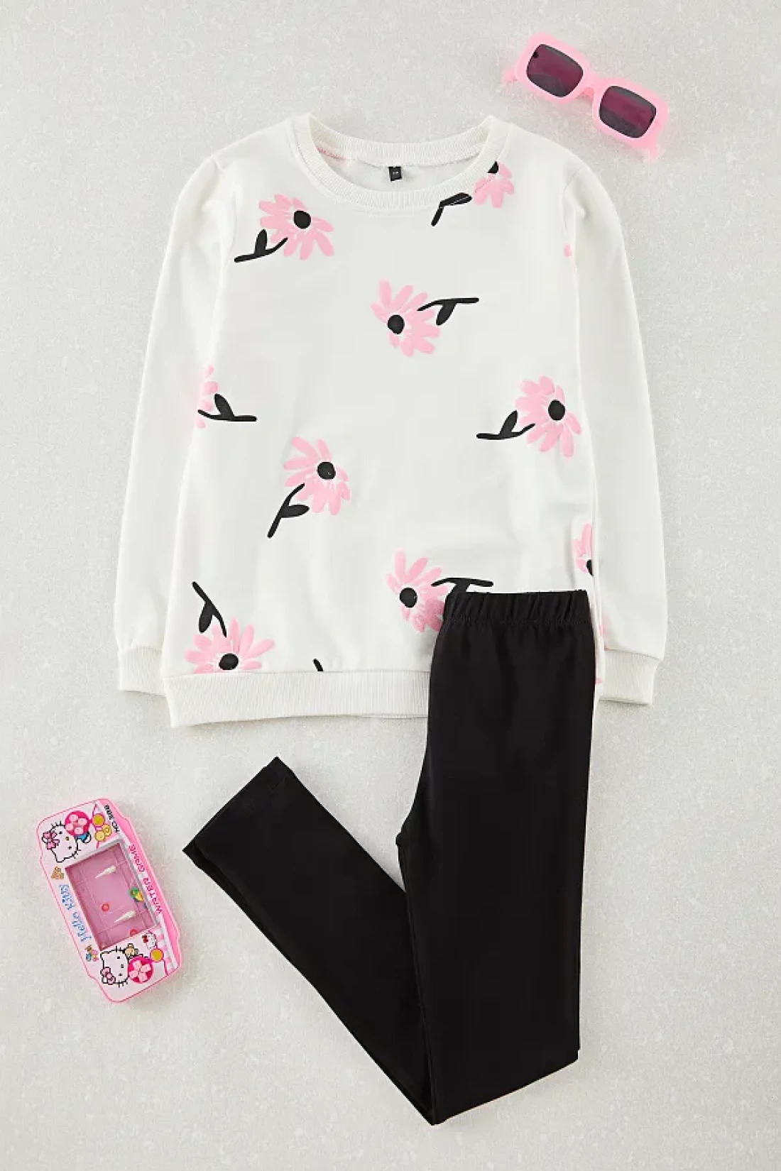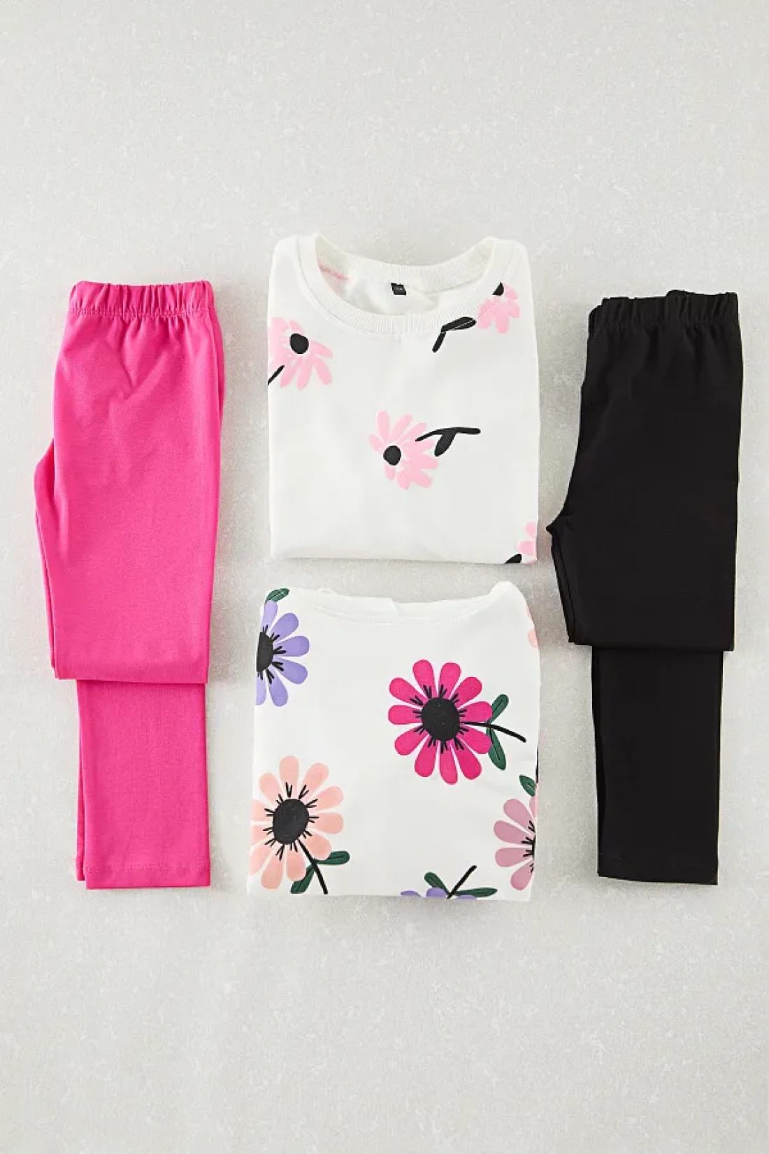 TRENDYOLKIDS White-Multicolor 4-Piece Girl's Floral Knitted Top and Bottom Set Tkdaw25Au00120