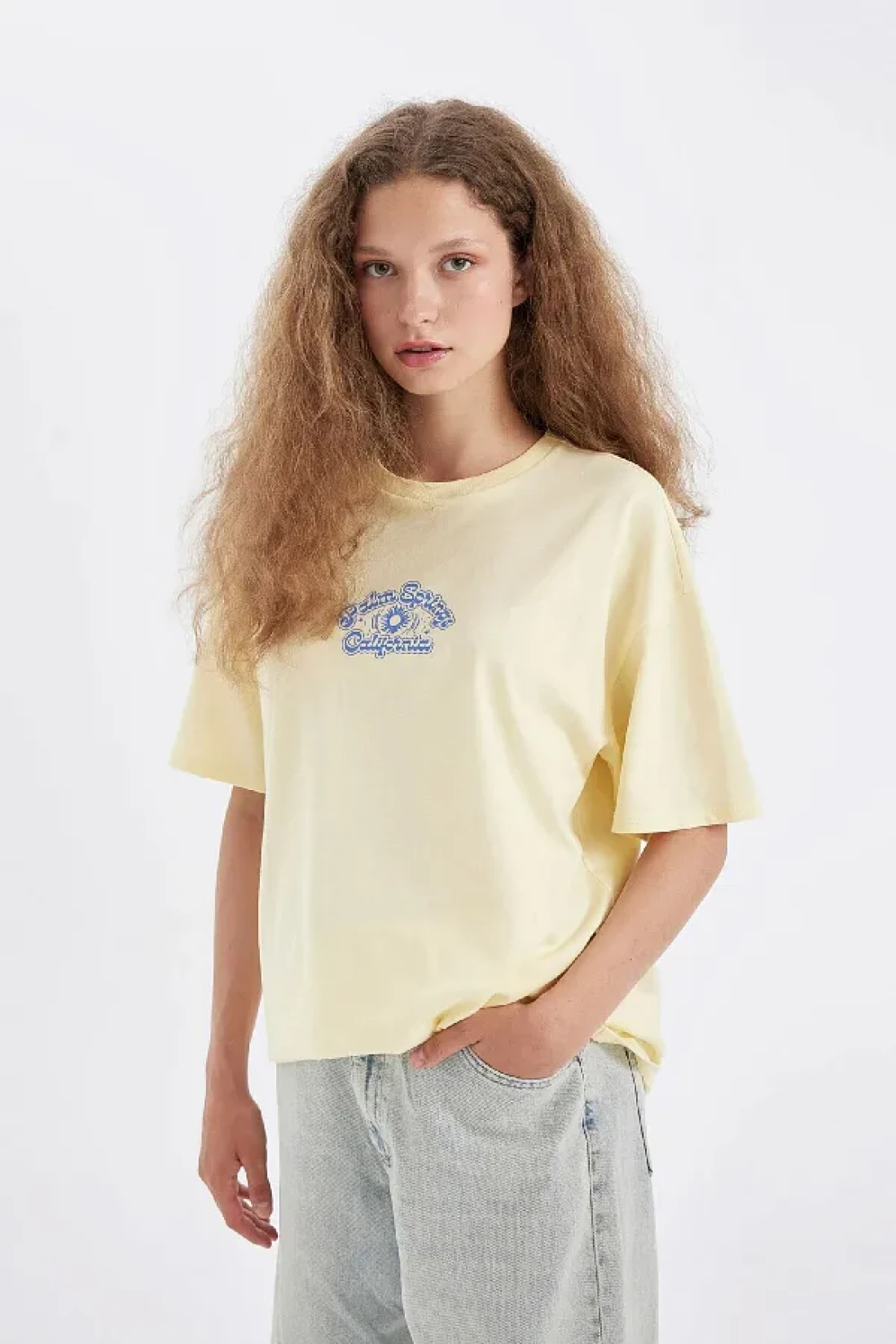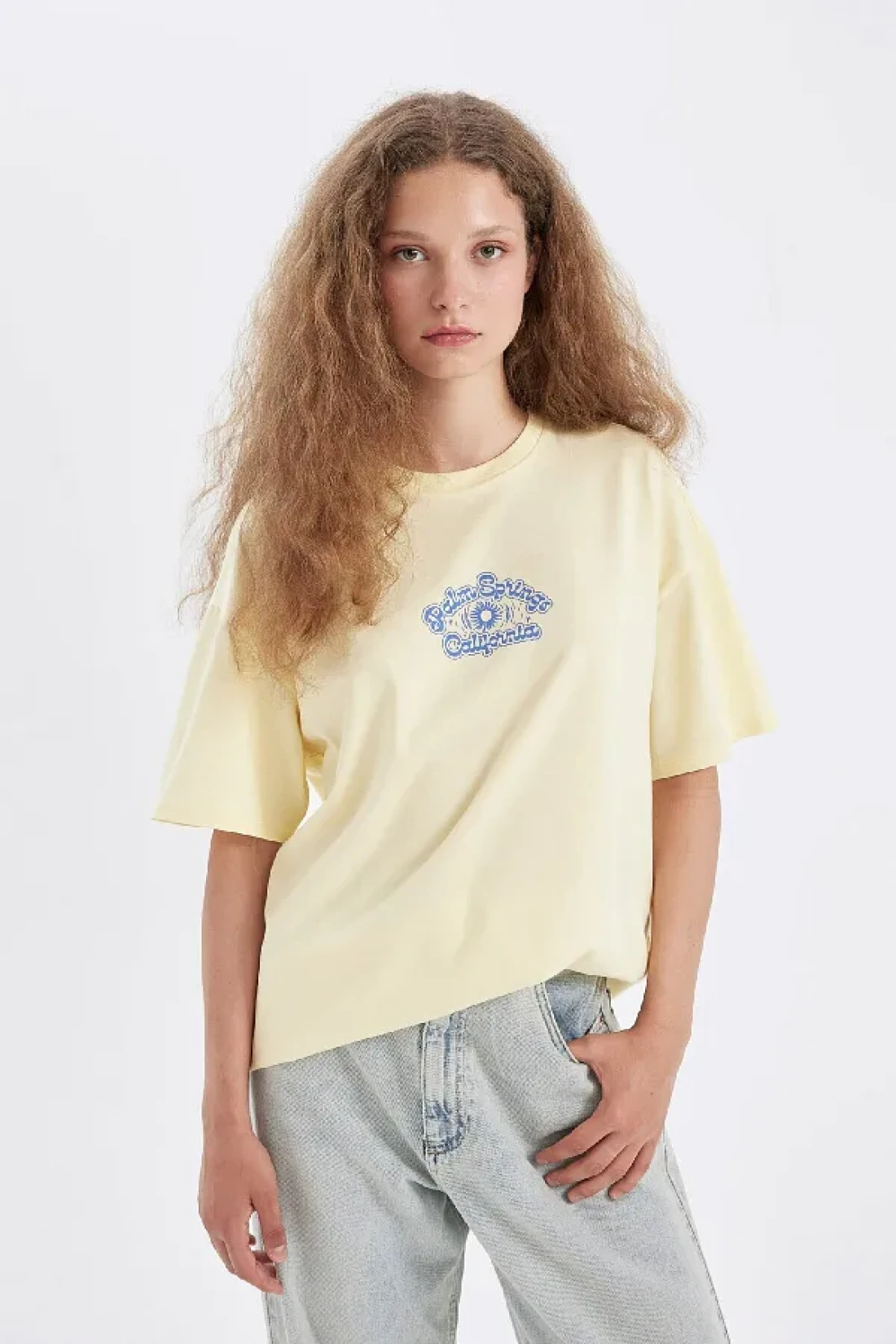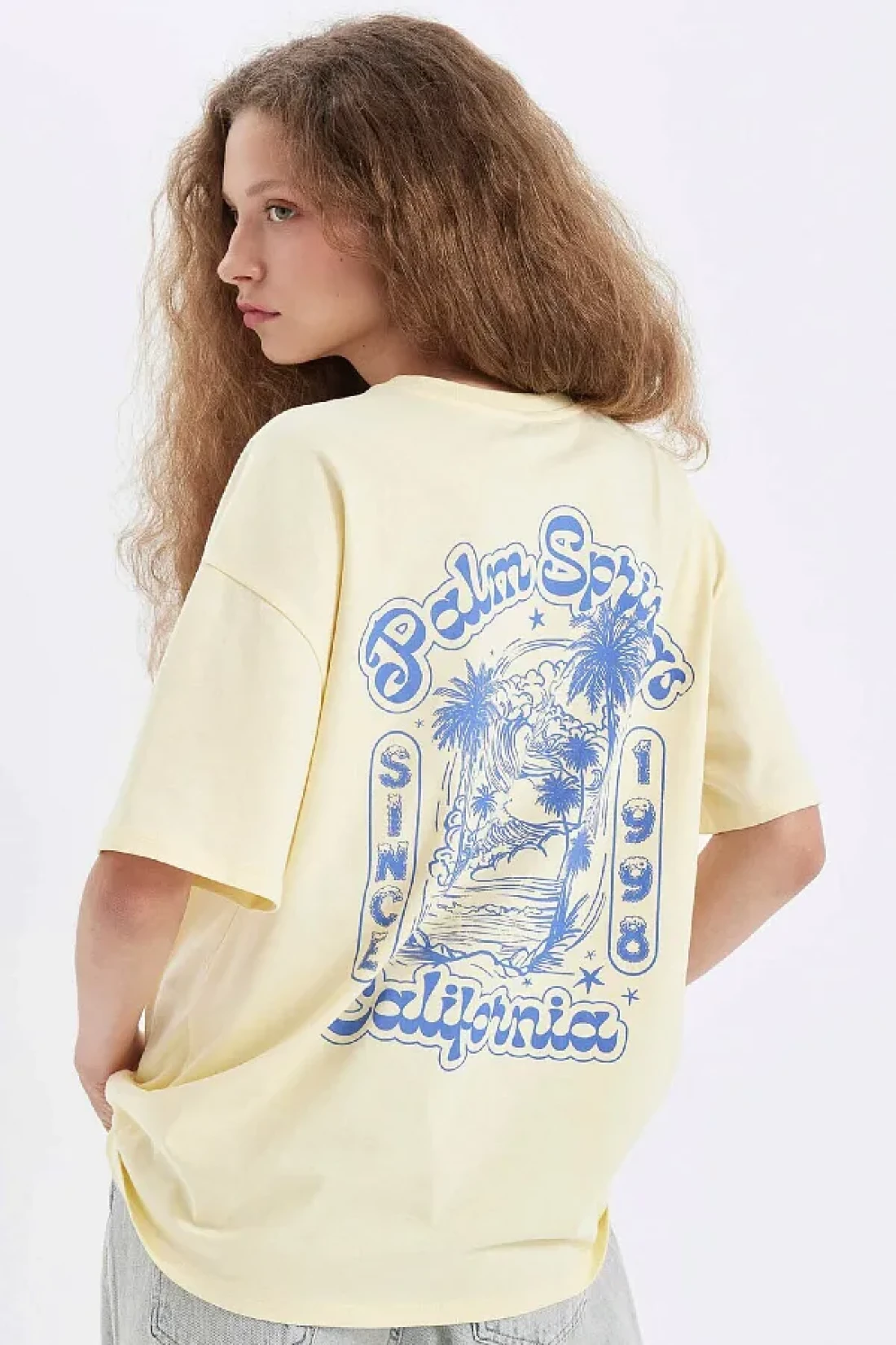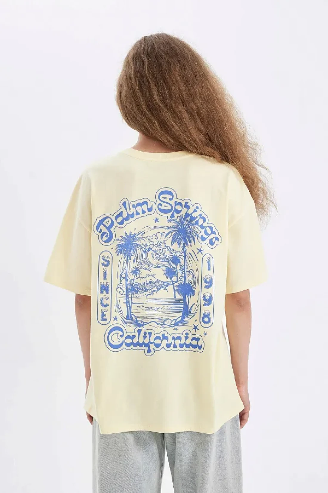Defacto Oversize Wide Fit Crew Neck Back Printed Short Sleeve T-Shirt D4929Ax24Au