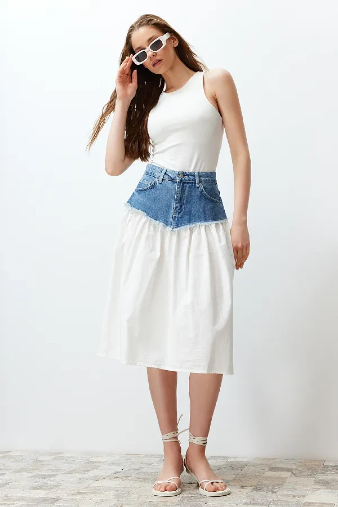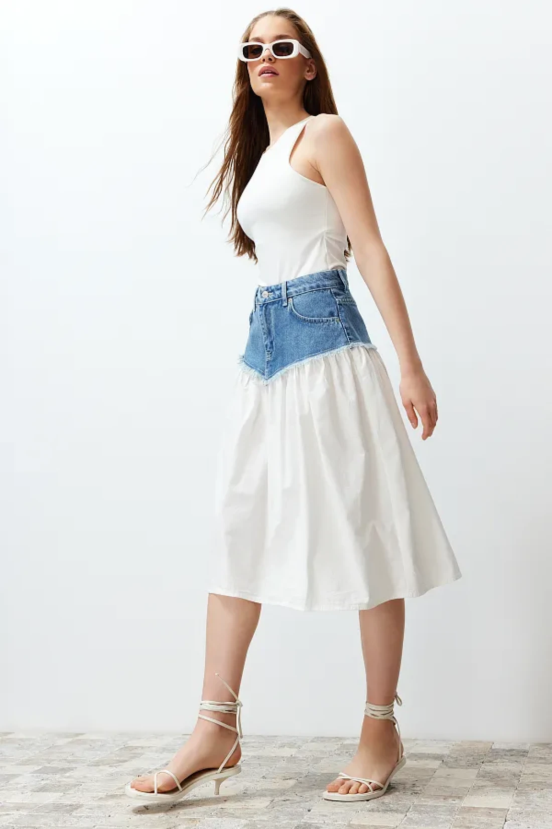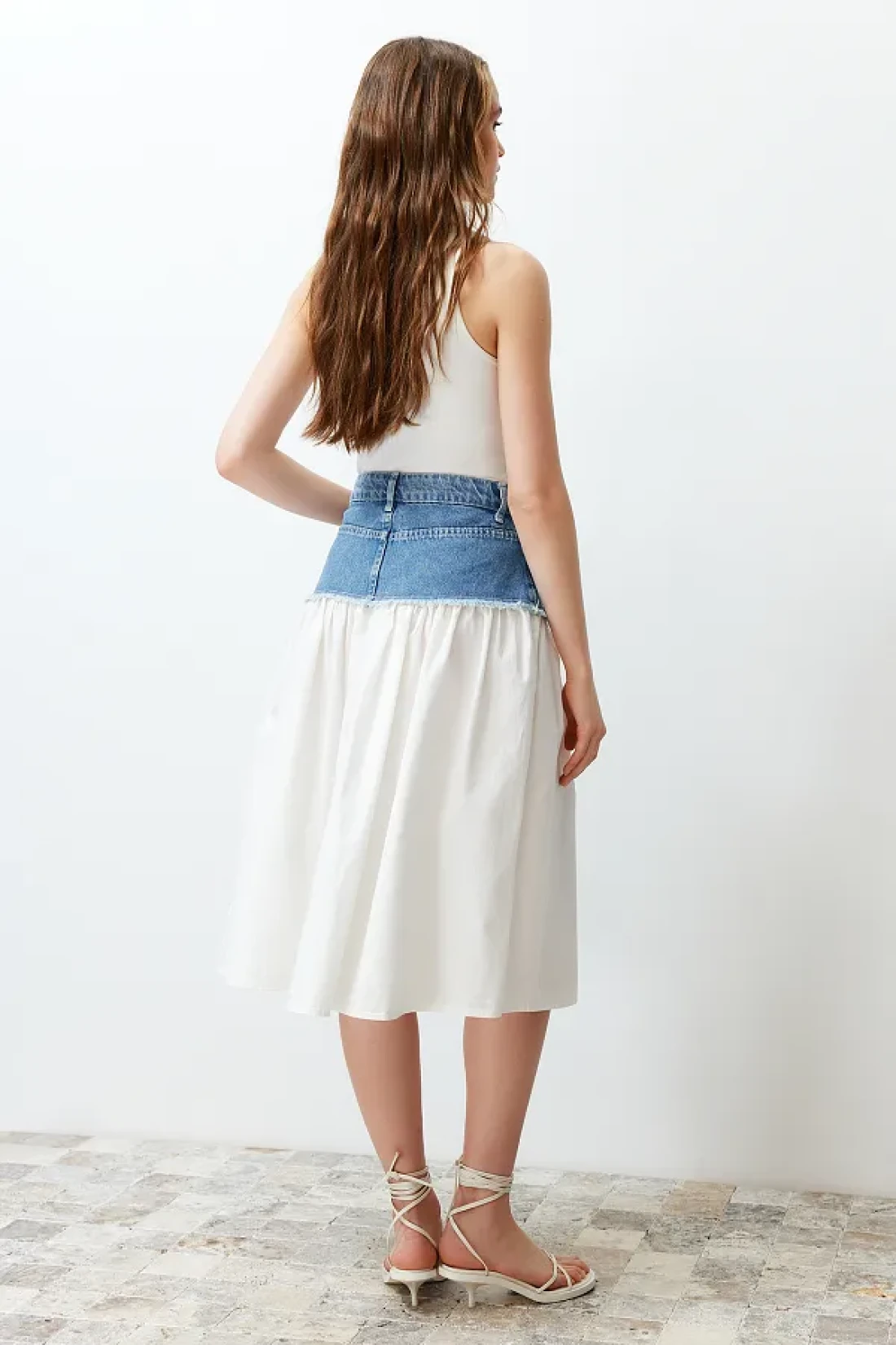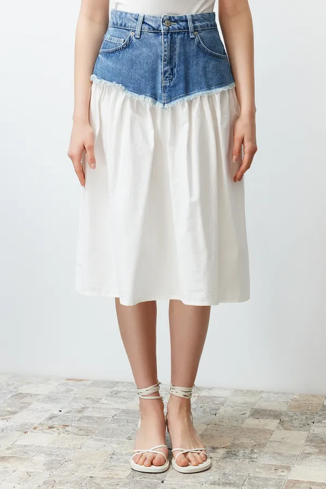 Collection Blue Color Blocked High Waist Midi Denim Skirt TWOSS24ET00142