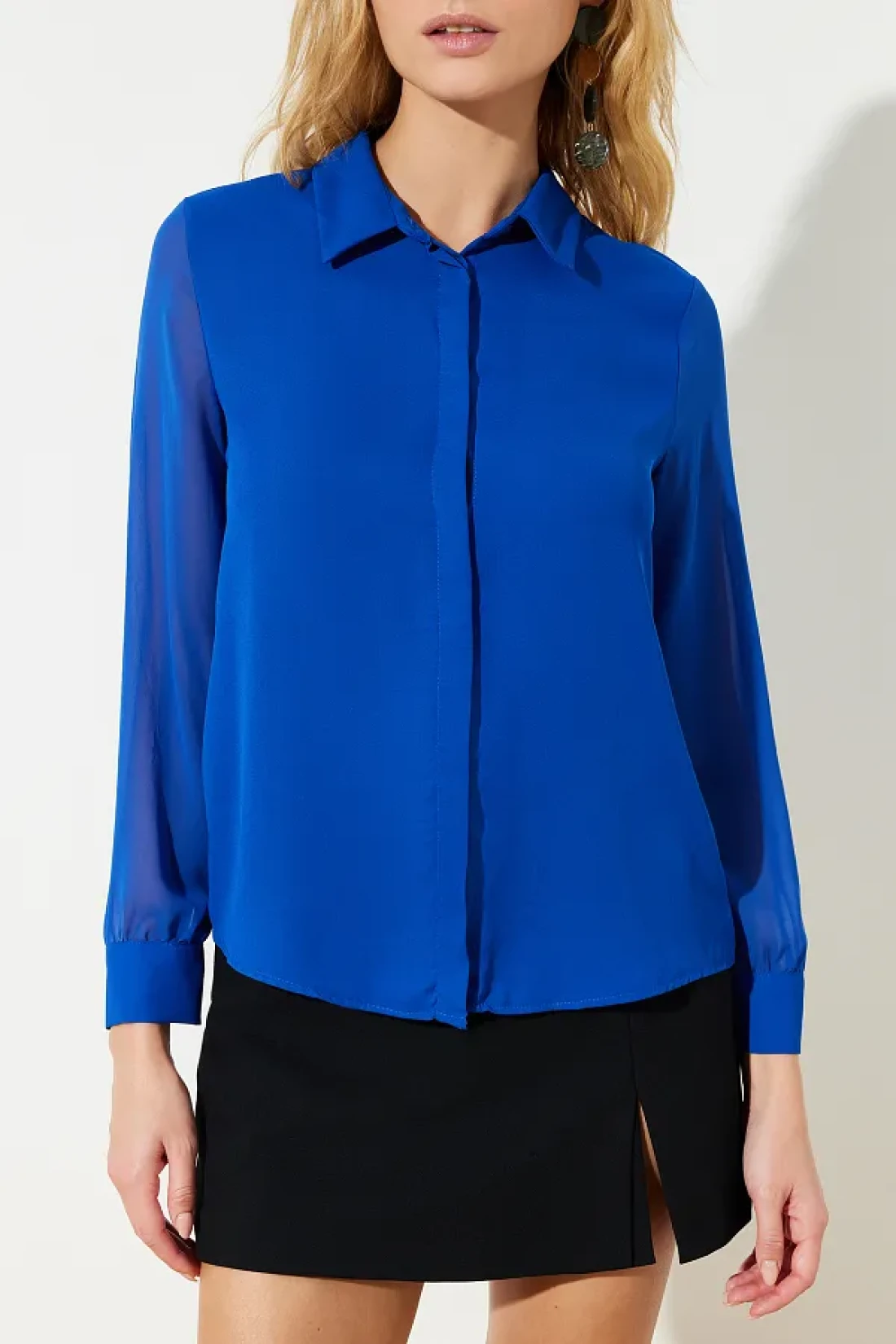 Collection Transparent Baby Blue Woven Shirt - Regular Regular Fit TWOAW20GO0116