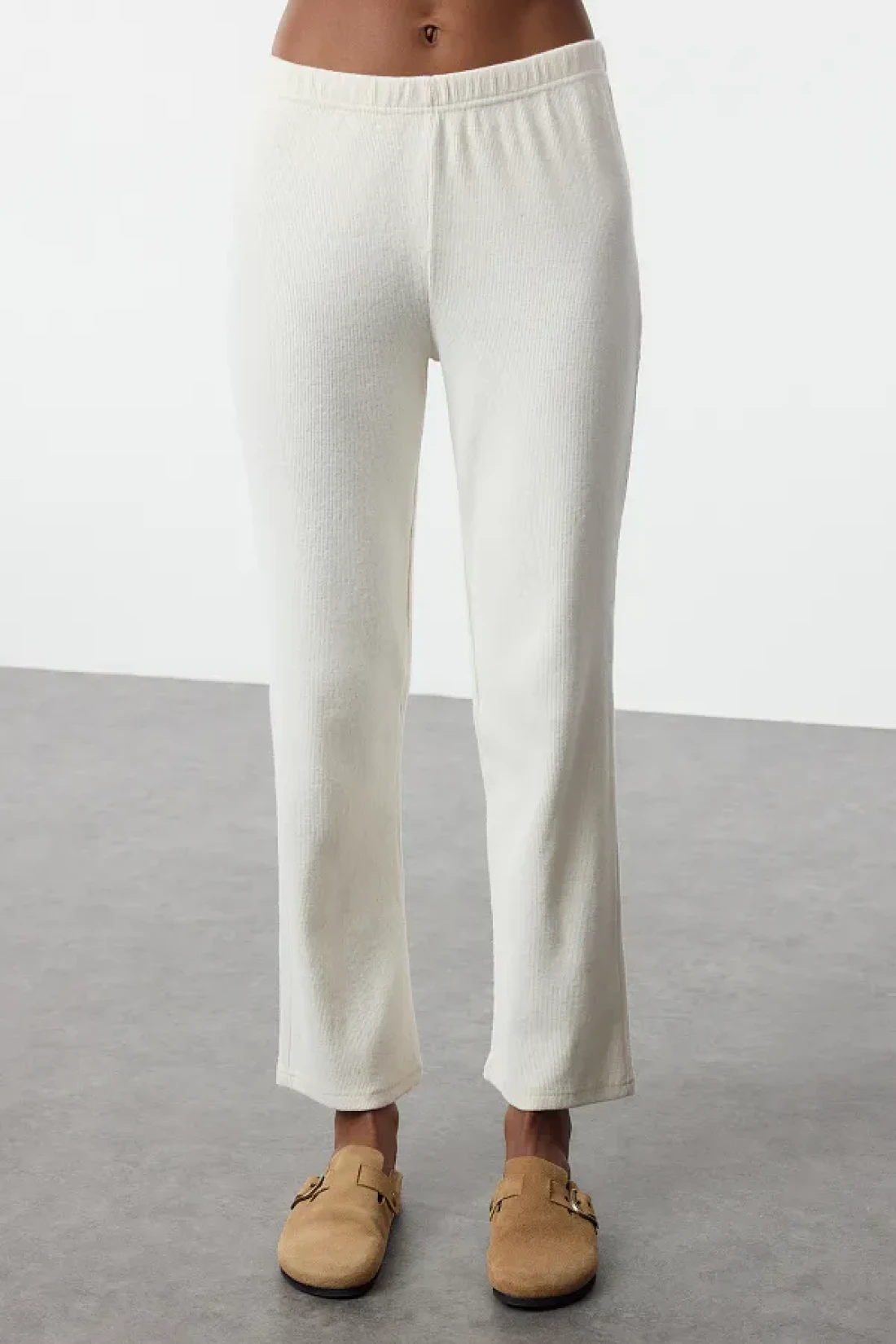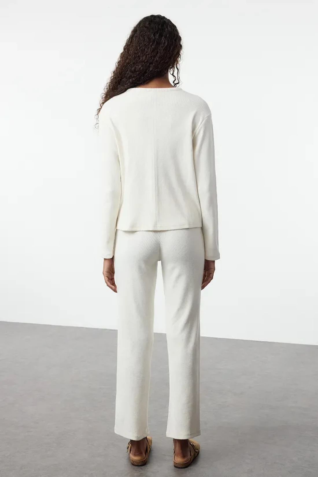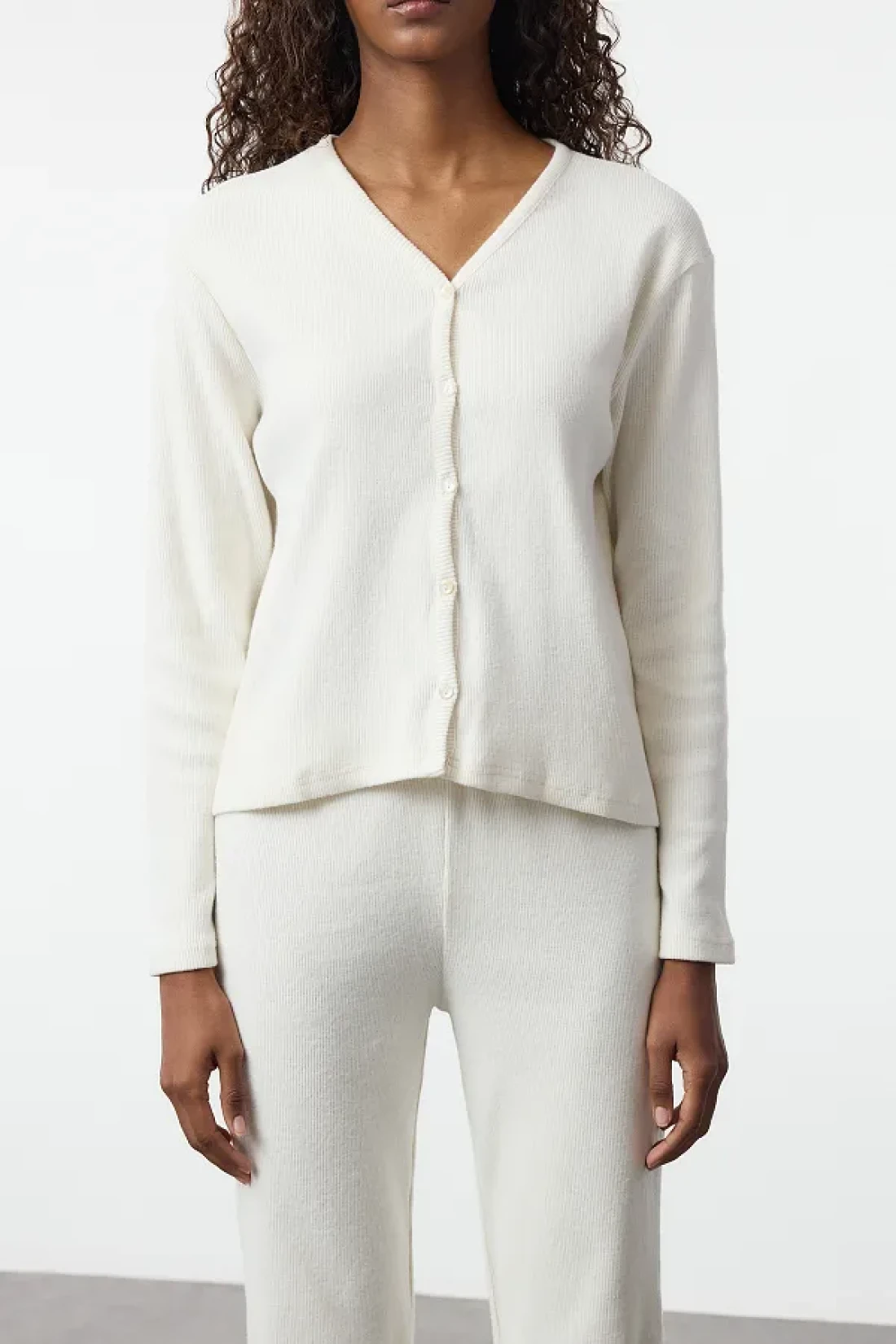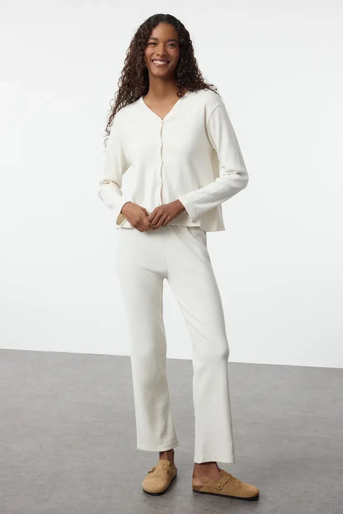 Collection Ecru Brushed Soft Corded Cardigan Knitted Pajama Set Thmaw25Pt00074