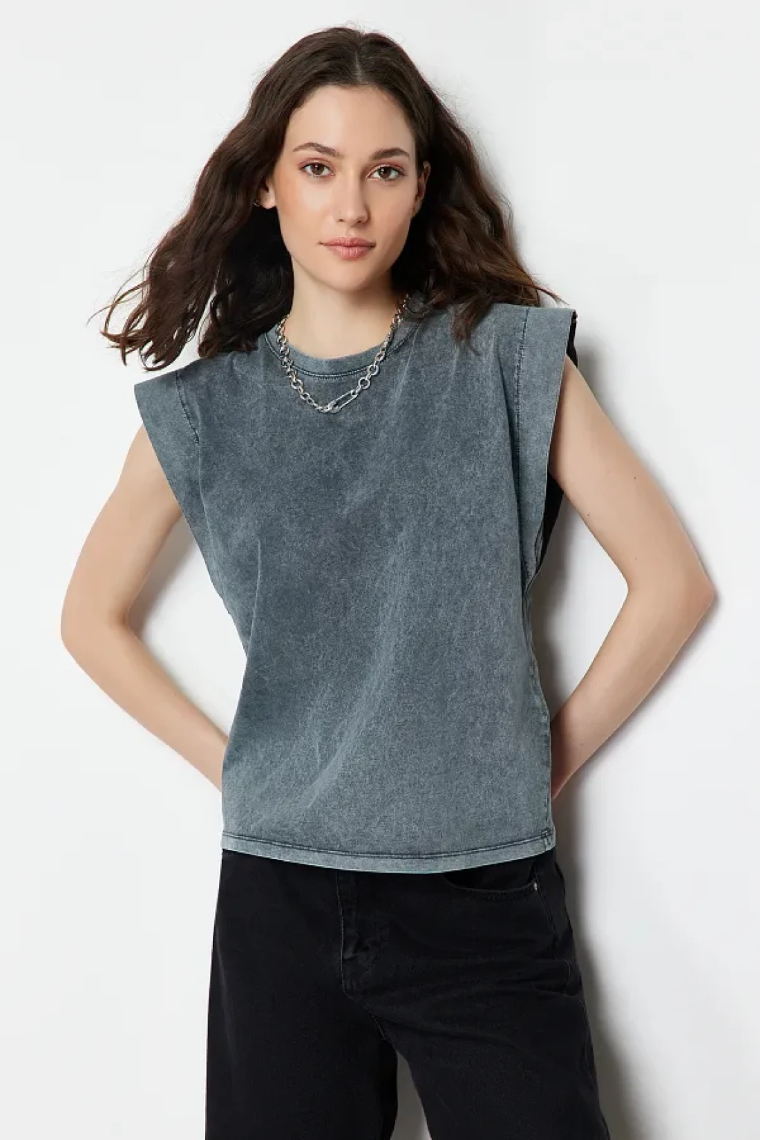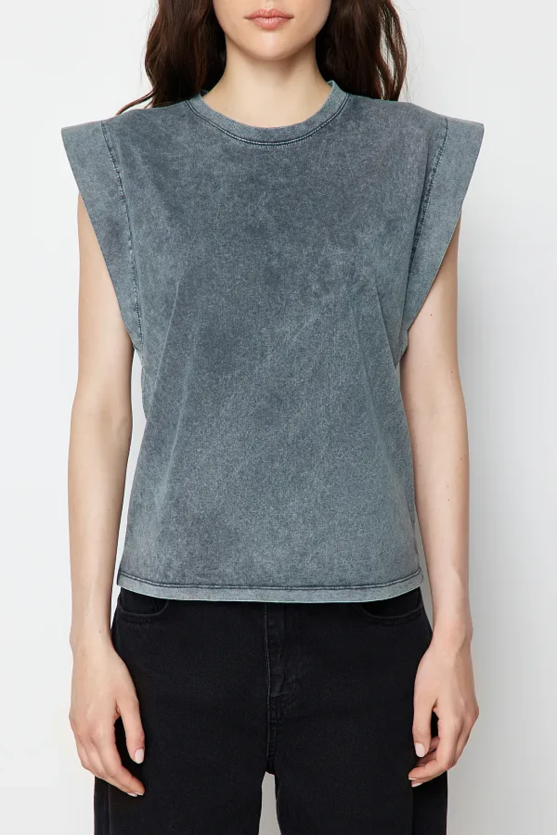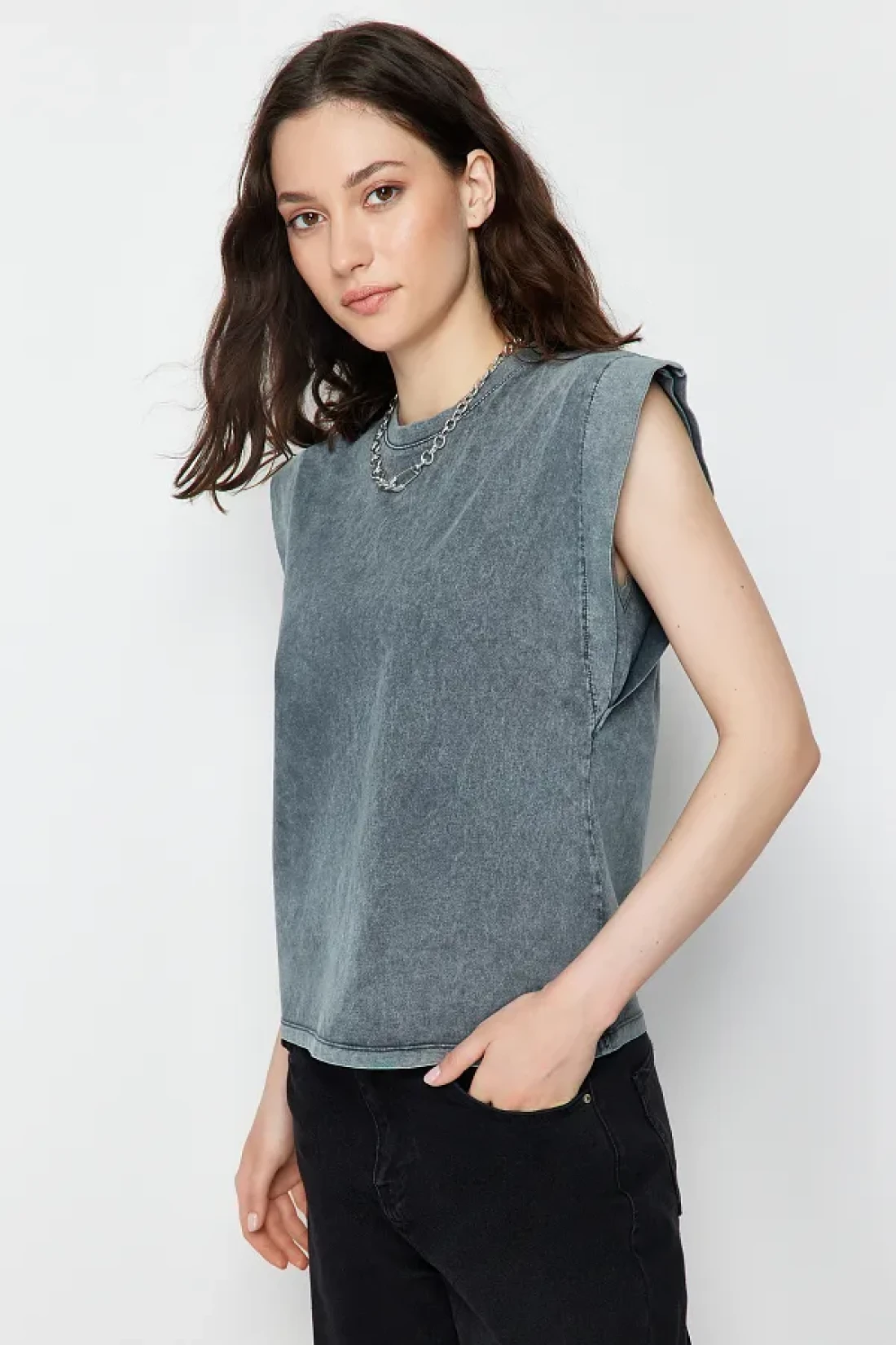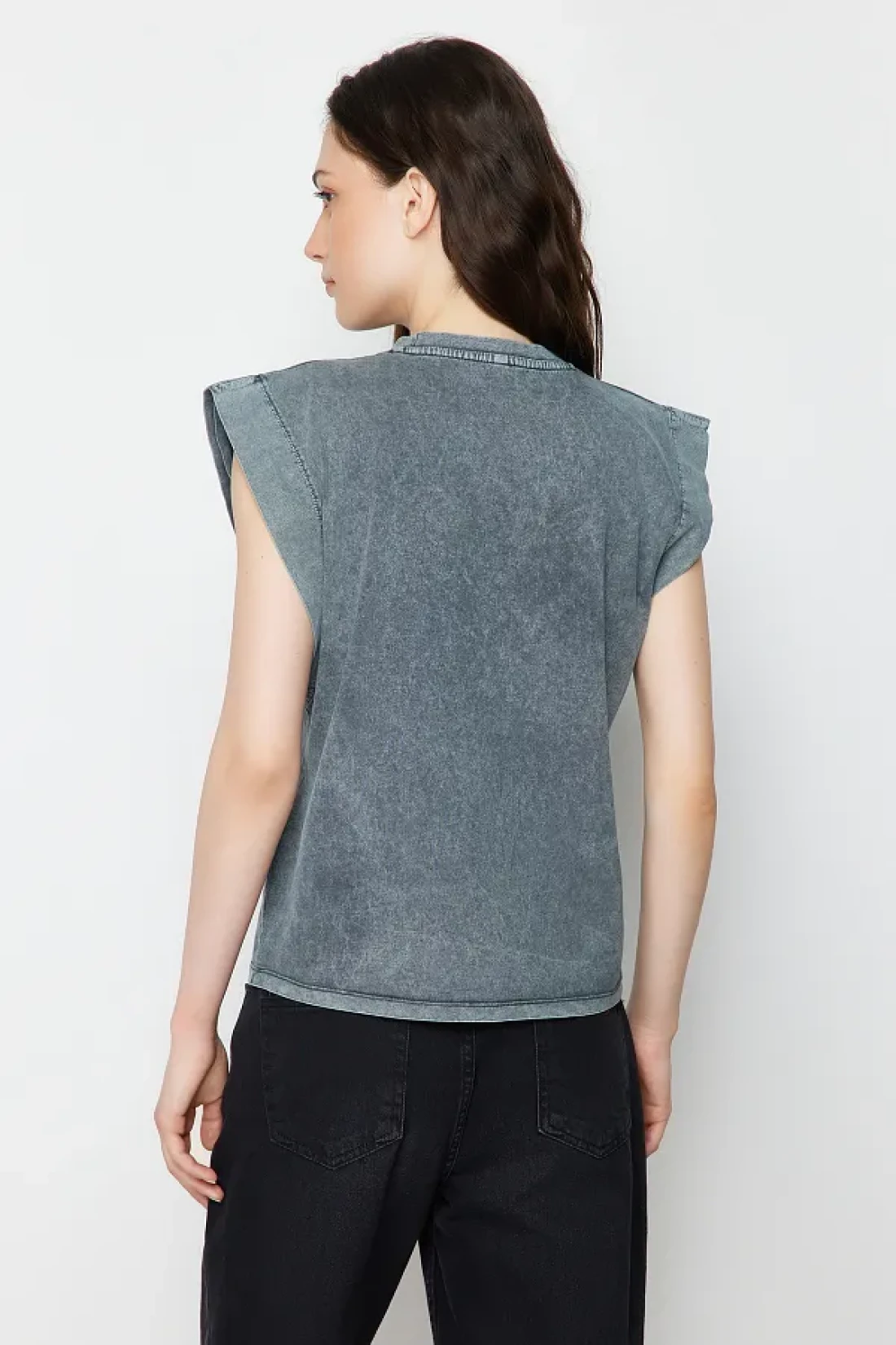 Collection Anthracite*001 Faded Effect 100% Cotton Wadding Appearance Basic Crew Neck Knitted T-Shirt TWOSS20TS0021