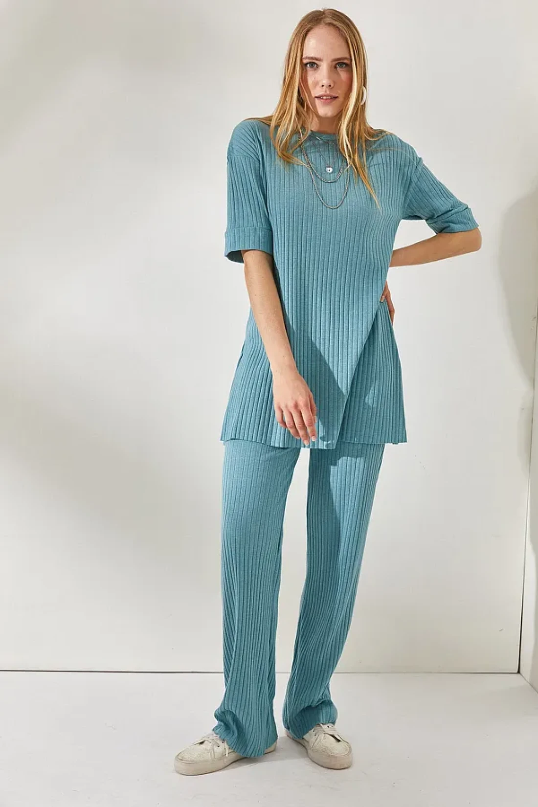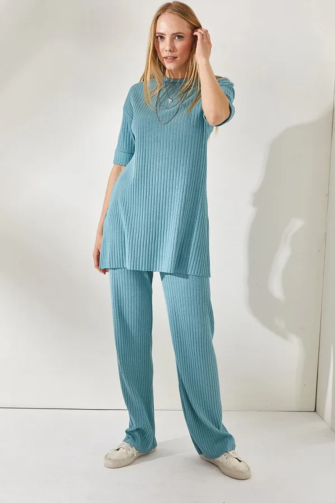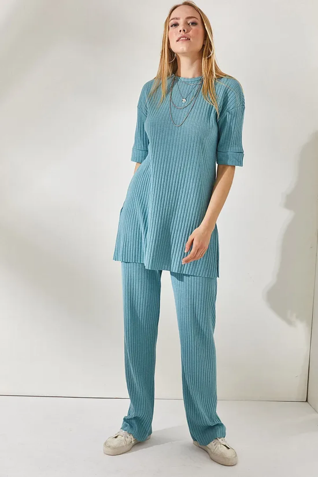 Olalook Women's Mint Green Short Sleeve Lower Top Lycra Suit TKM-19000191