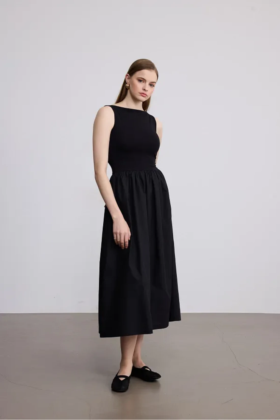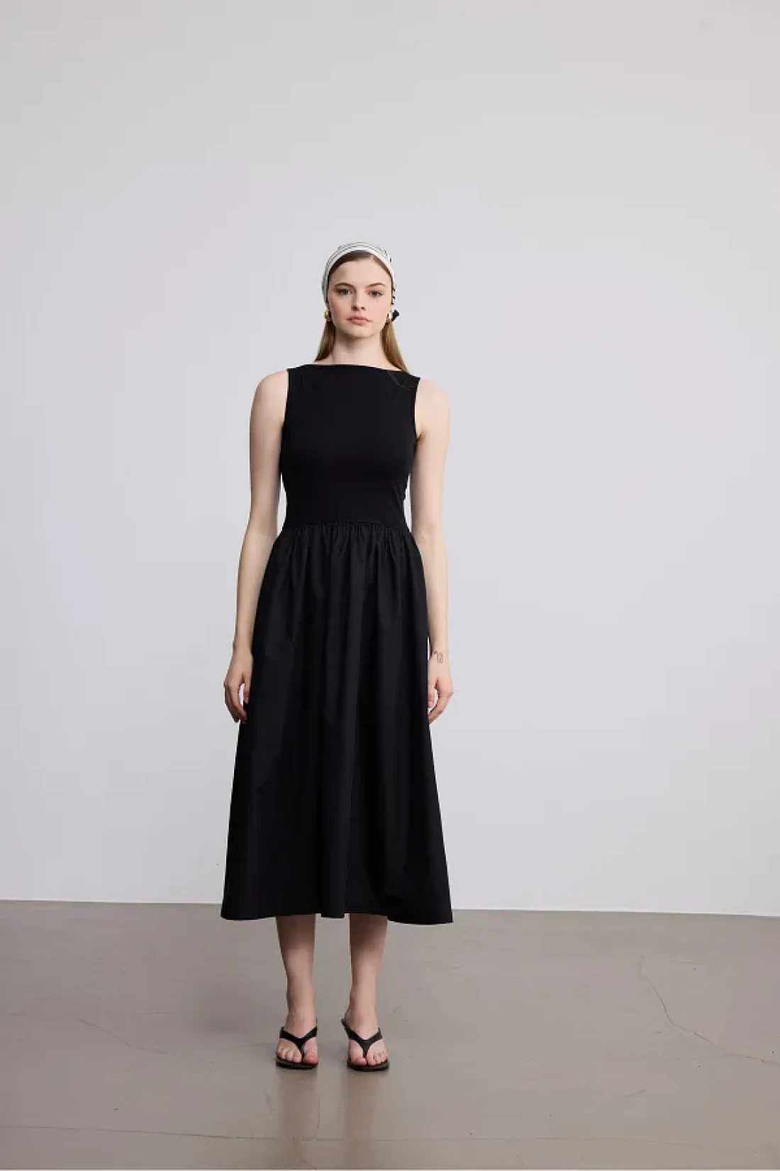 - the knitted fabric offers flexibility and comfort, while the poplin skirt adds a touch of whimsy. It is suitable for stylish and night environments