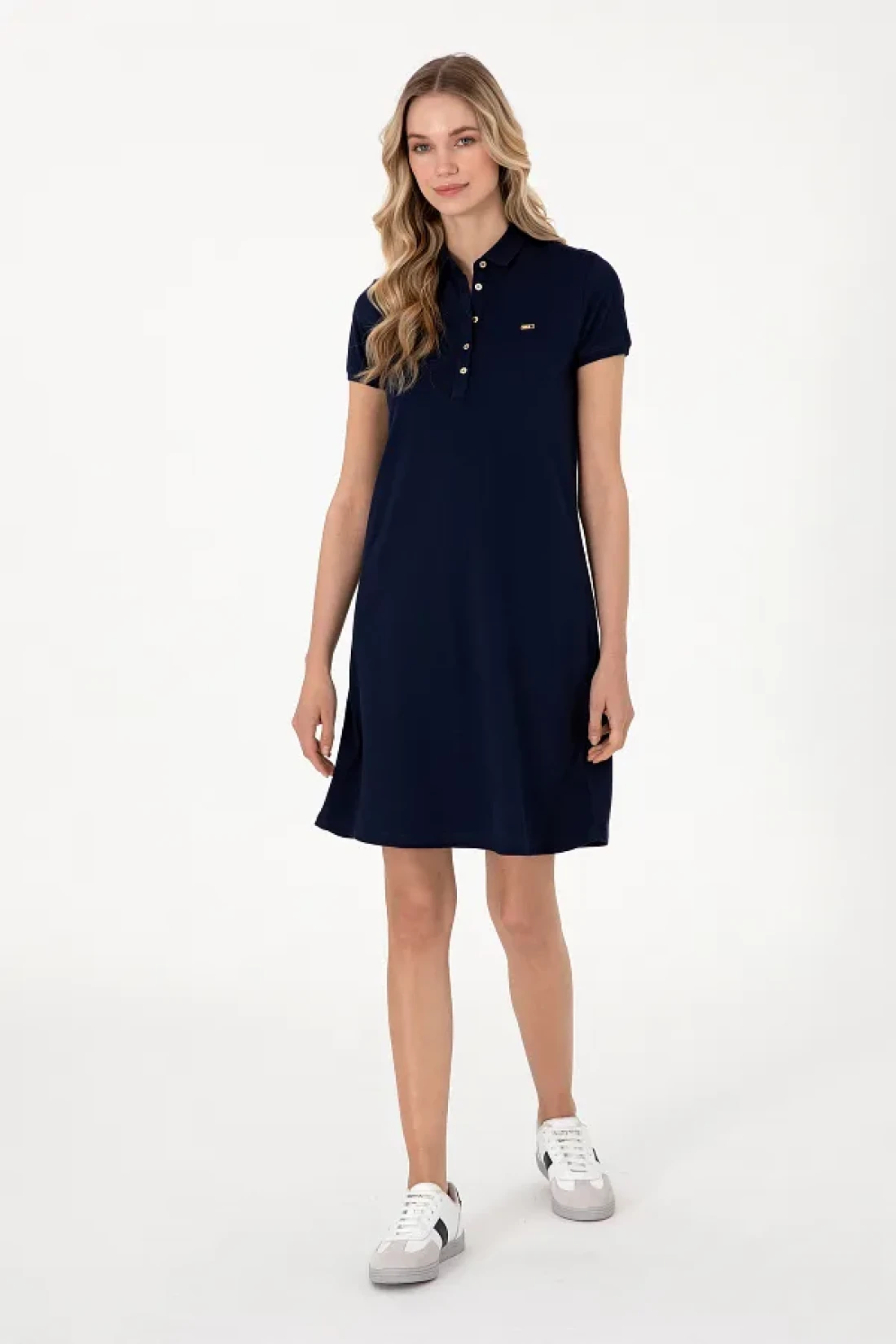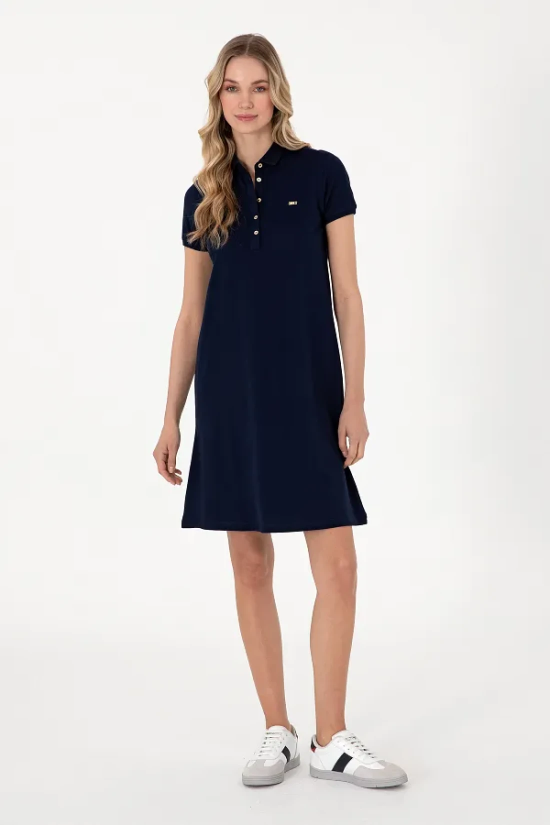 U.S. Polo Assn. Women's Navy Blue Polo Neck Mini Length Knitted Dress 50305853-Vr033