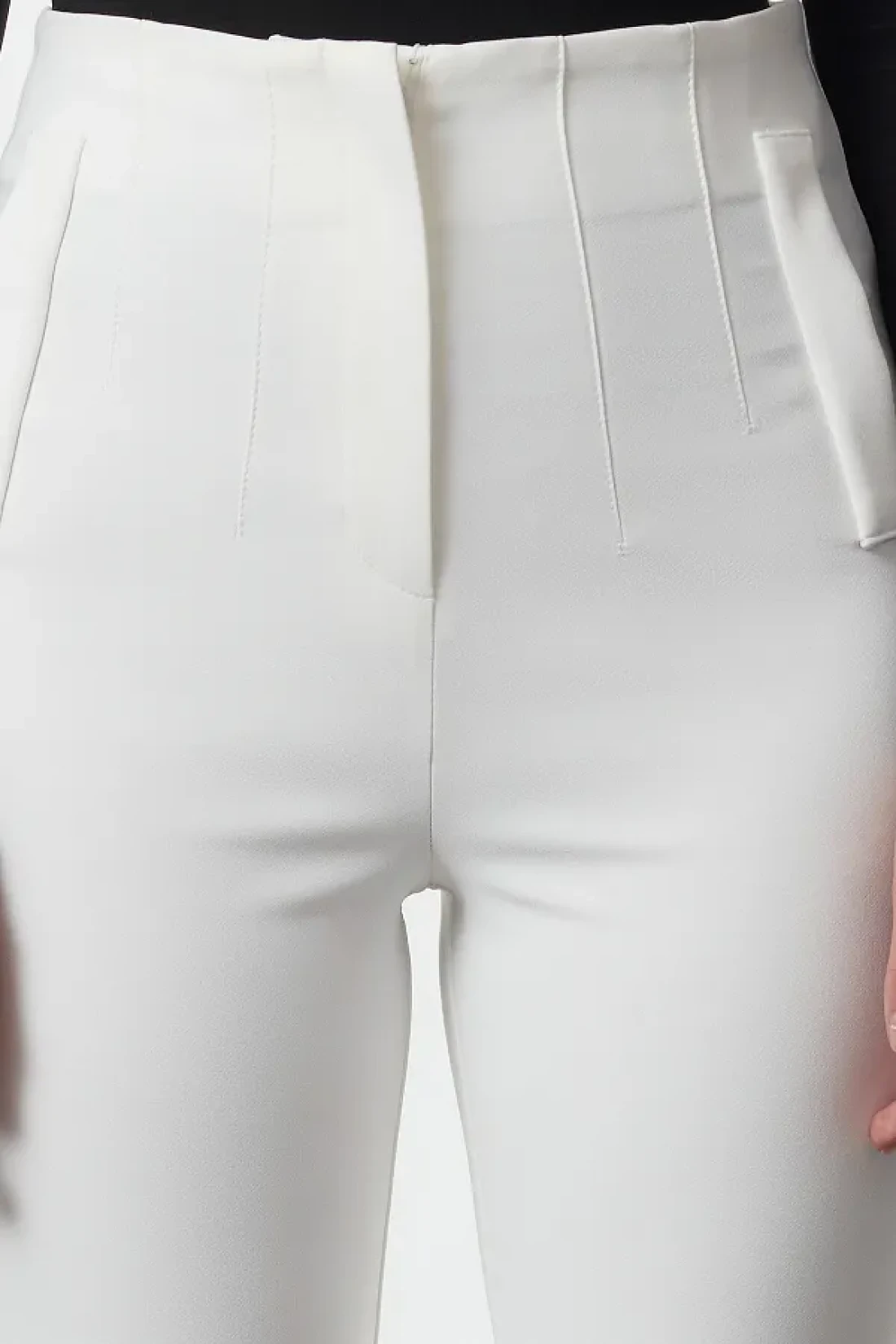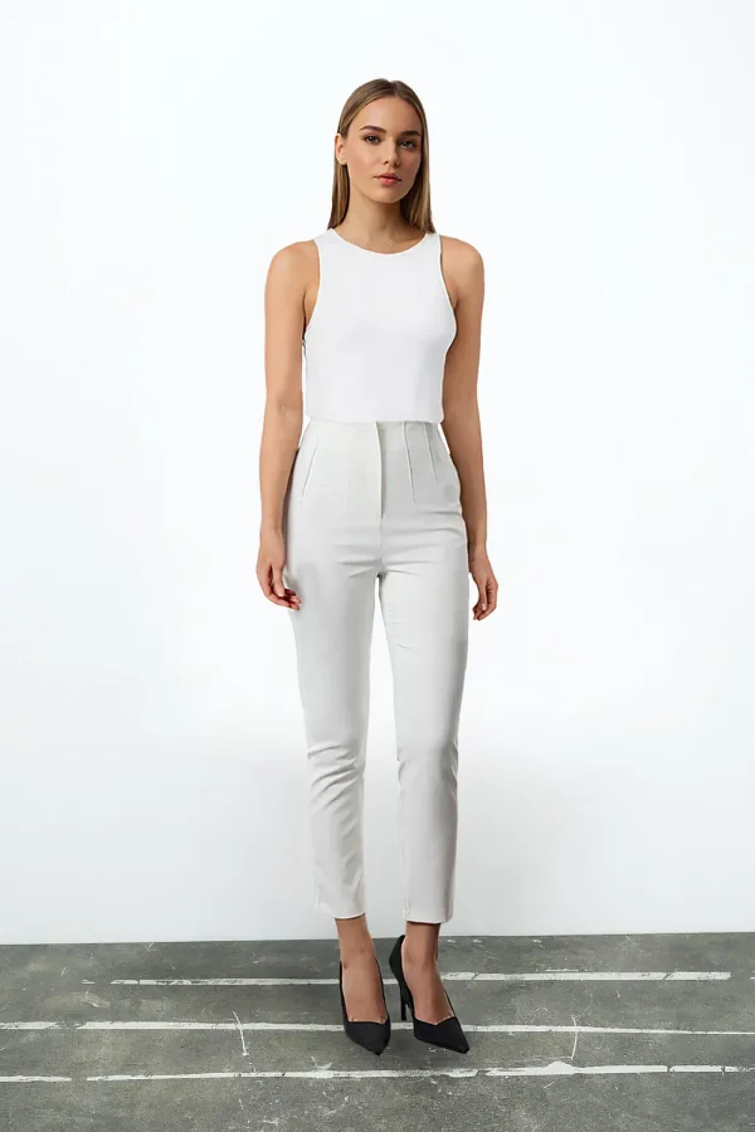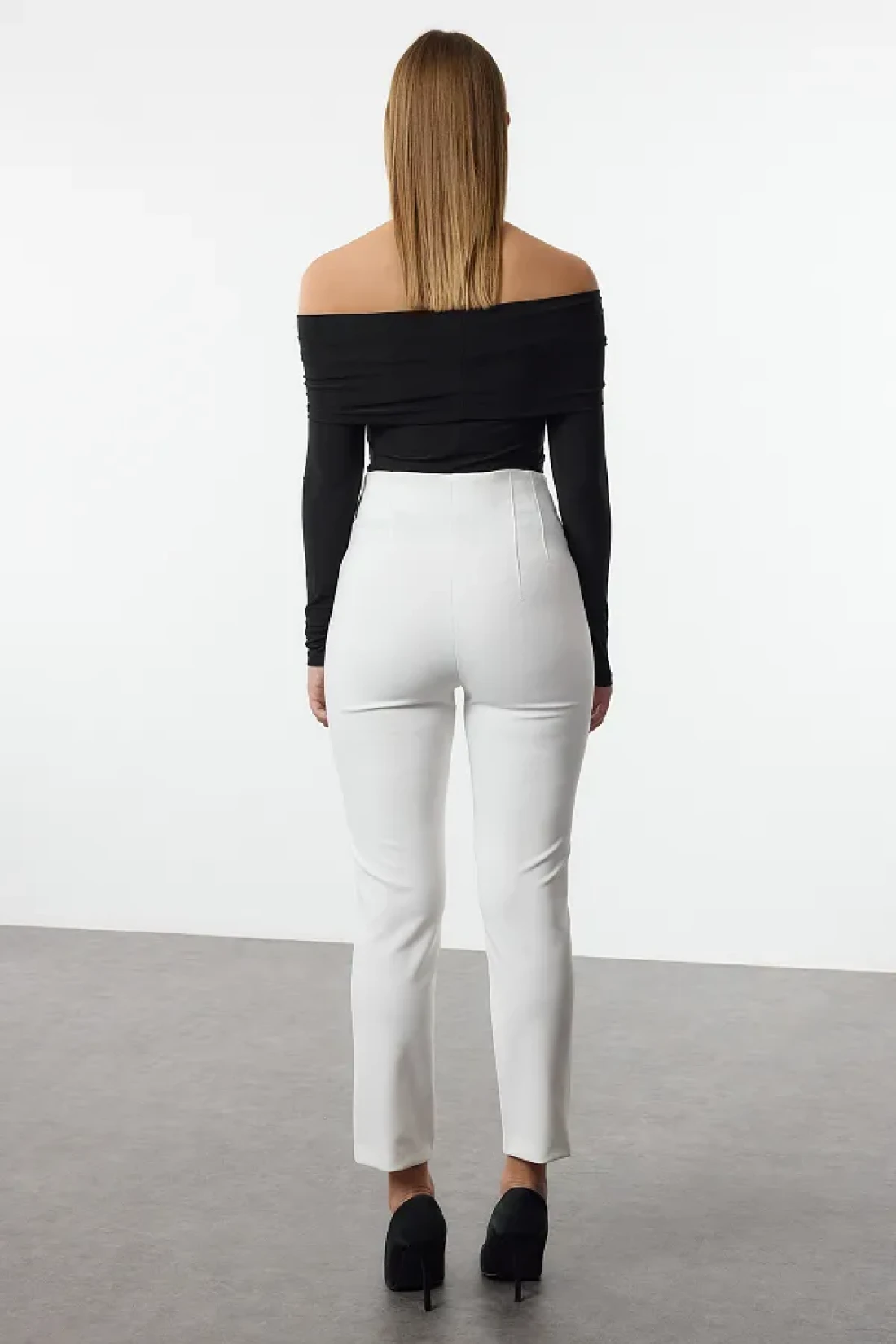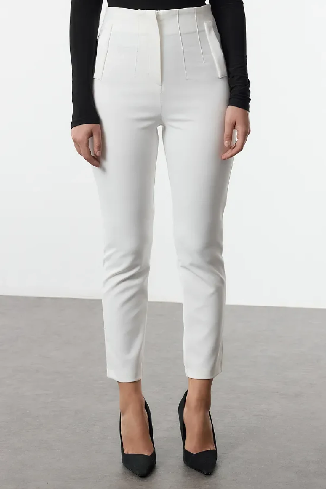 Collection White Cigarette Mold Collet High Waist Ankle Length Woven Fabric Pants Twoss20Pl0515