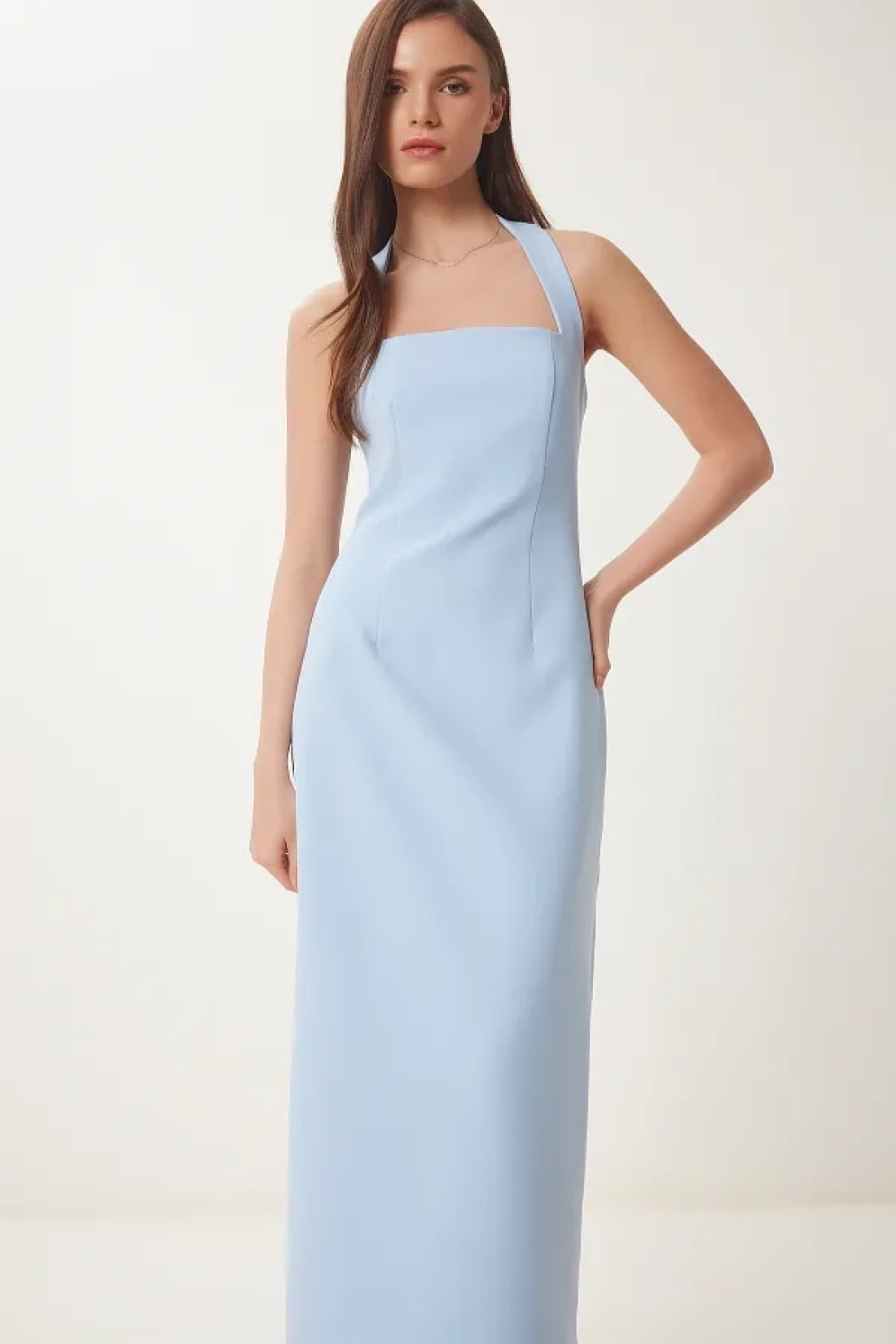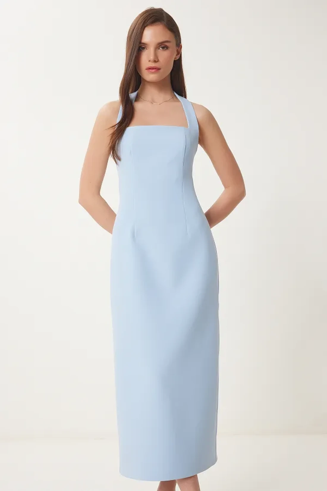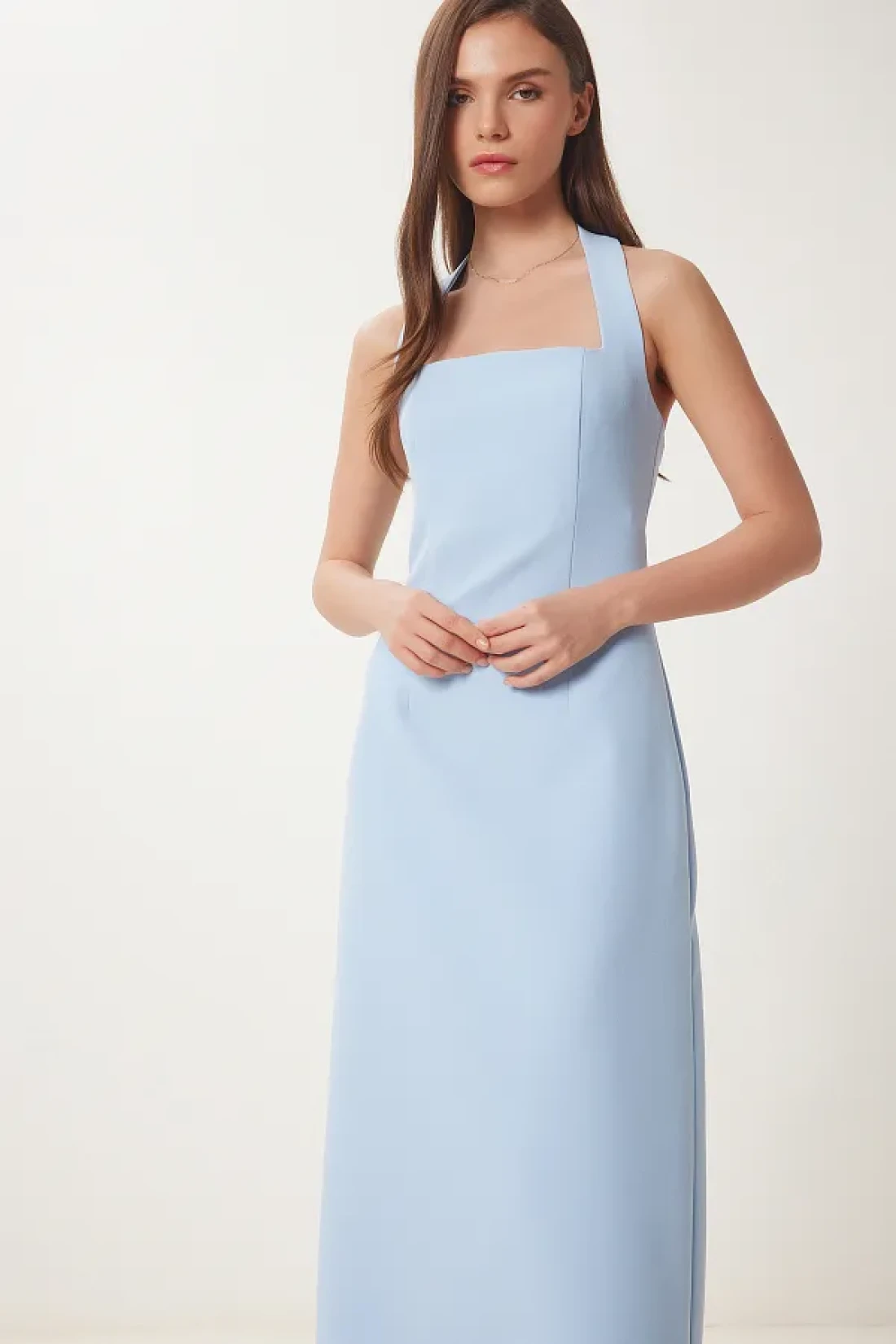 Lovelyİstanbul Thick Strap Midi Woven Dress Sky Blue Lfk0005