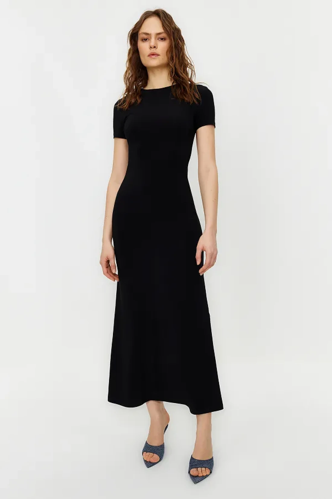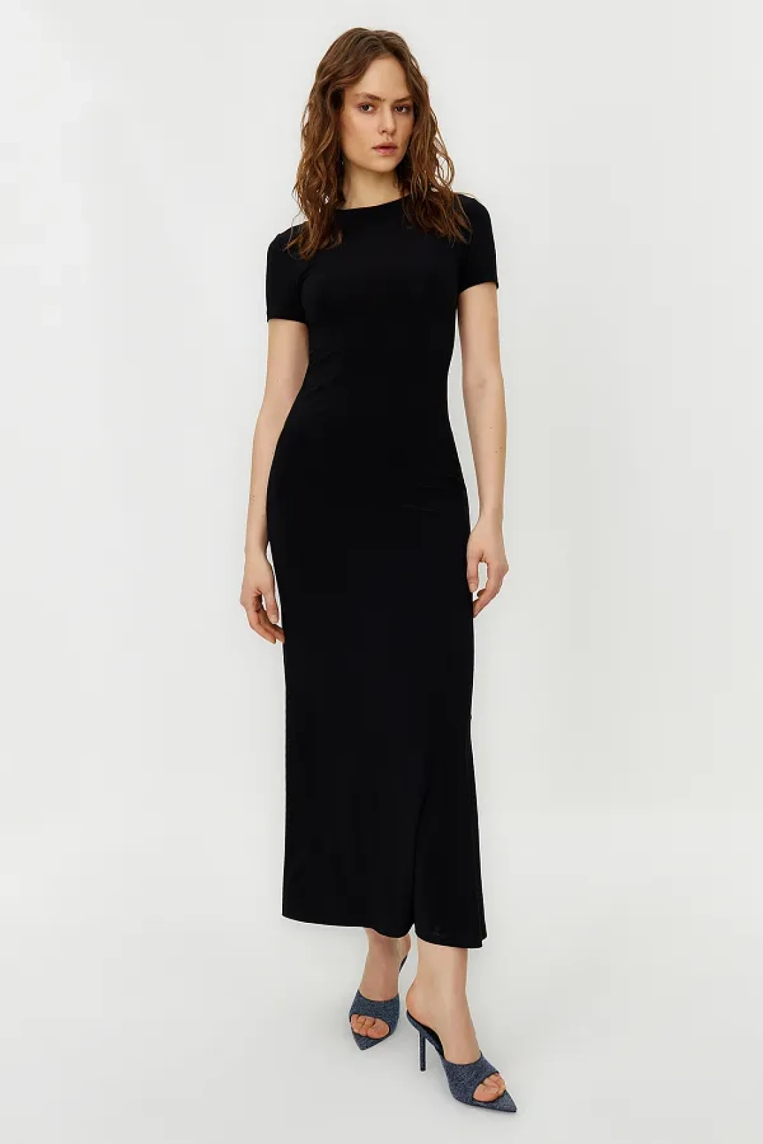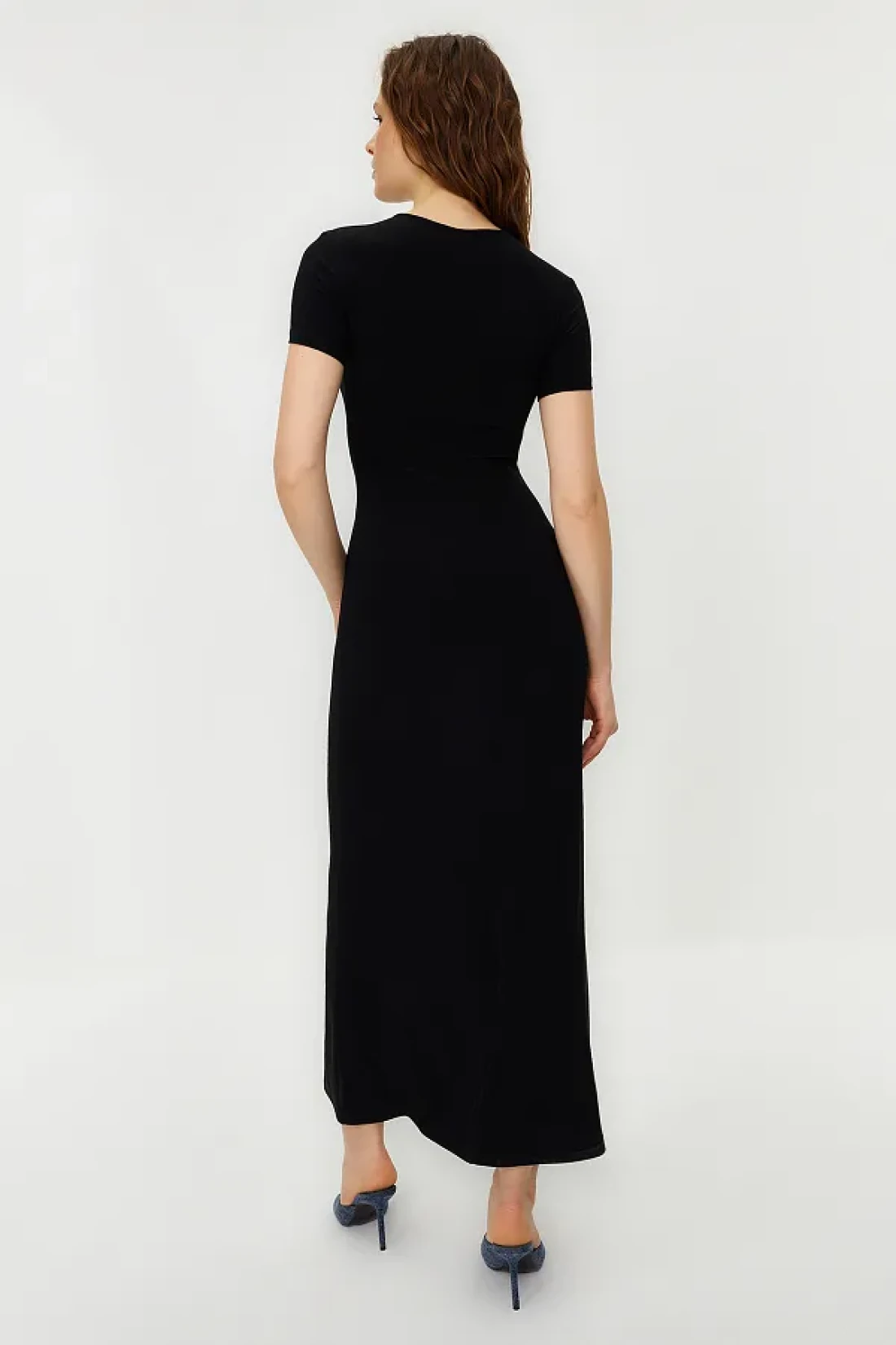 Collection Black Short Sleeve Bodycone/Fitted Crew Neck Flexible Knitted Maxi Pencil Dress TWOSS24EL00097