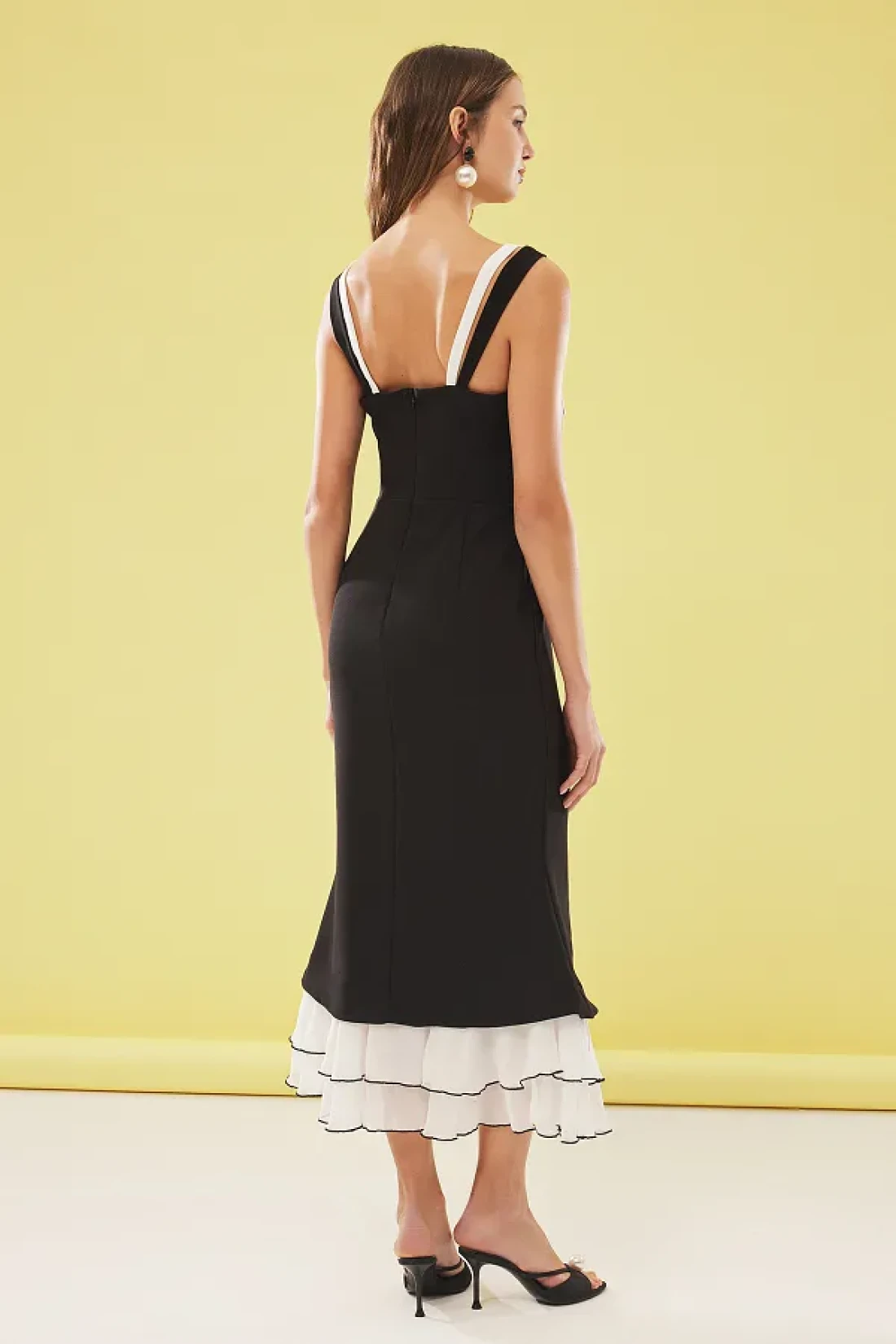 Collection Black-White Bowknot Woven Evening Dress with Hemline Detail, Wedding/Wedding Chic Tprss25El00022