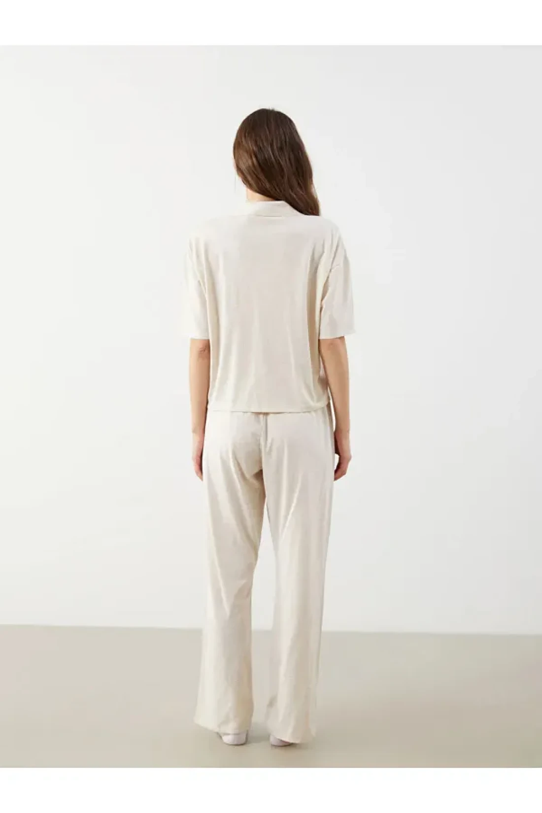 Lcw Young Beige Shirt Collar Bear Teddy Printed Women's Pajamas Set