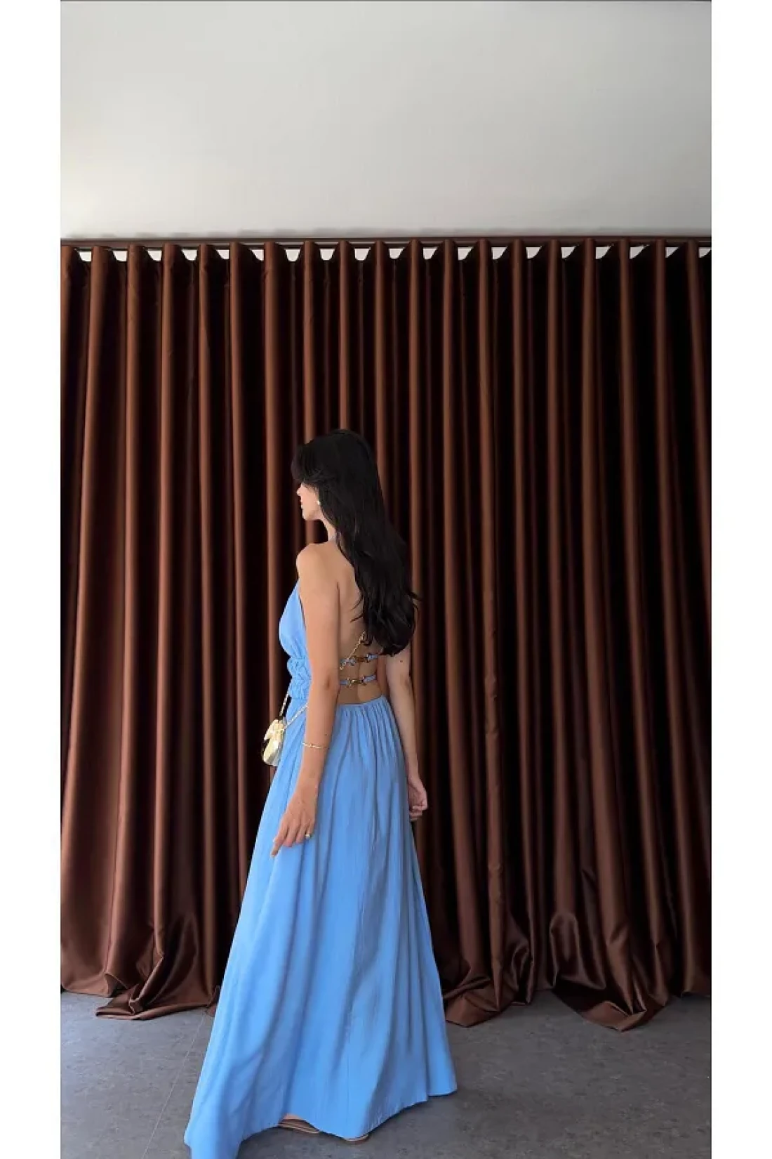 HAZELANNA Back Gold Detailed Blue Dress