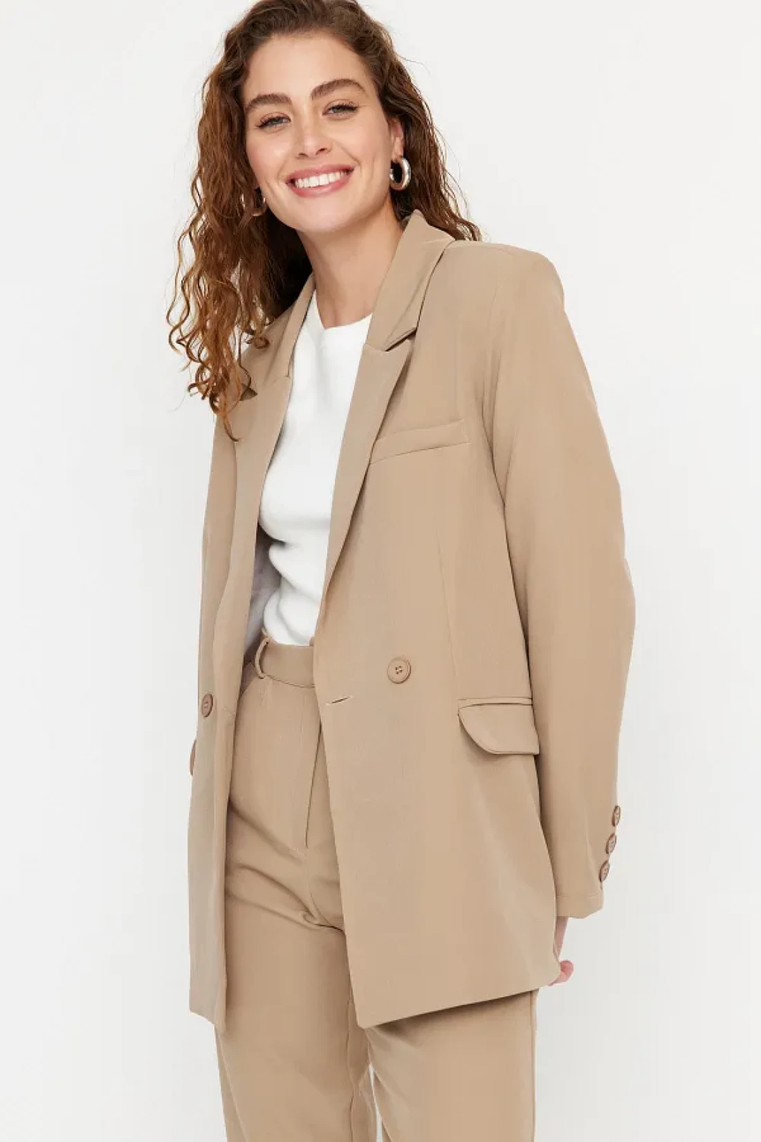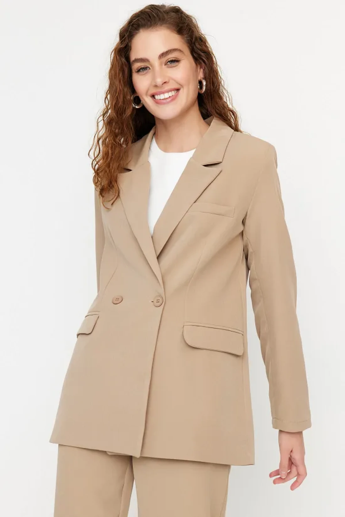 Modest Mink Blazer Jacket-Pants Woven Top and Bottom Set TCTAW23US00132