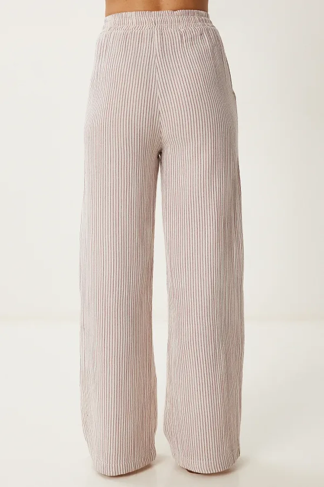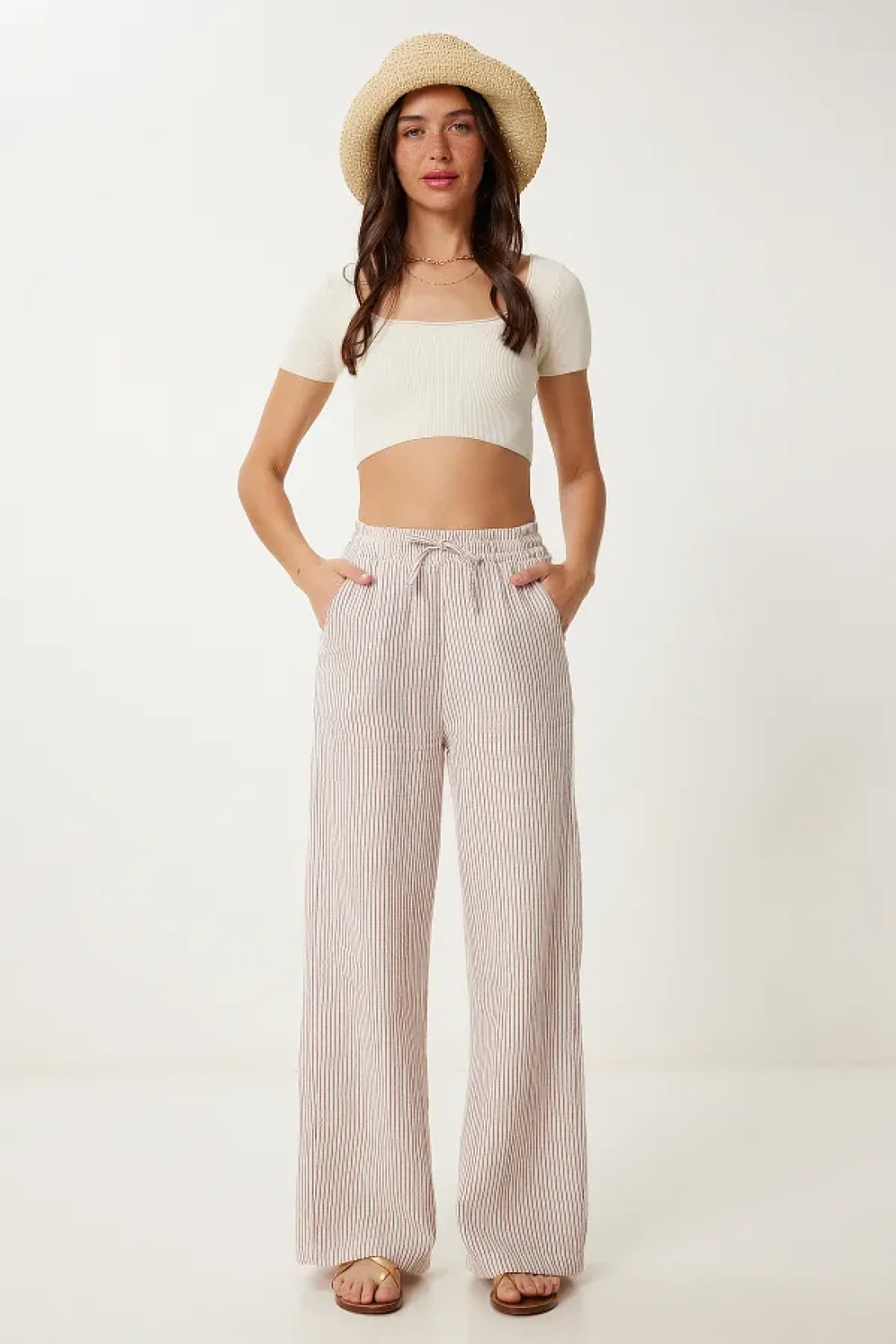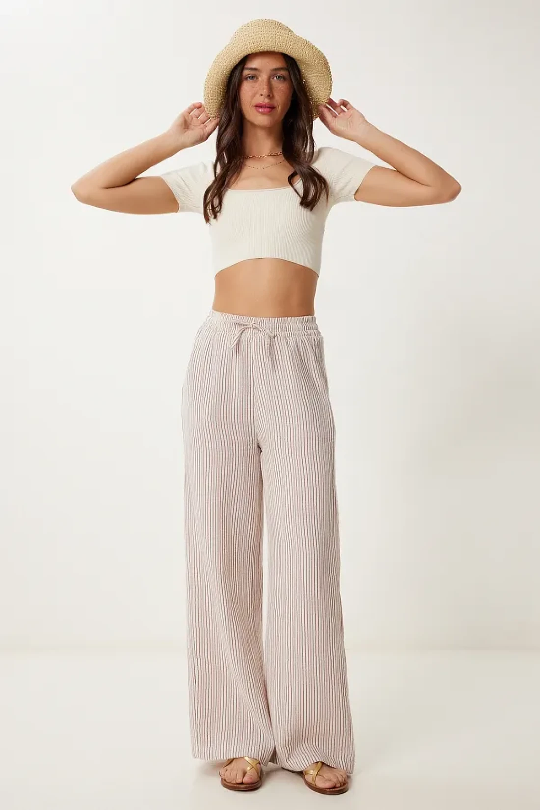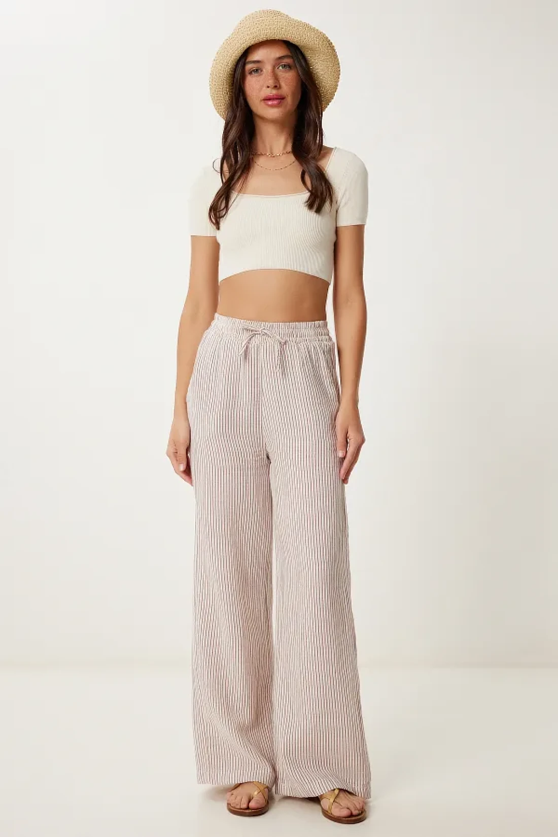 Lovelyİstanbul Striped Muslin Palazzo Trousers Bordo Bone Lsa0010