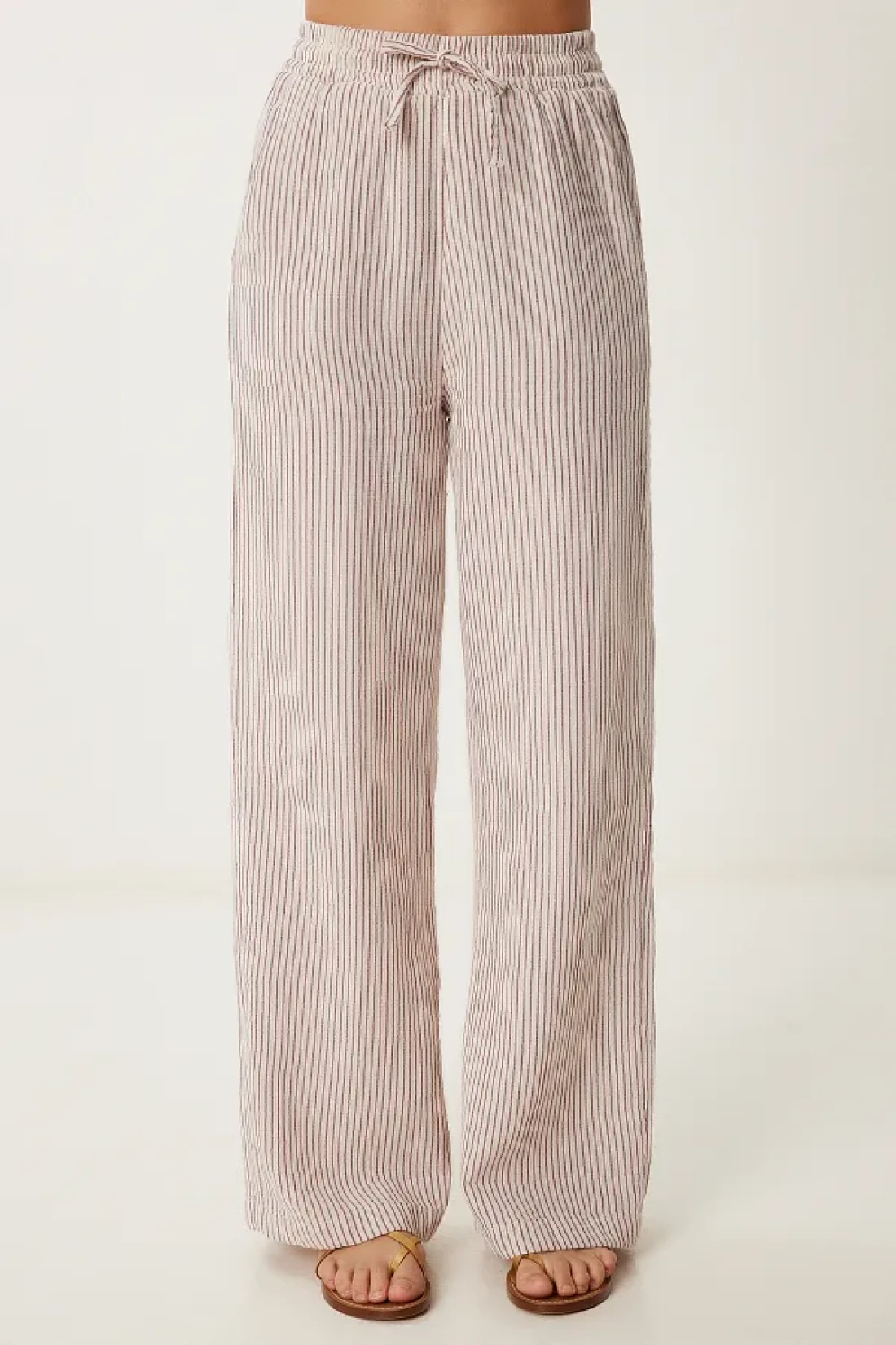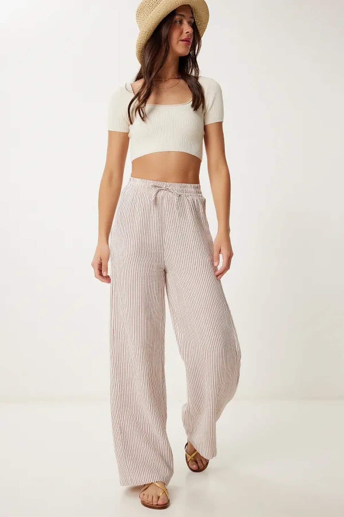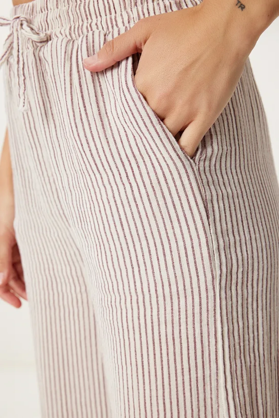 Elastic waist, side pocketed, comfortable, striped muslin palazzo pants content: 100% cotton product length: 108 cm 30 ° Machine washable.