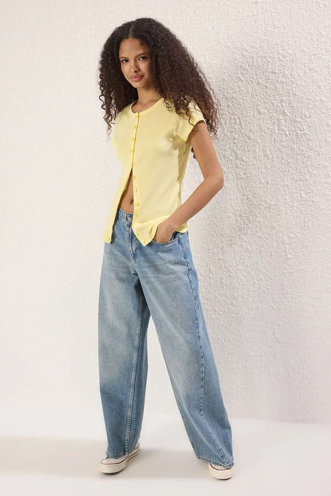 Collection Light Yellow Buttoned Fitted/Close-Fitting Knitted Blouse Twoss25Bz00281