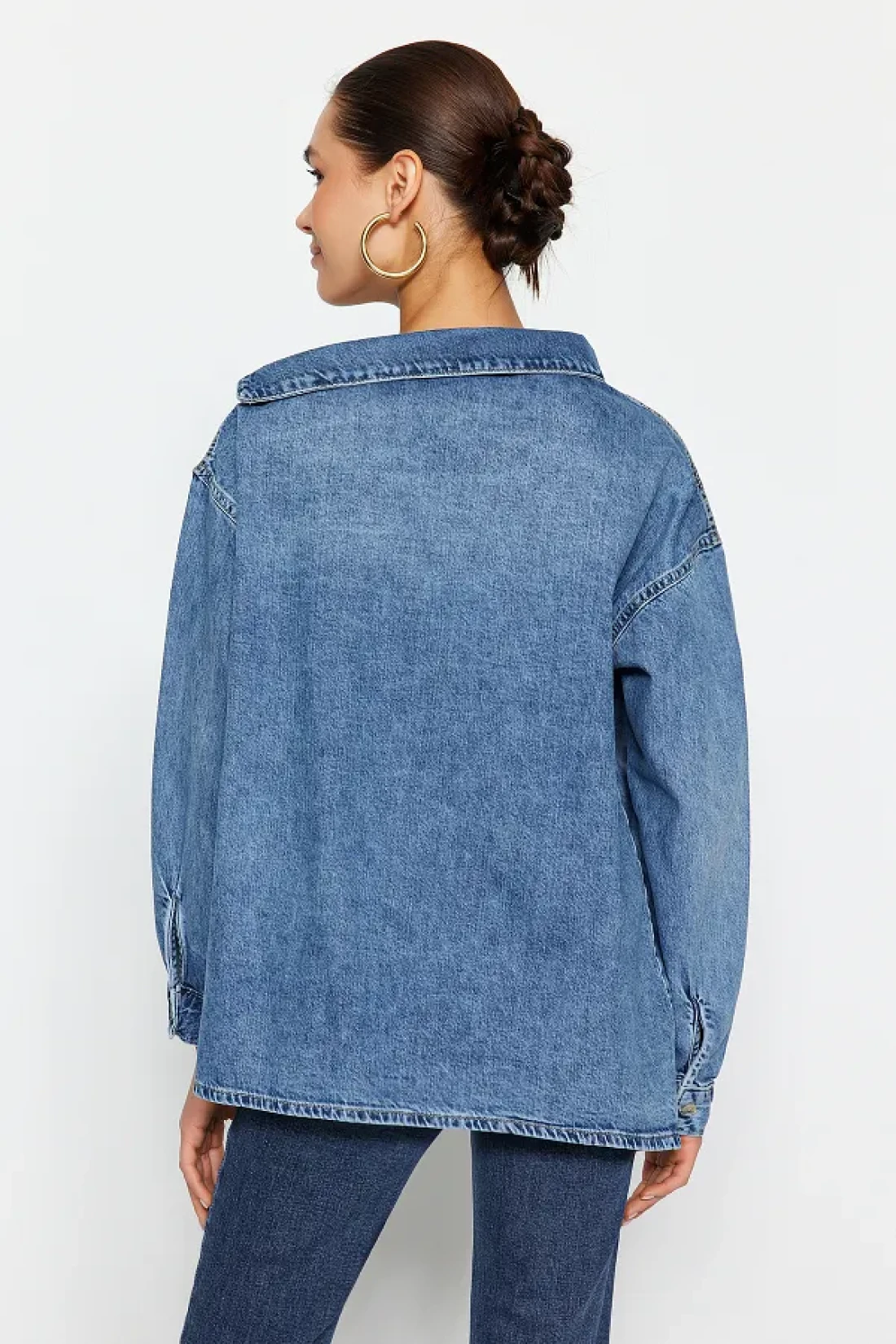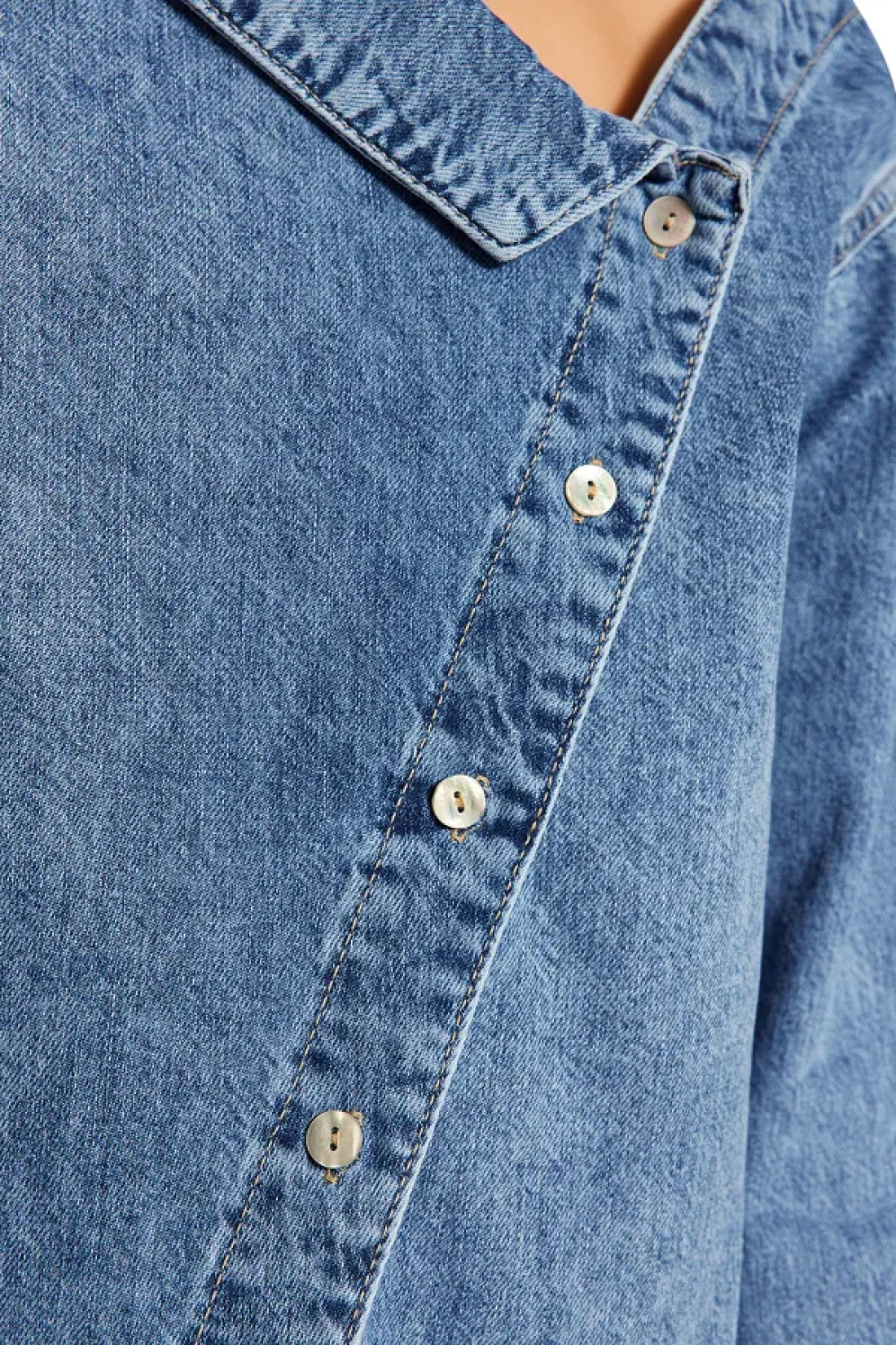 Collection Blue Asymmetrical Neckline Detail Oversize Denim Shirt Twoss24Go00034