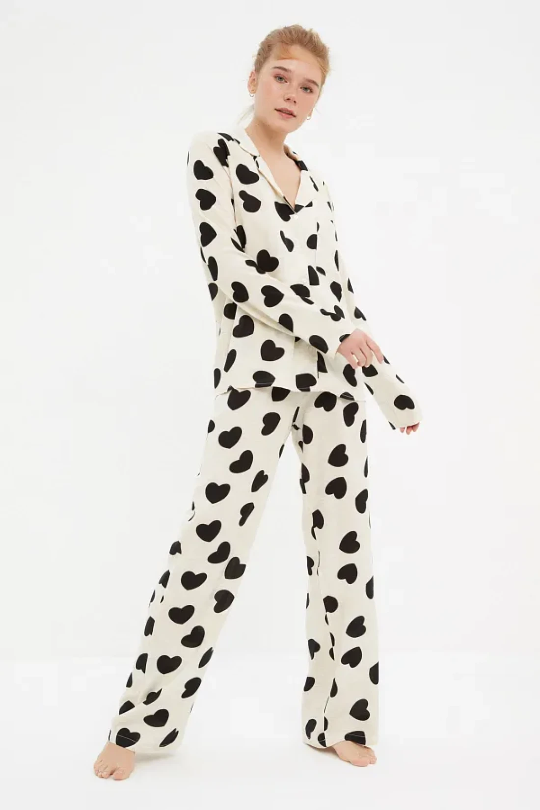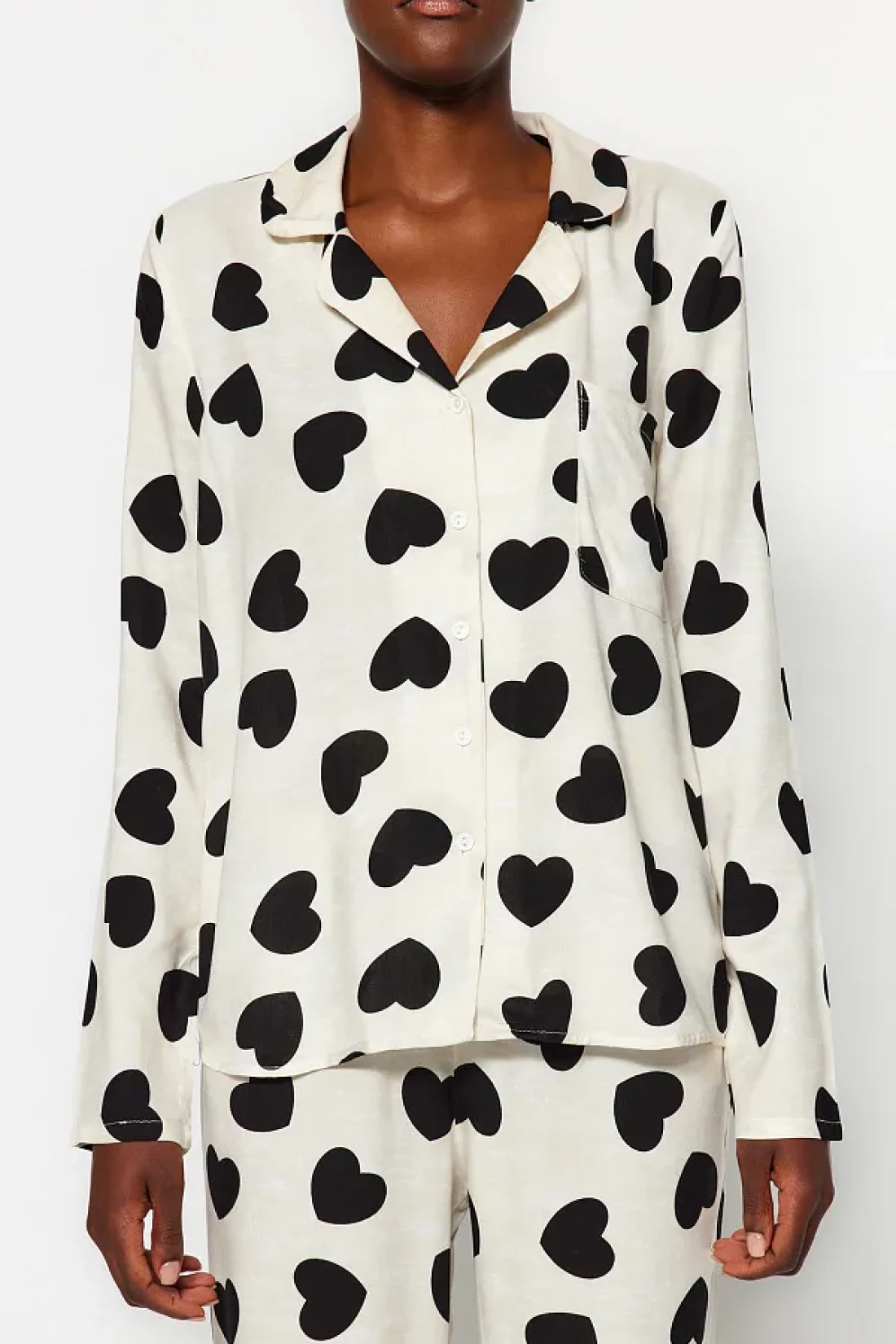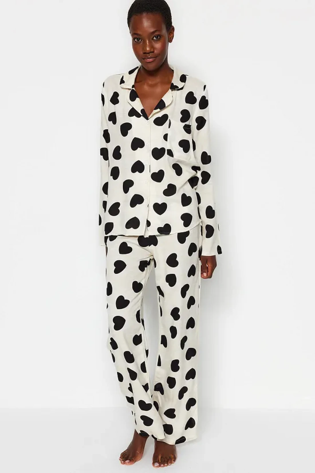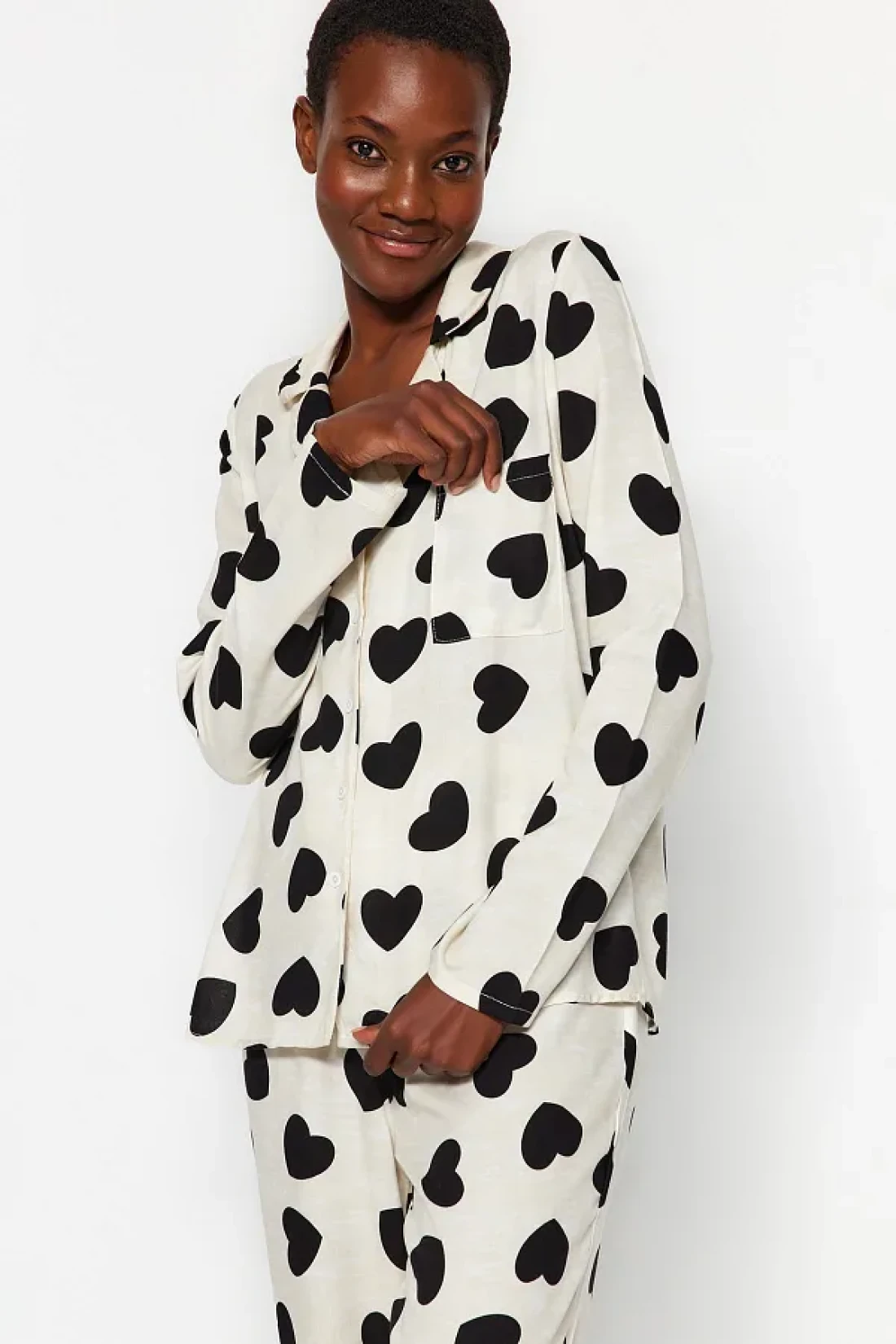 Collection Ecru Heart Viscose Woven Pajamas Set Thmaw21Pt0936