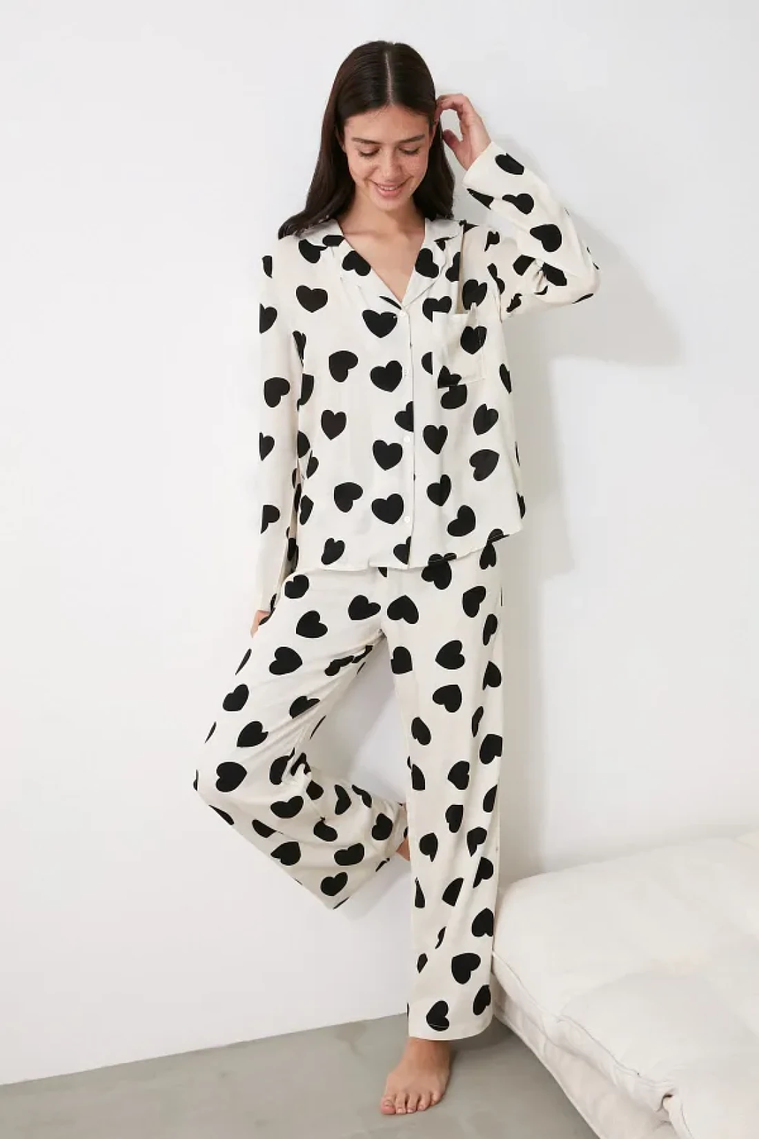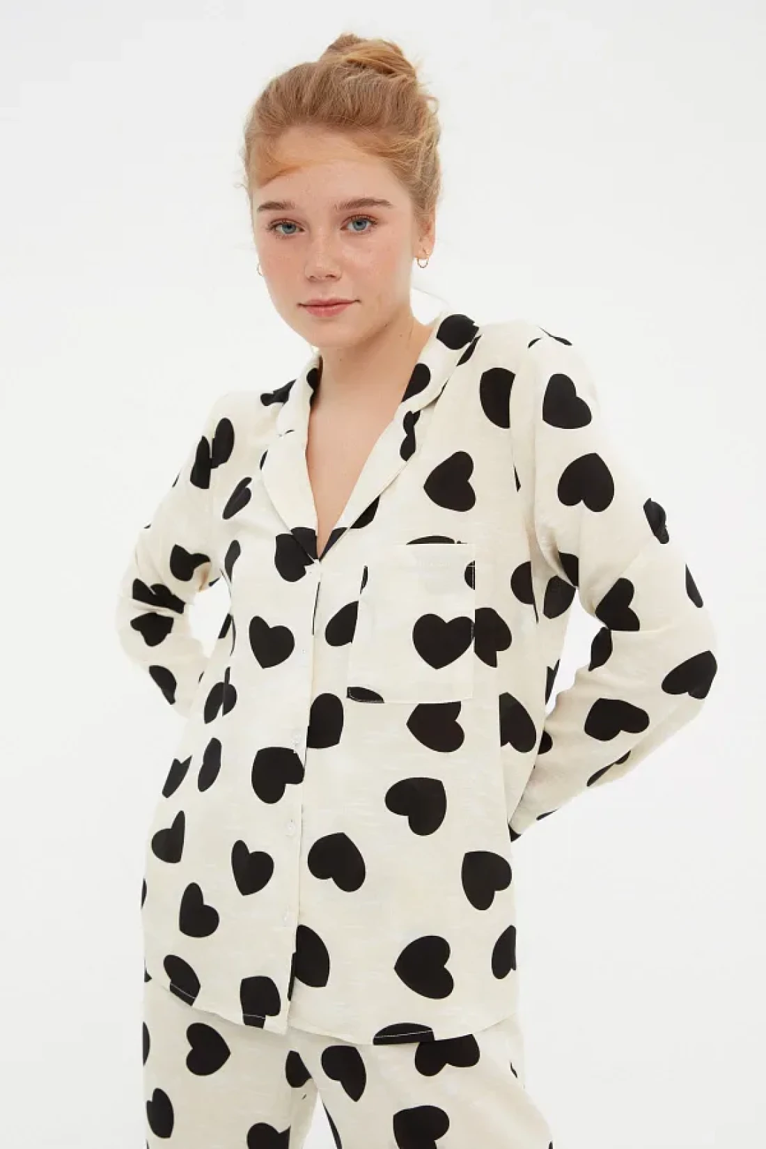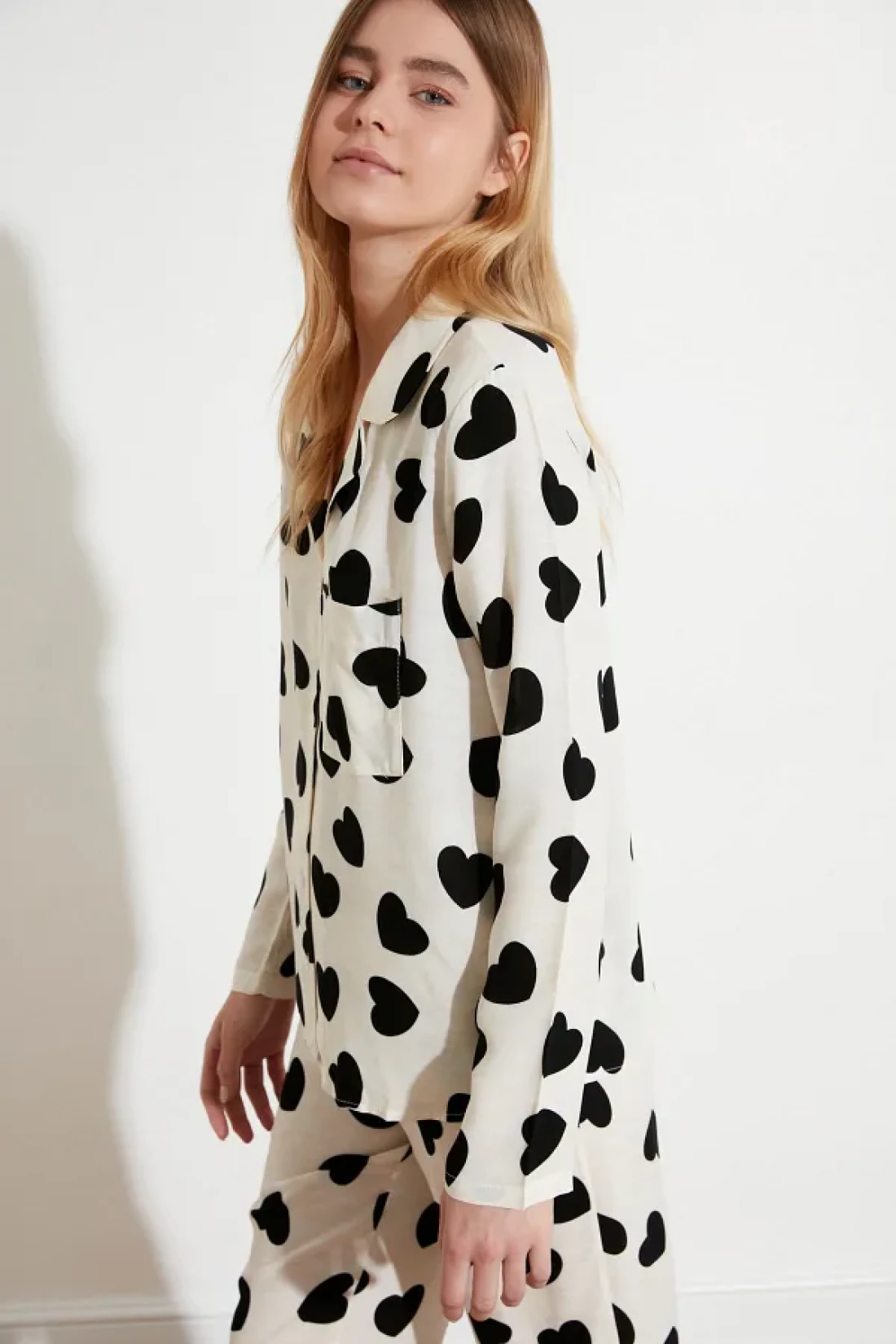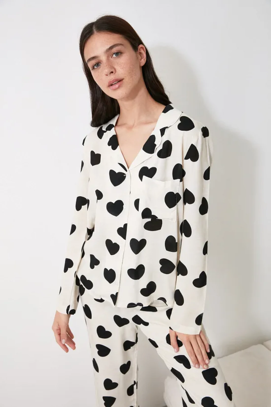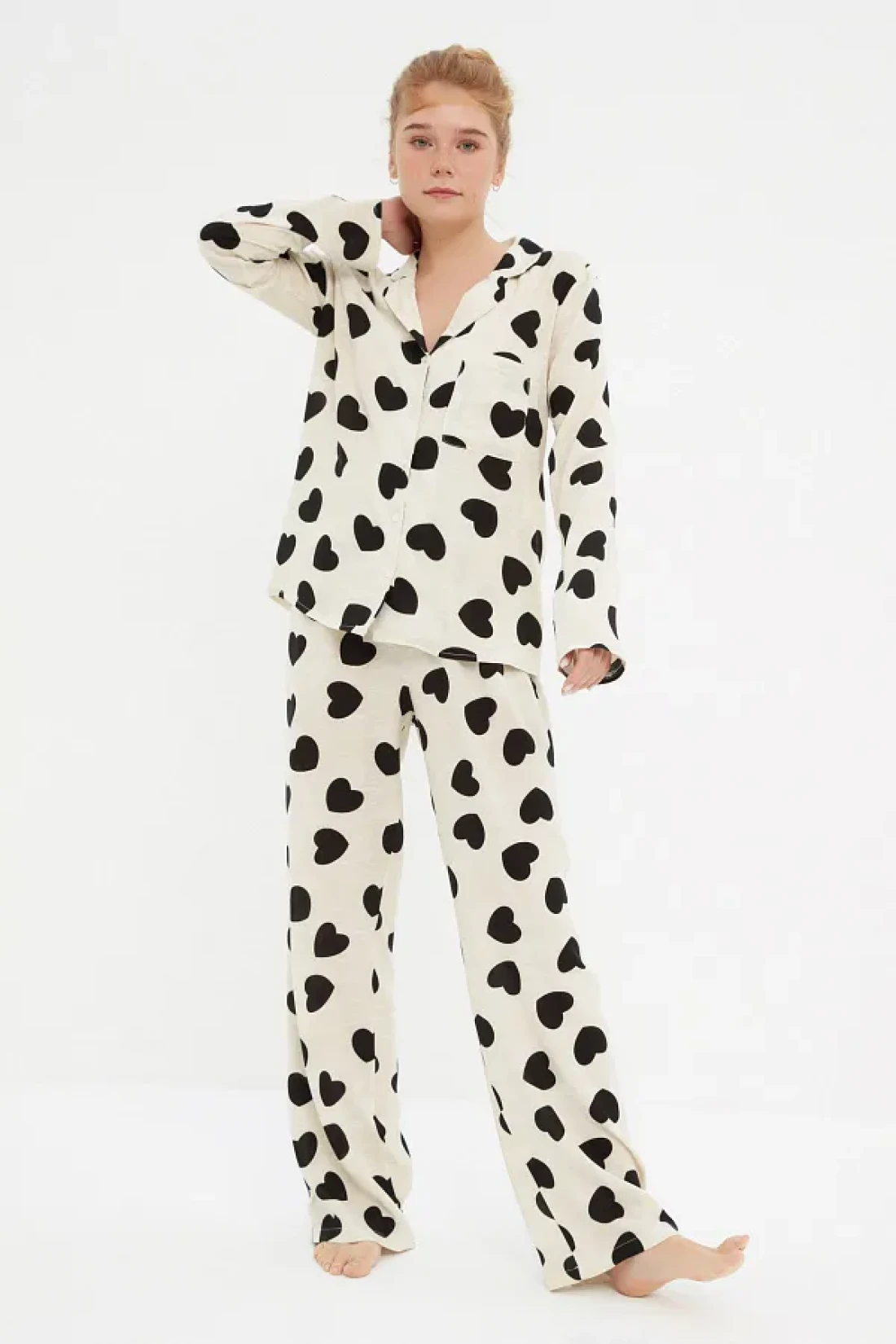 Collection Ecru Heart Viscose Woven Pajamas Set Thmaw21Pt0936