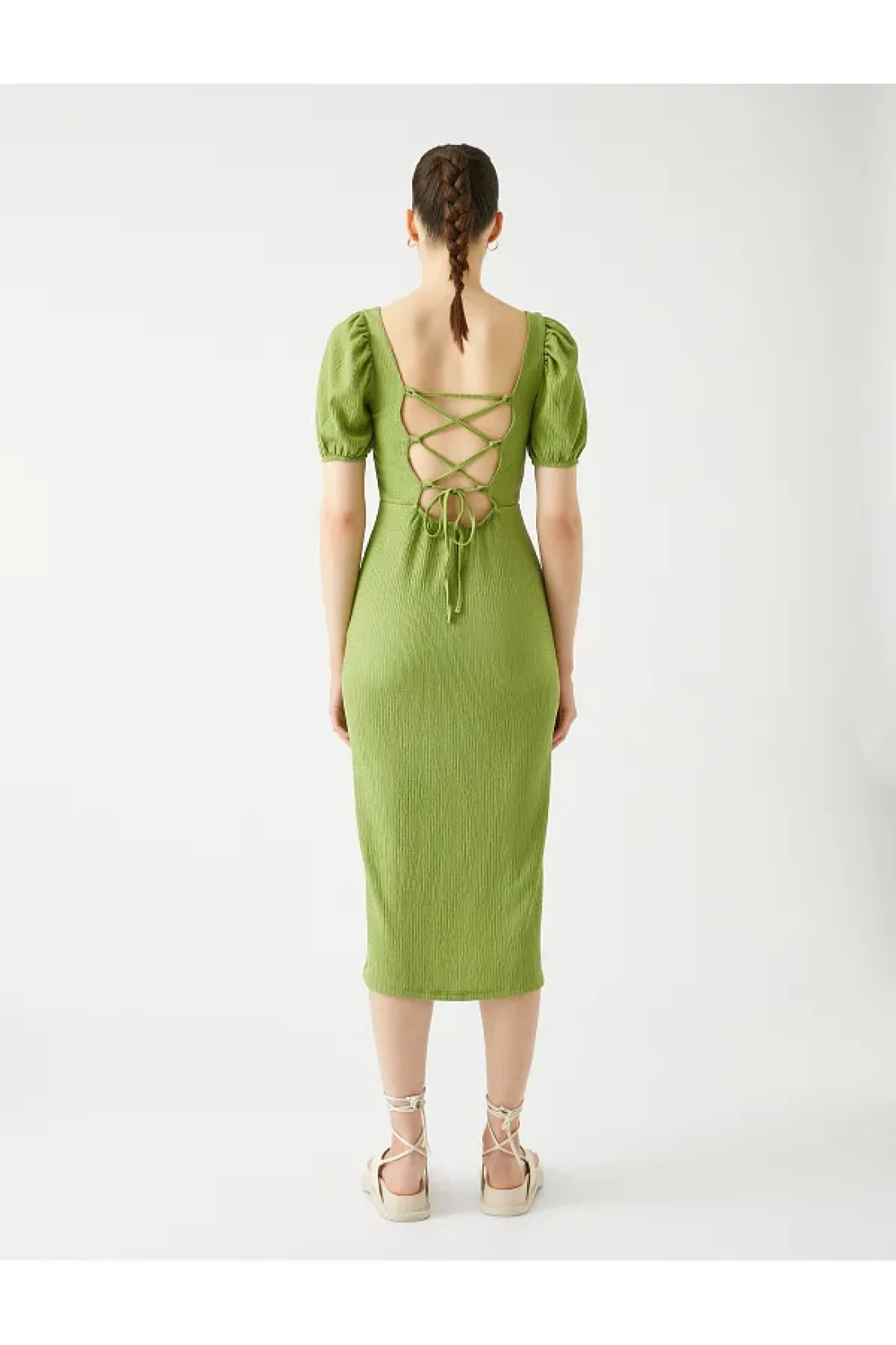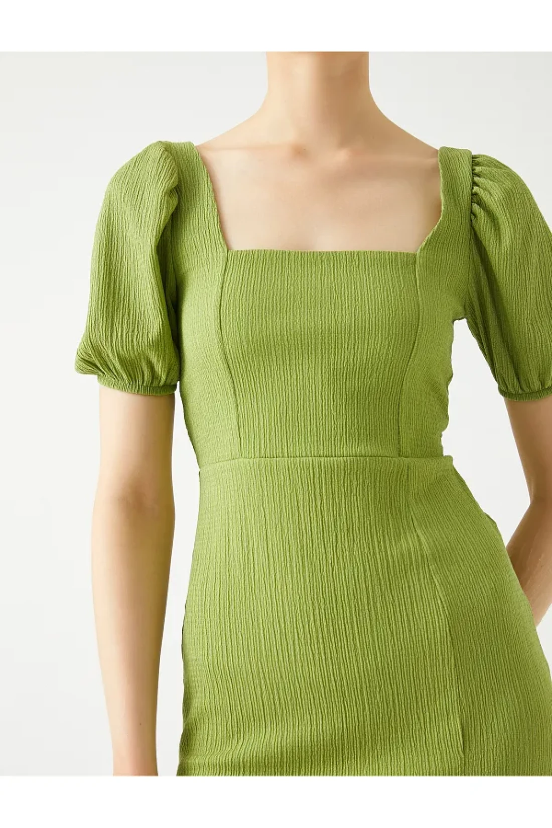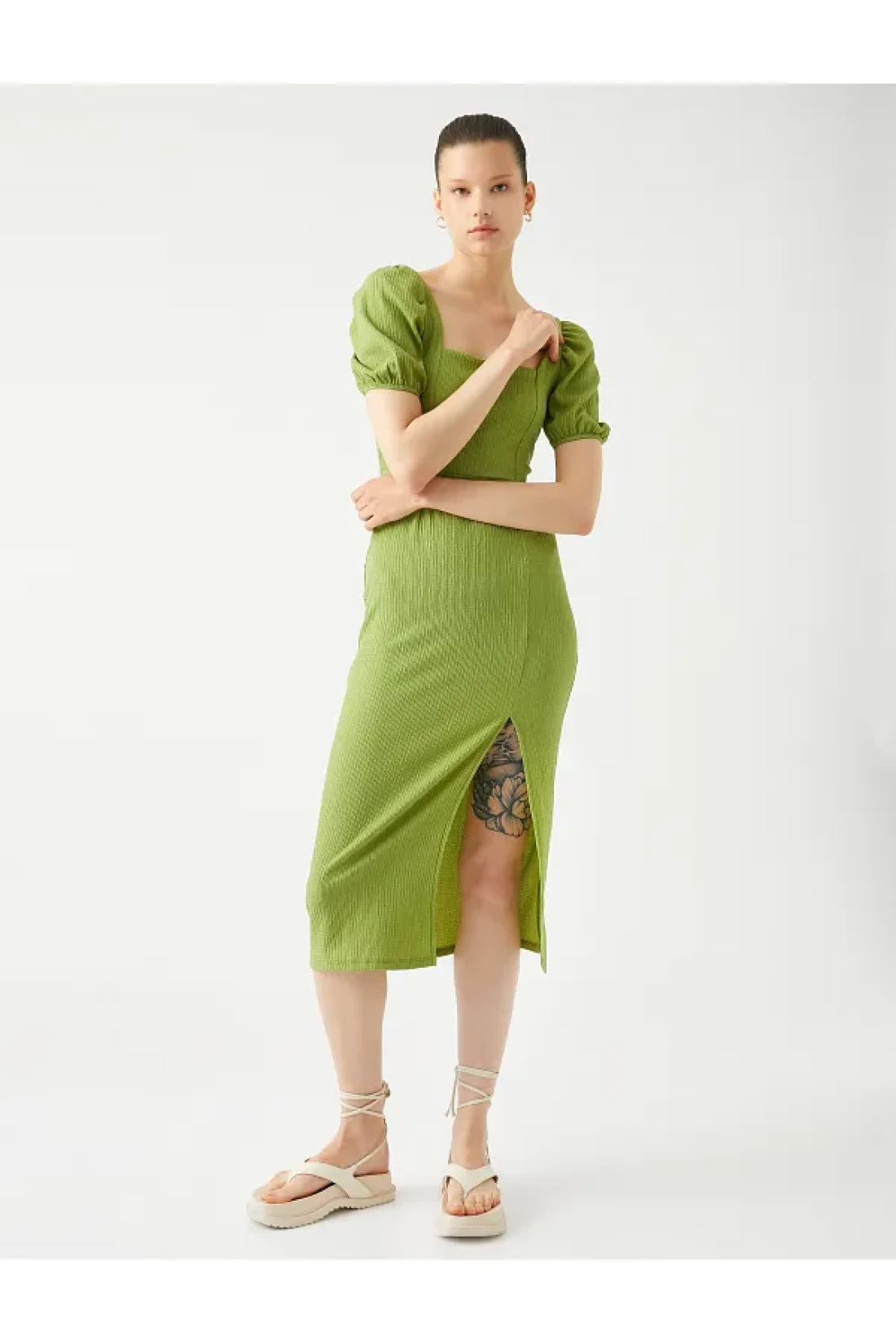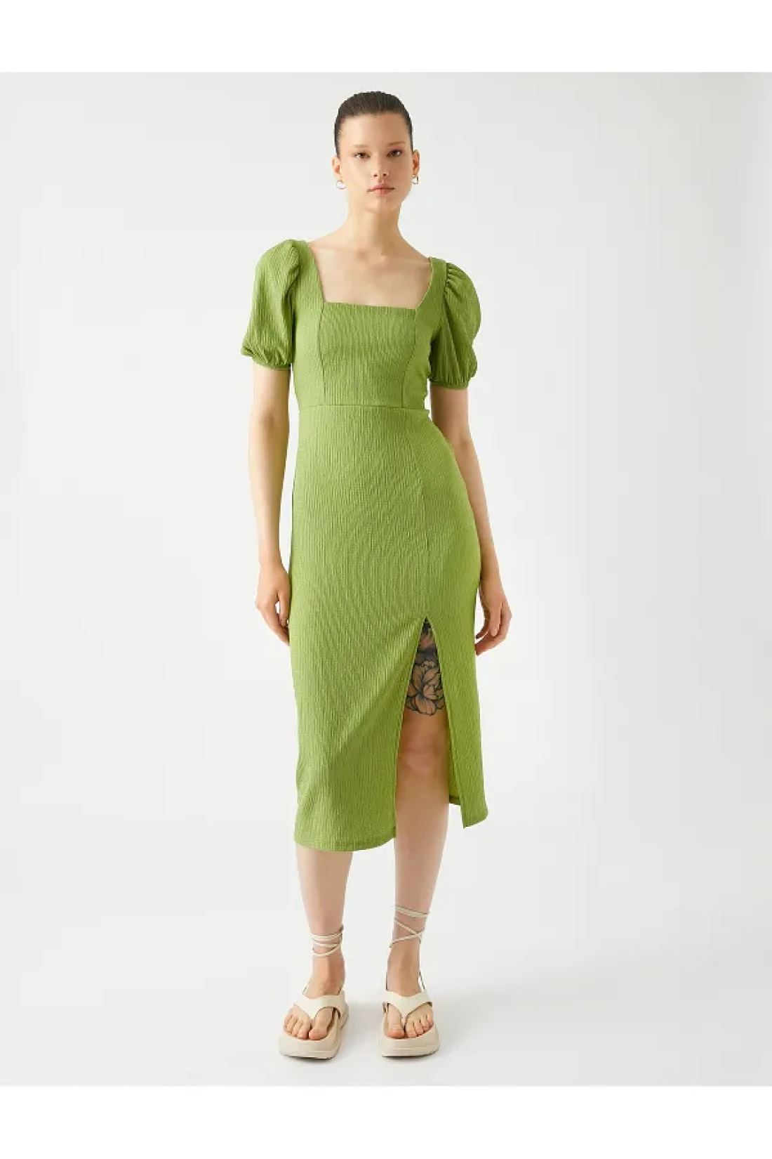 Koton Midi Dress Balloon Sleeve Slit Square Neck