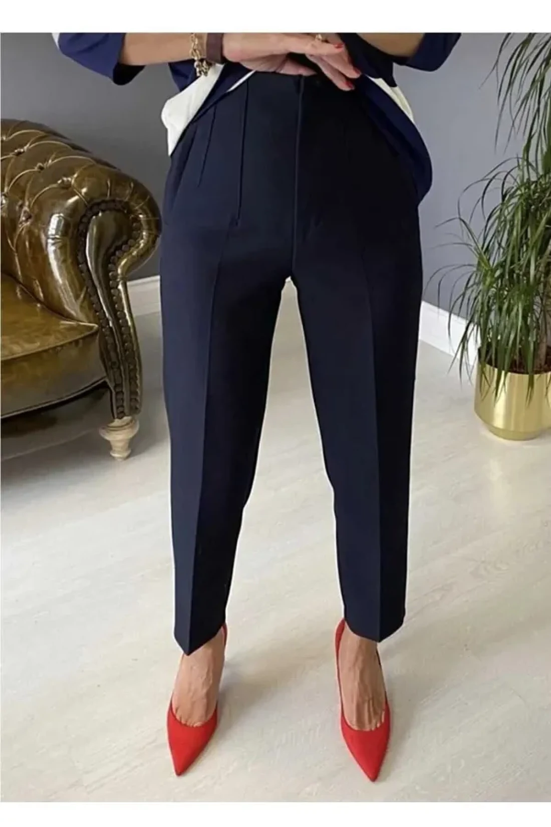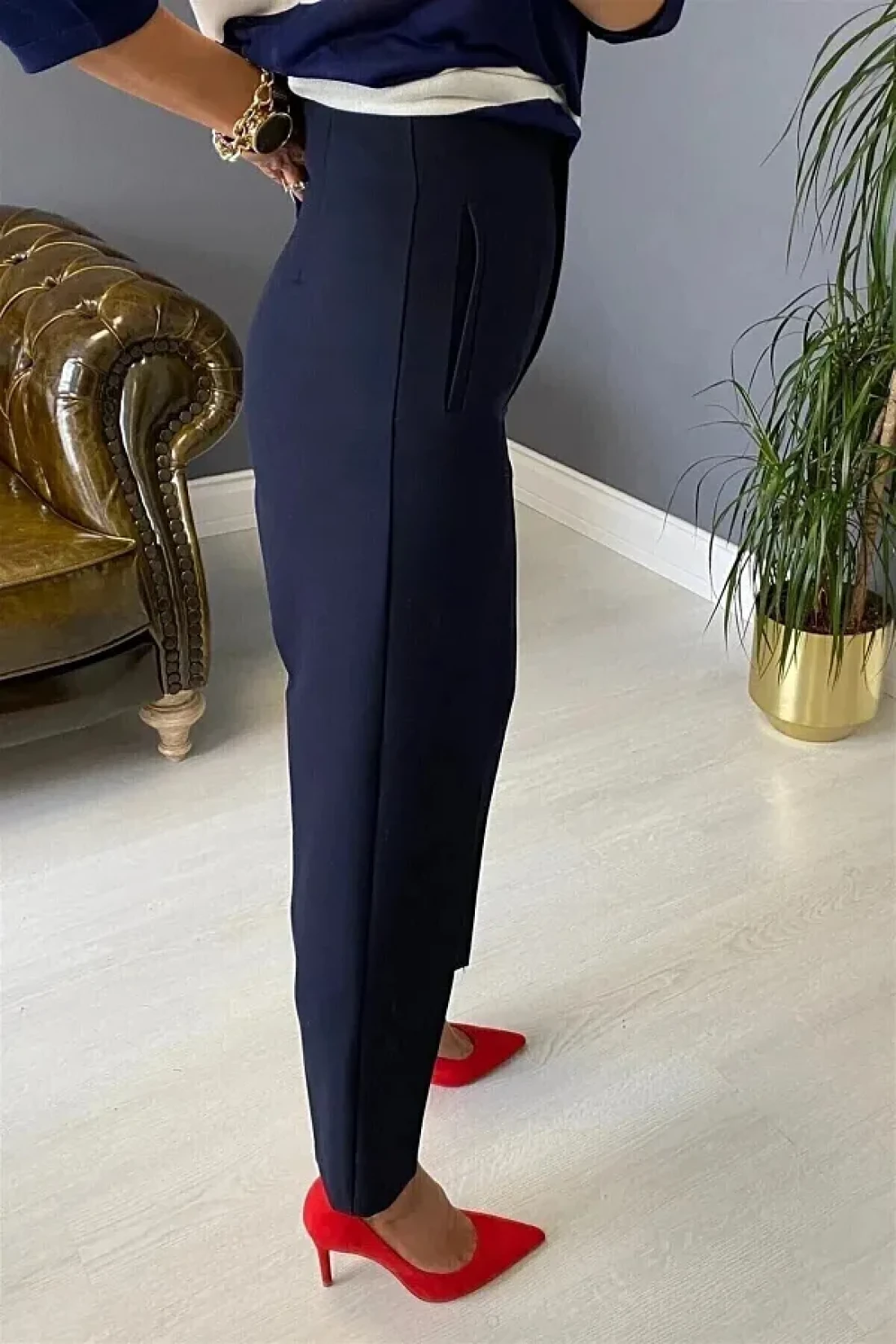 EN MODA STORE CARROT CREW CLASSIC ELEGANT WOMEN'S NAVY BLUE TROUSERS