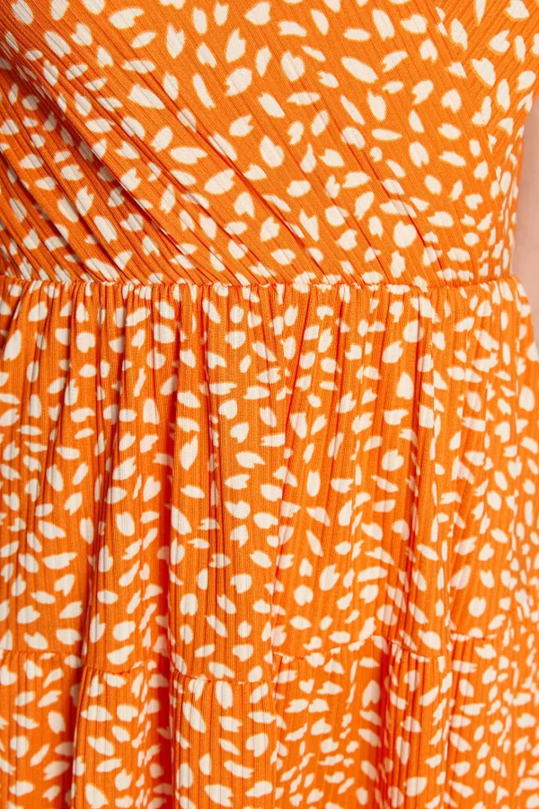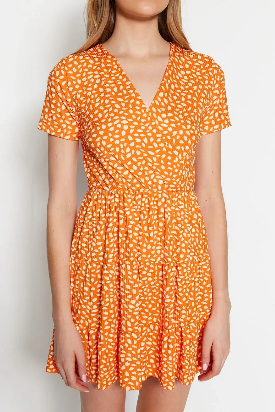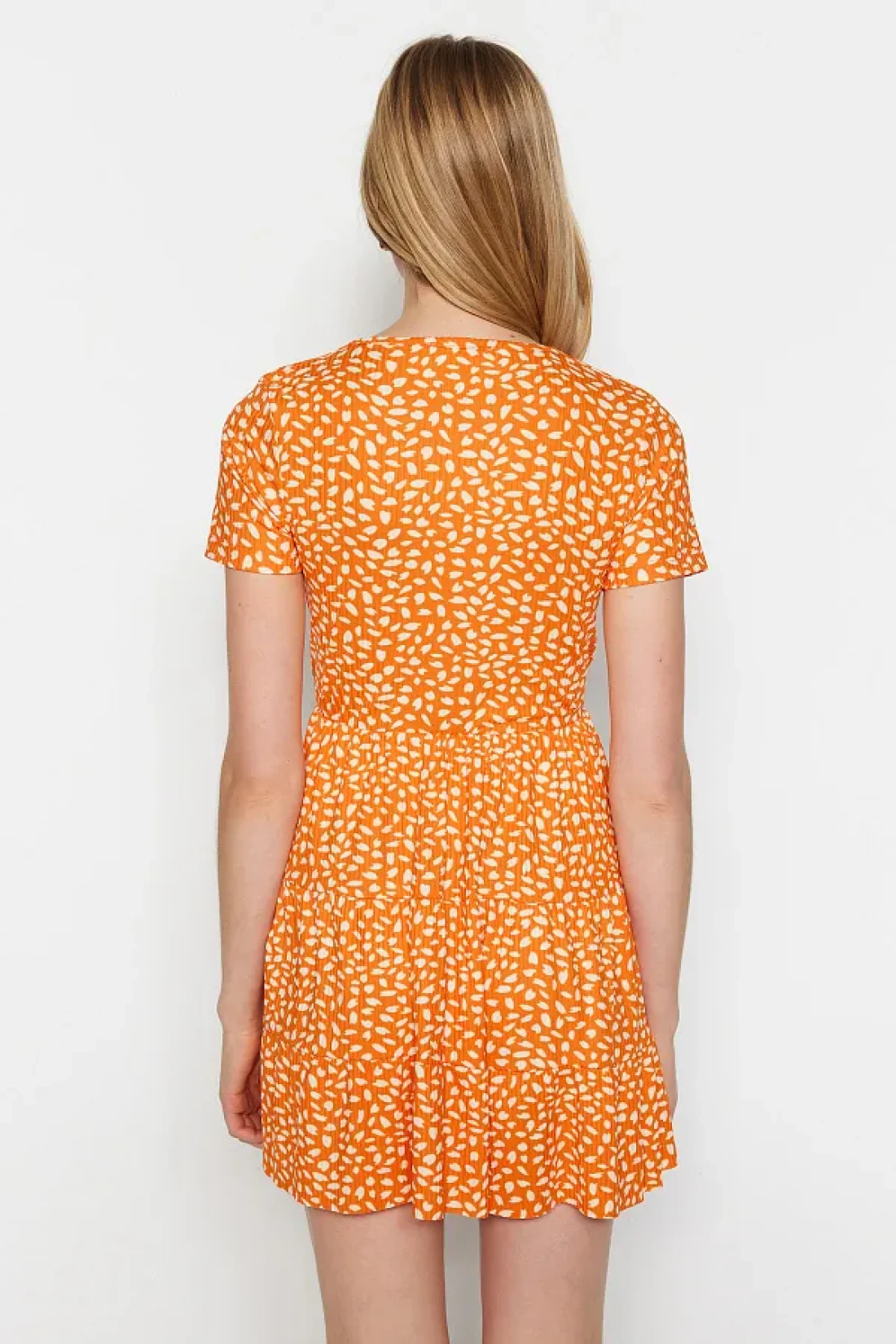 Collection Orange Printed Double Breasted Neck Mini Stretchy Knitted Dress TWOSS21EL0241