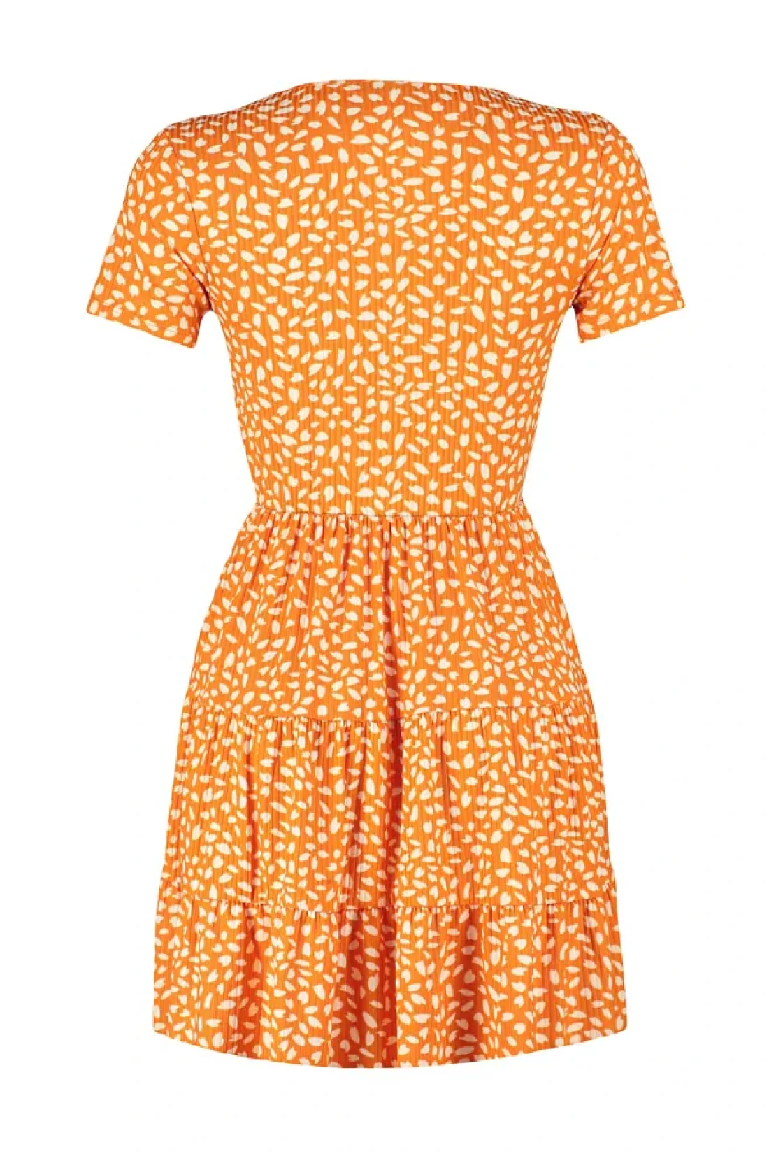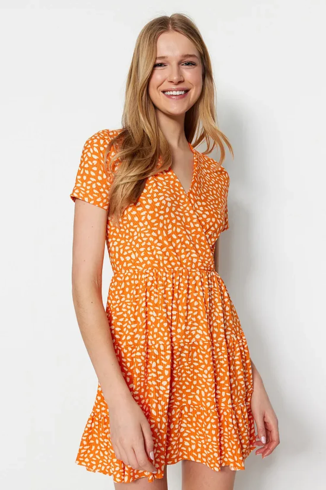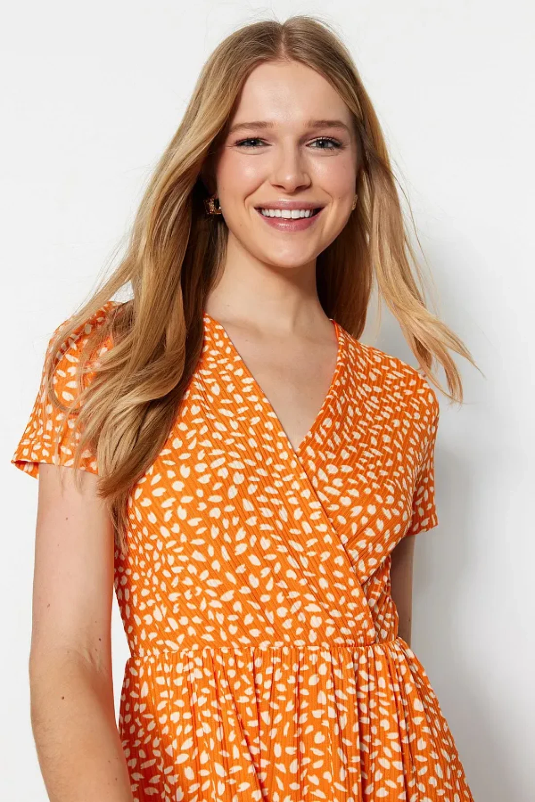Collection Orange Printed Double Breasted Neck Mini Stretchy Knitted Dress TWOSS21EL0241