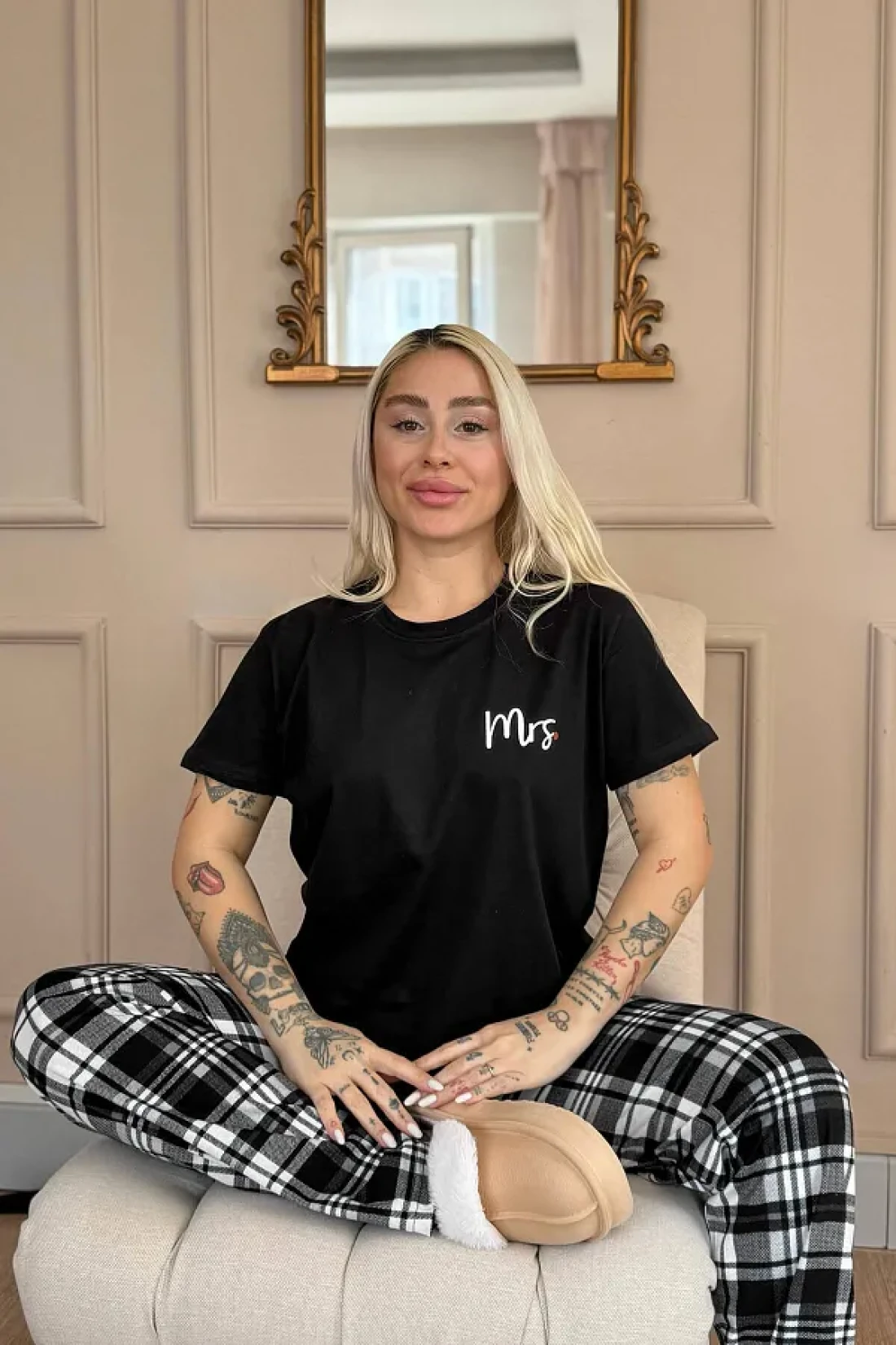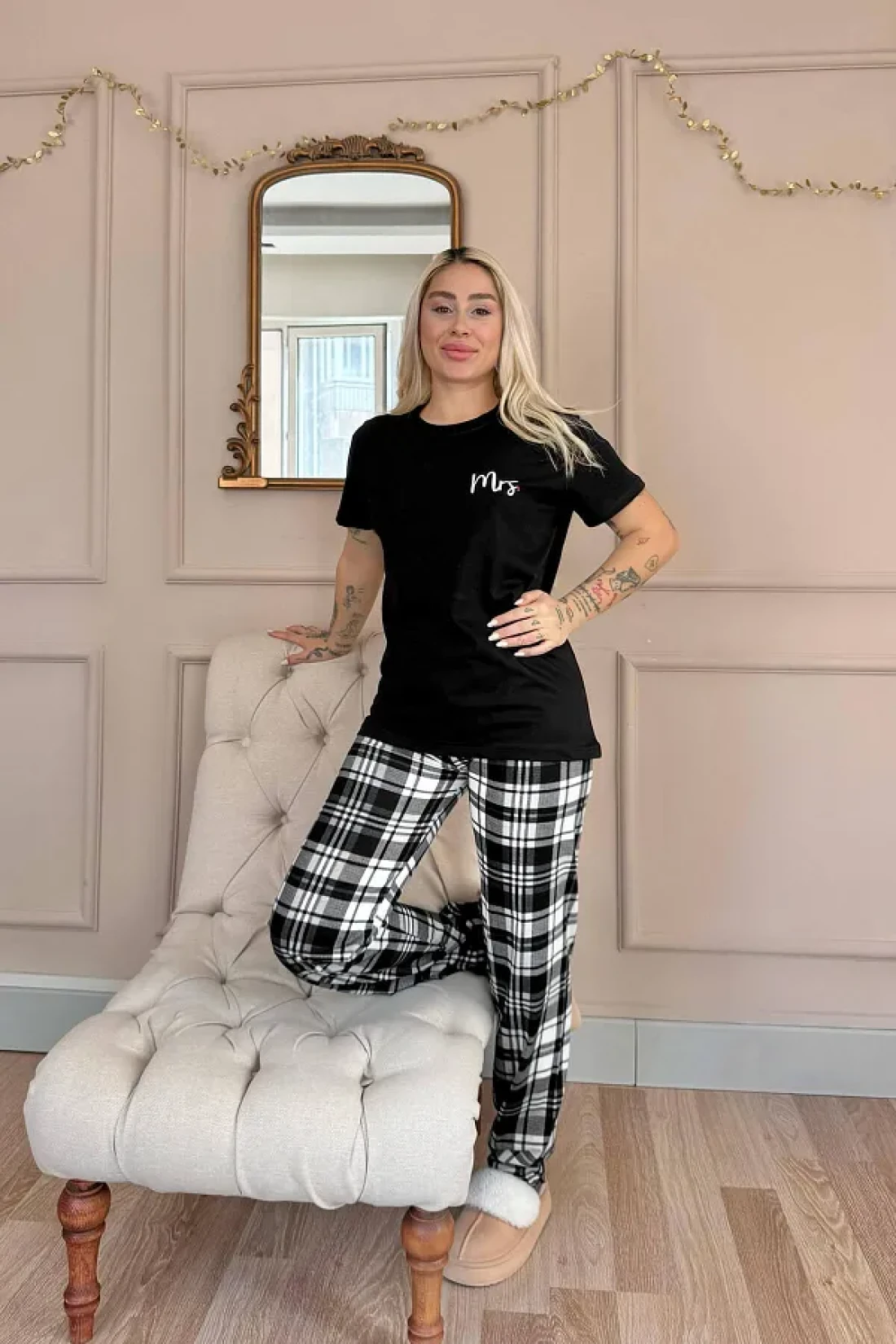 Pijamaevi Black Mrs Short Sleeve Lover Family Pajamas - Women's Team