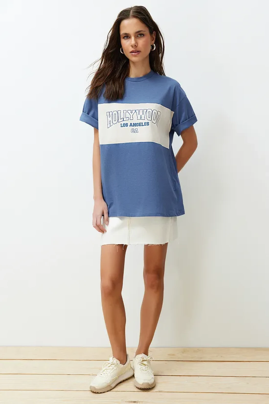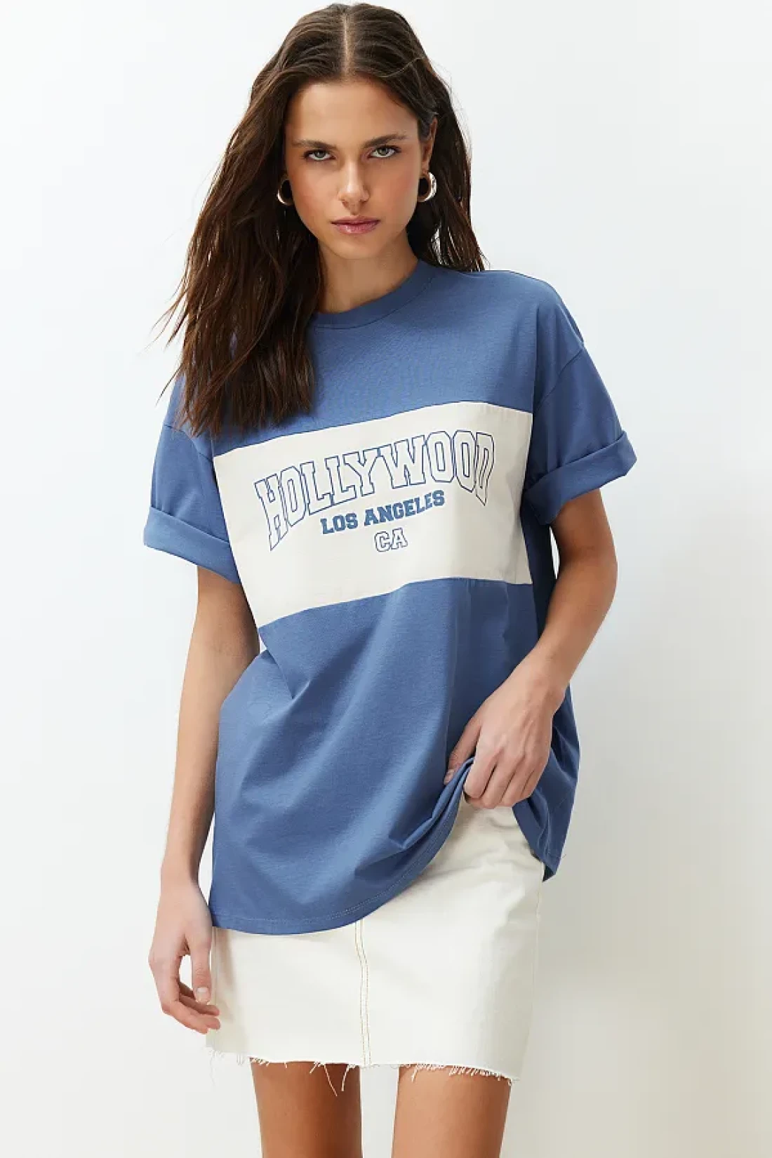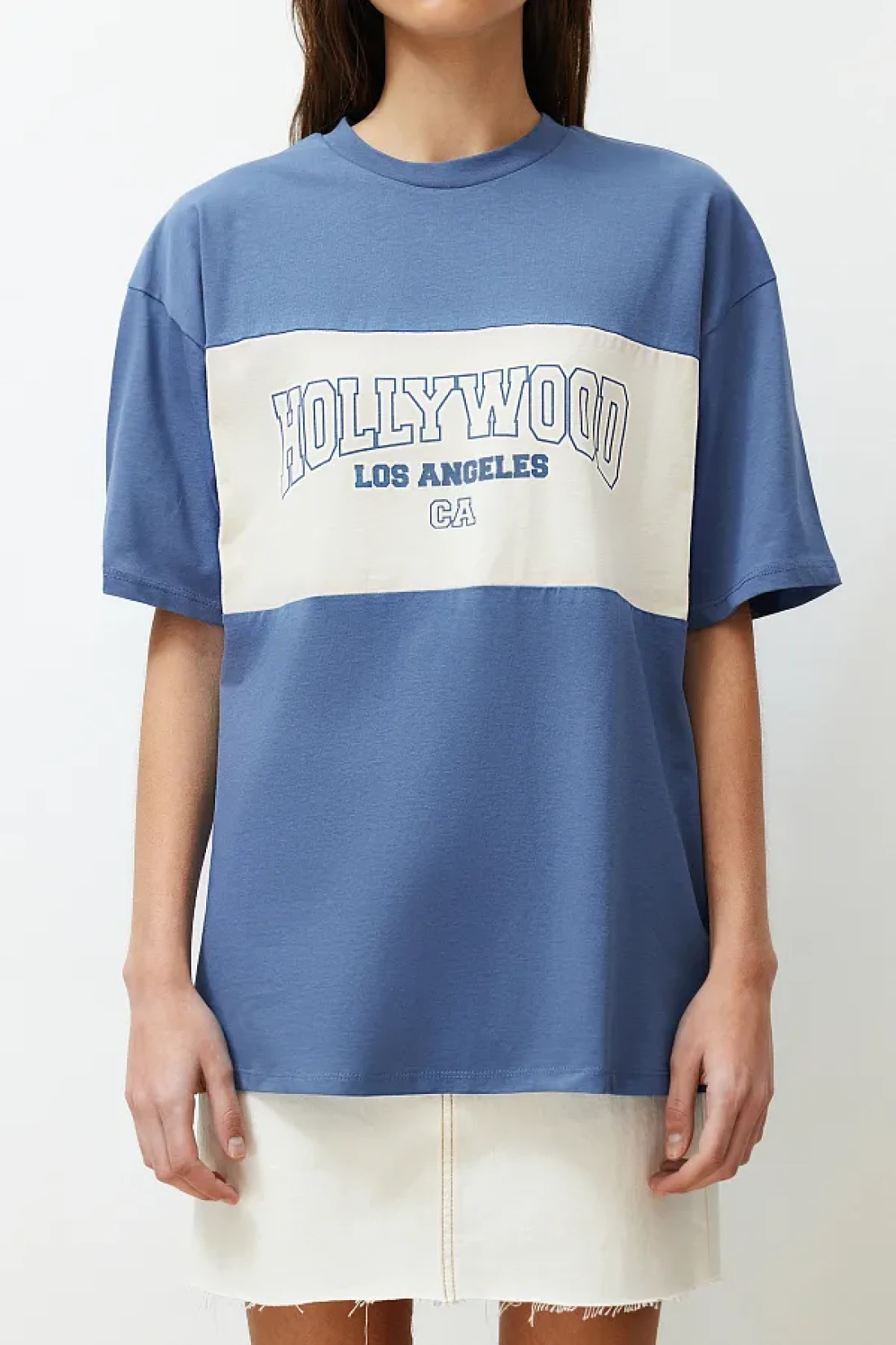 Collection Indigo 100% Cotton Color Blocked City Printed Oversize/Wide Cut Knitted T-Shirt TWOSS24TS00079